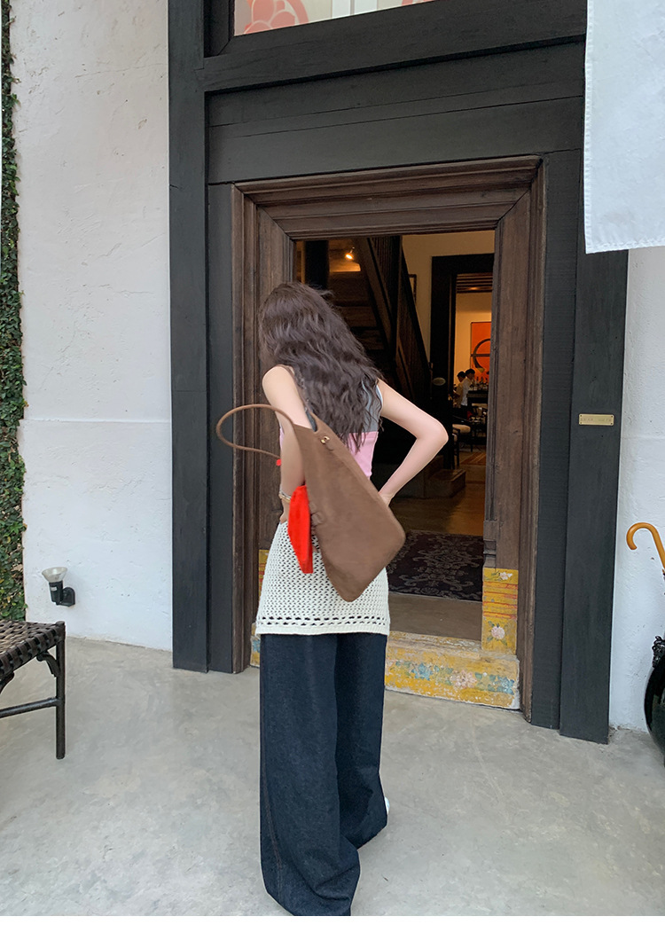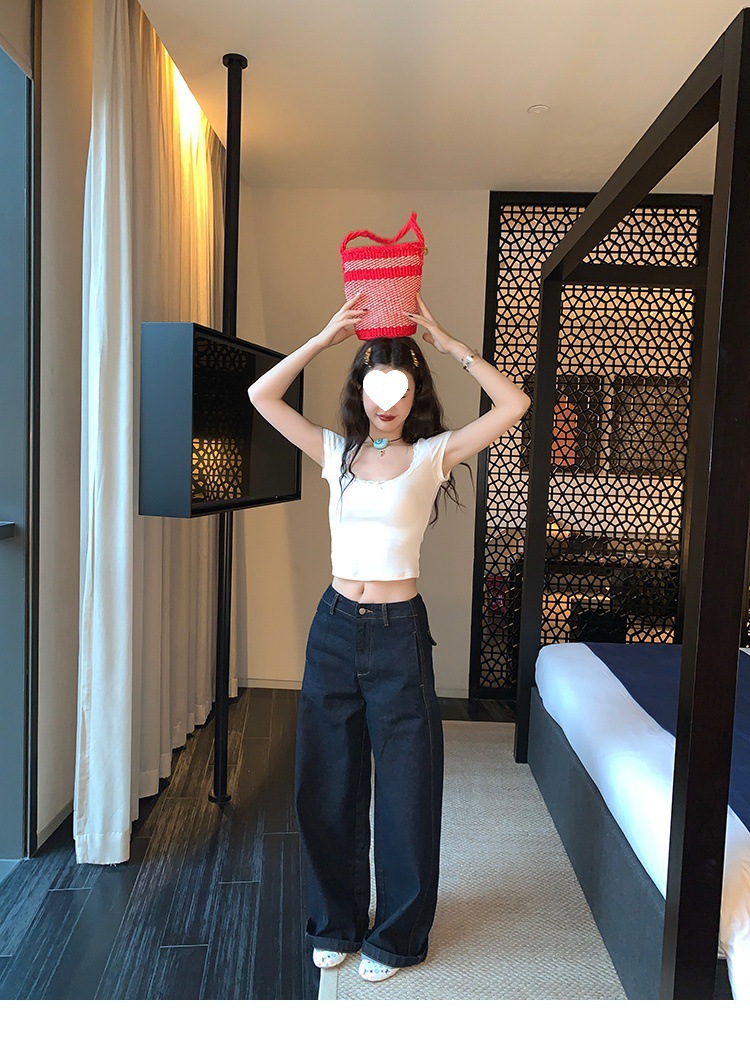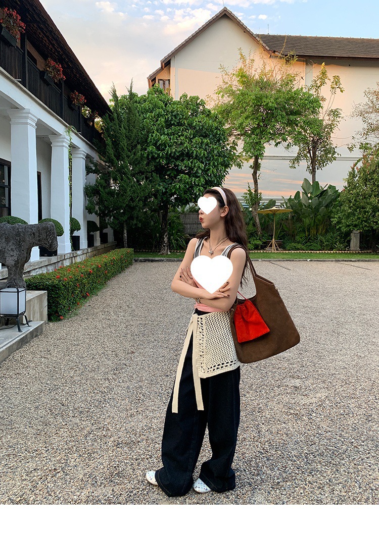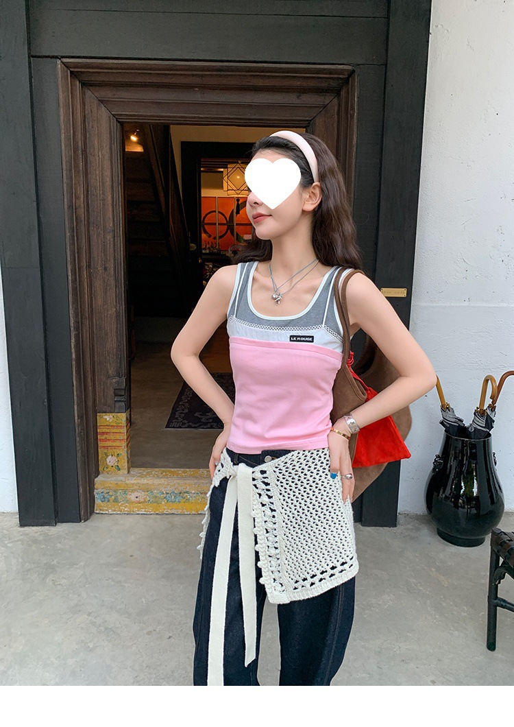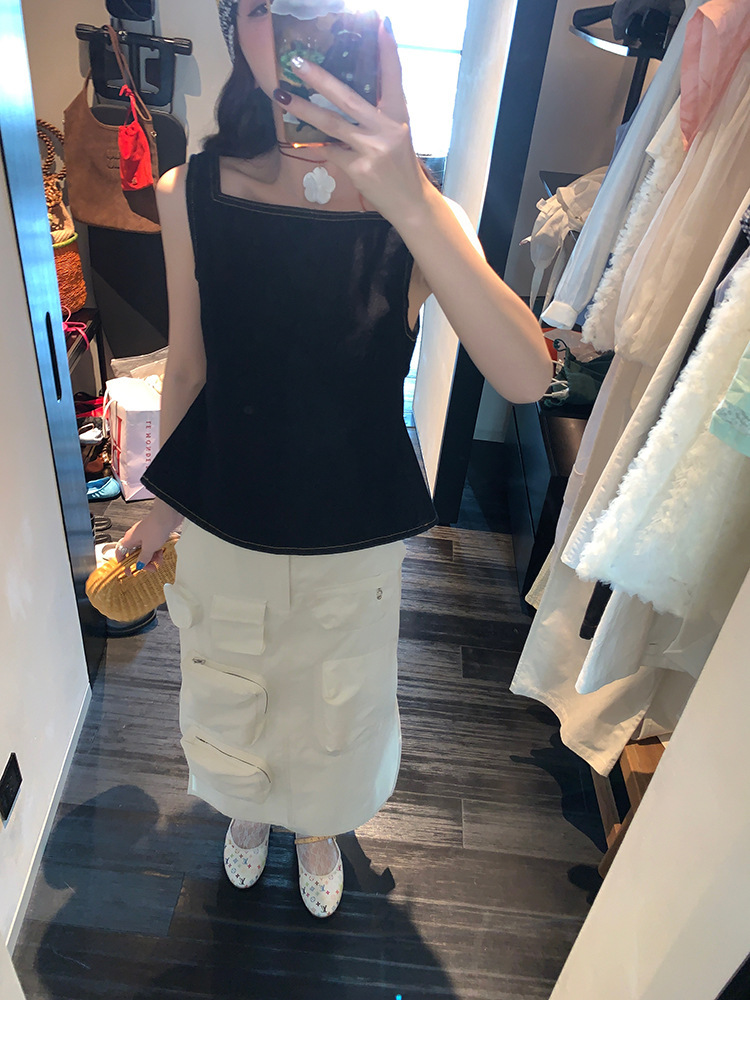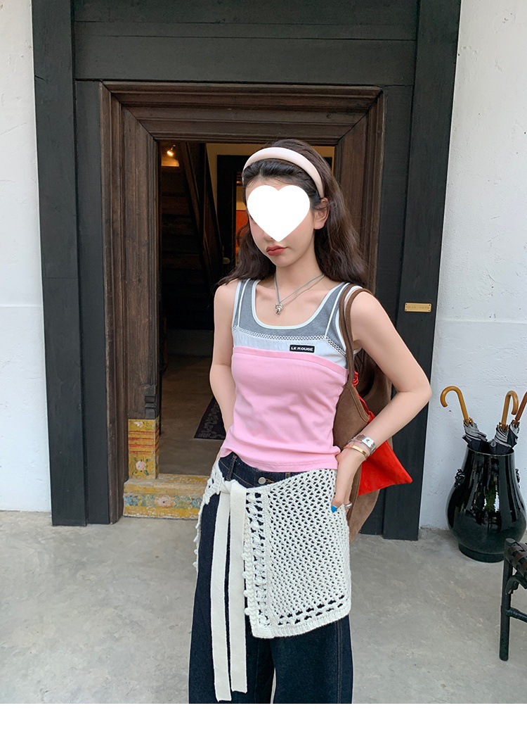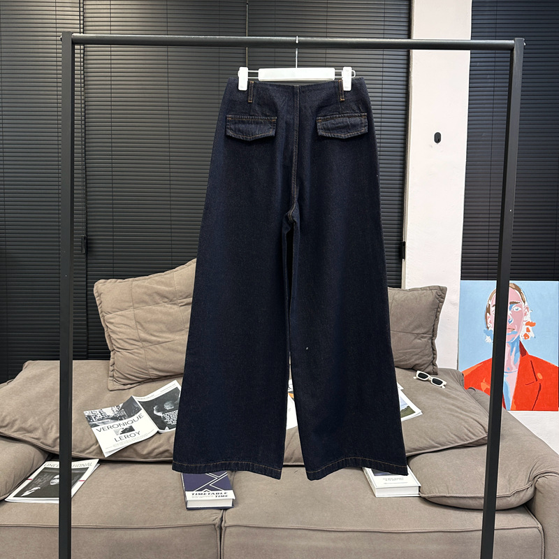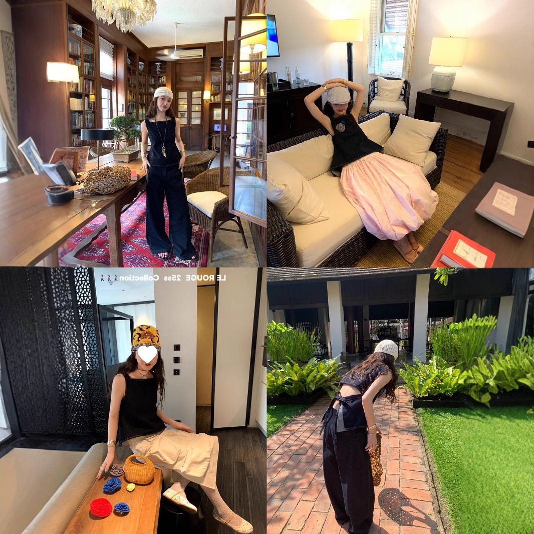 Красивый и простой уличный стиль, жилет с вырезом на спине и строчкой, джинсовый костюм оригинального цвета.