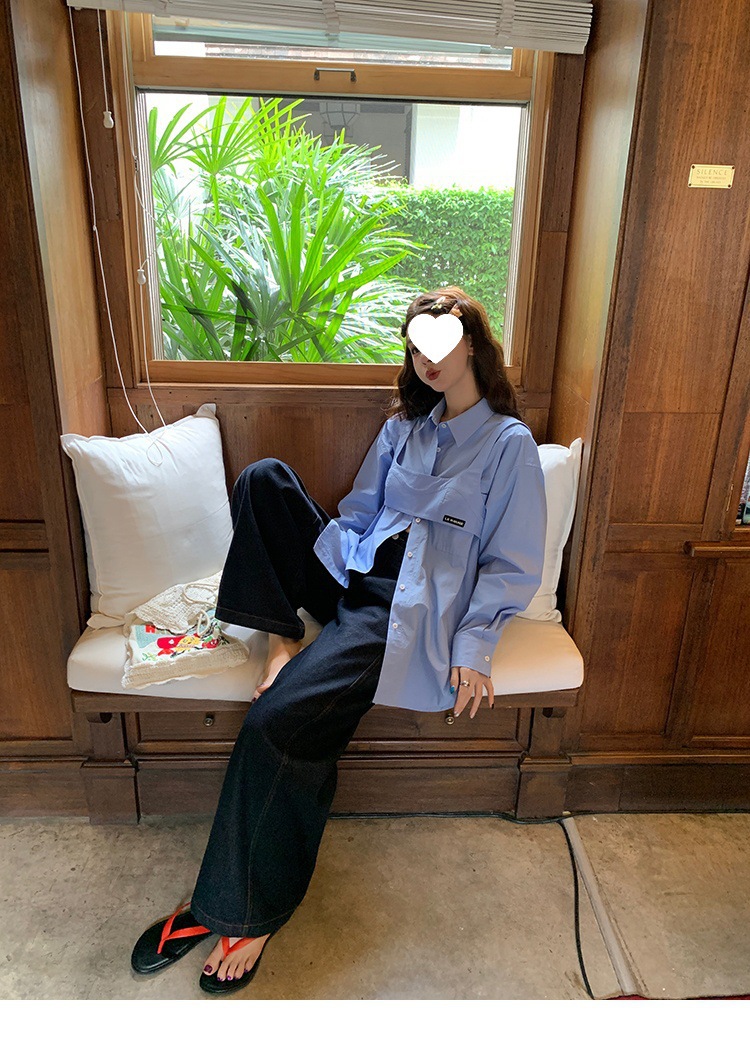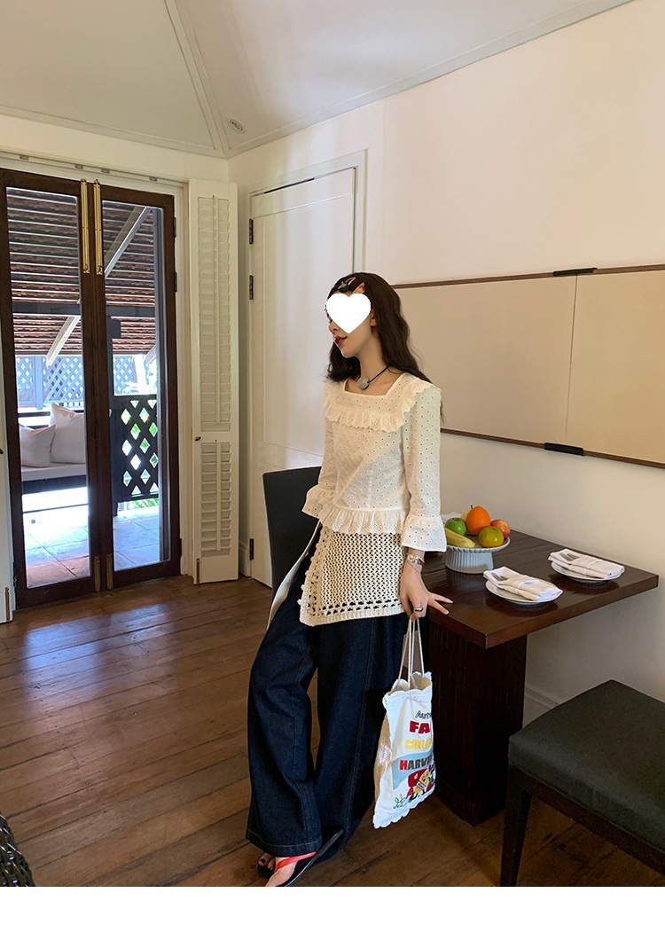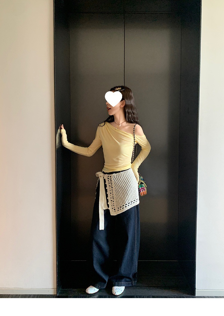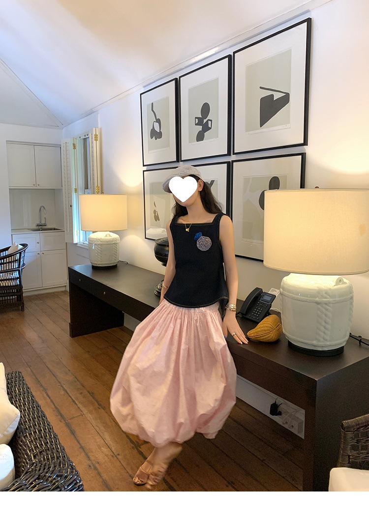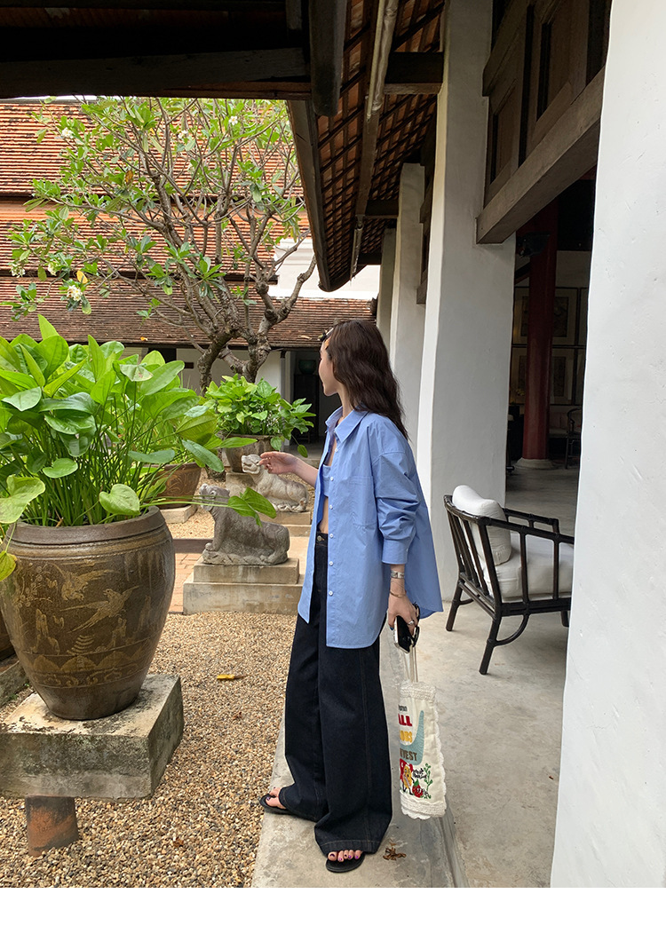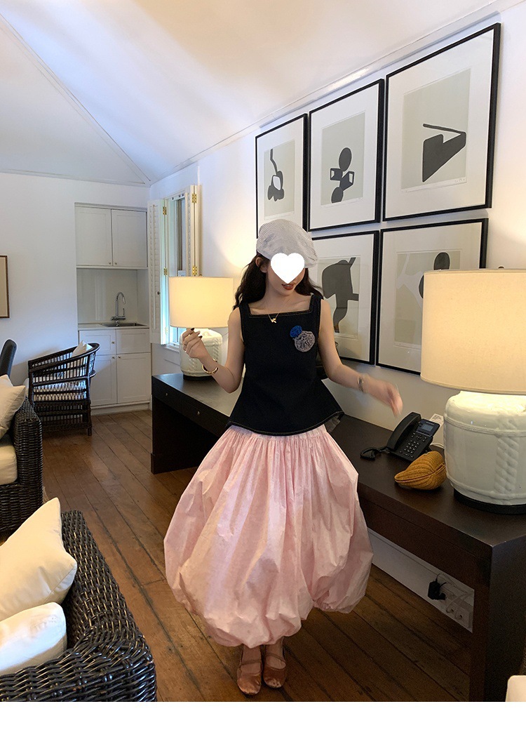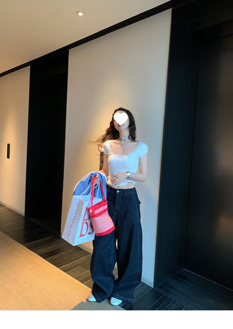 Красивый и простой уличный стиль, жилет с вырезом на спине и строчкой, джинсовый костюм оригинального цвета.