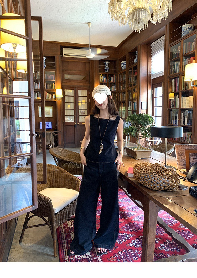 Американский жилет с квадратным воротником, джинсовый костюм оригинального цвета