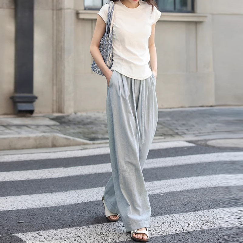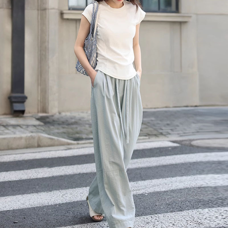 Серый лавовый короткий рукав; Облако белое с короткими рукавами; Волнистые синие брюки; бесплатные белые штаны