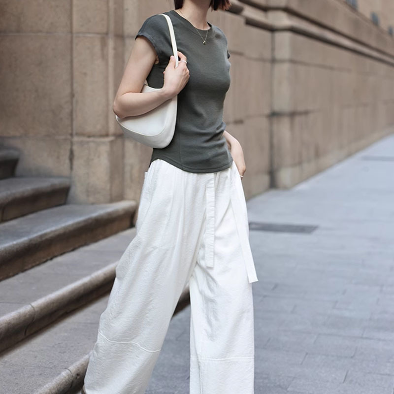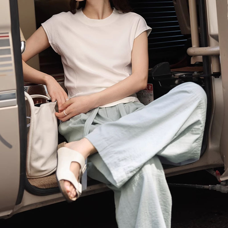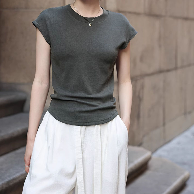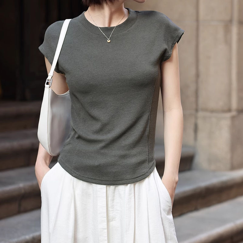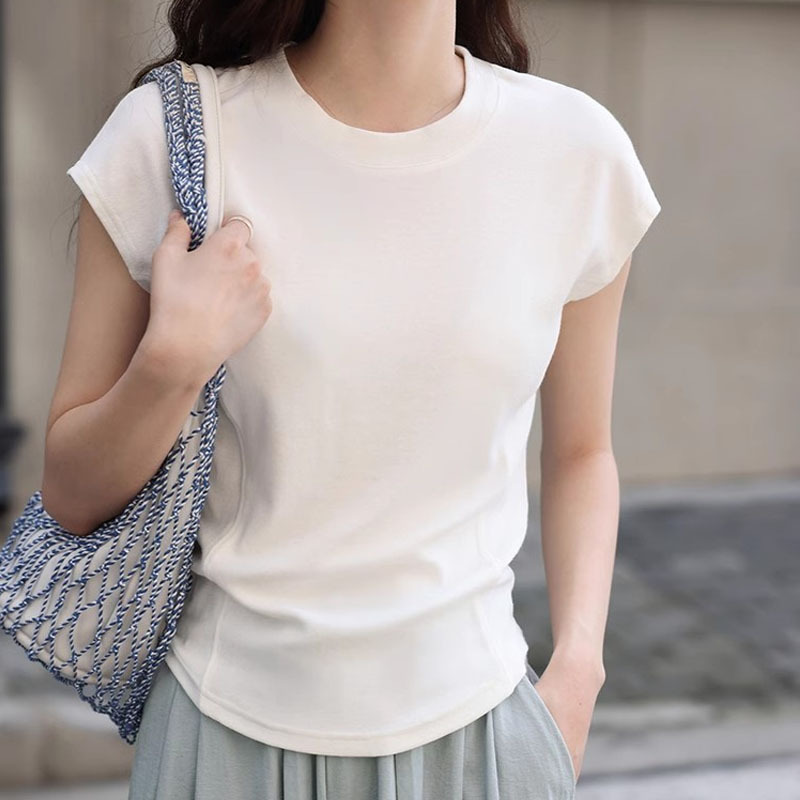 13-костная линия для похудения! Белая элегантная футболка с рукавами, женская тонкая повседневная футболка с короткими рукавами и круглым вырезом, прямая продажа с фабрики