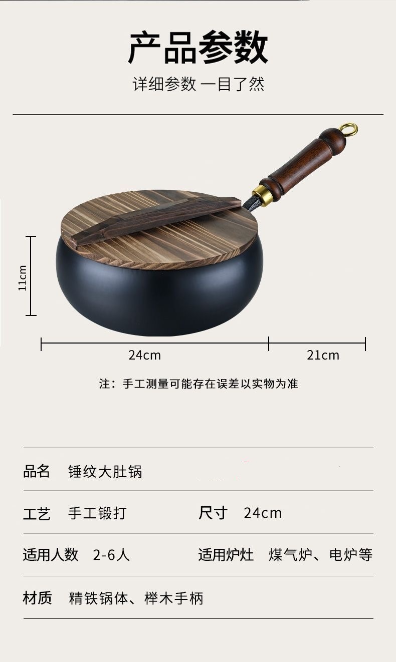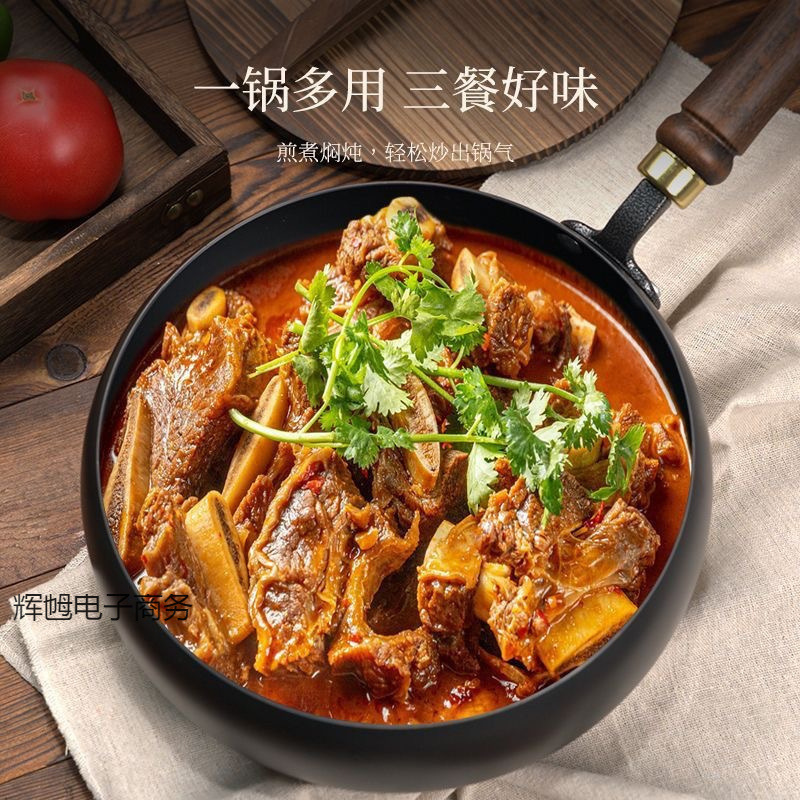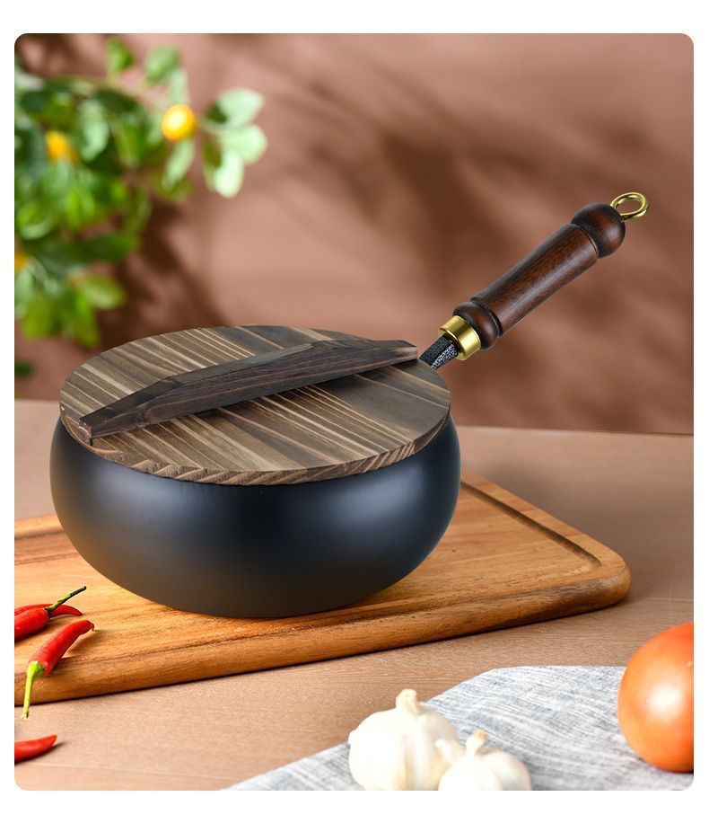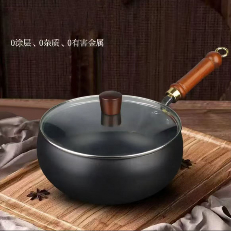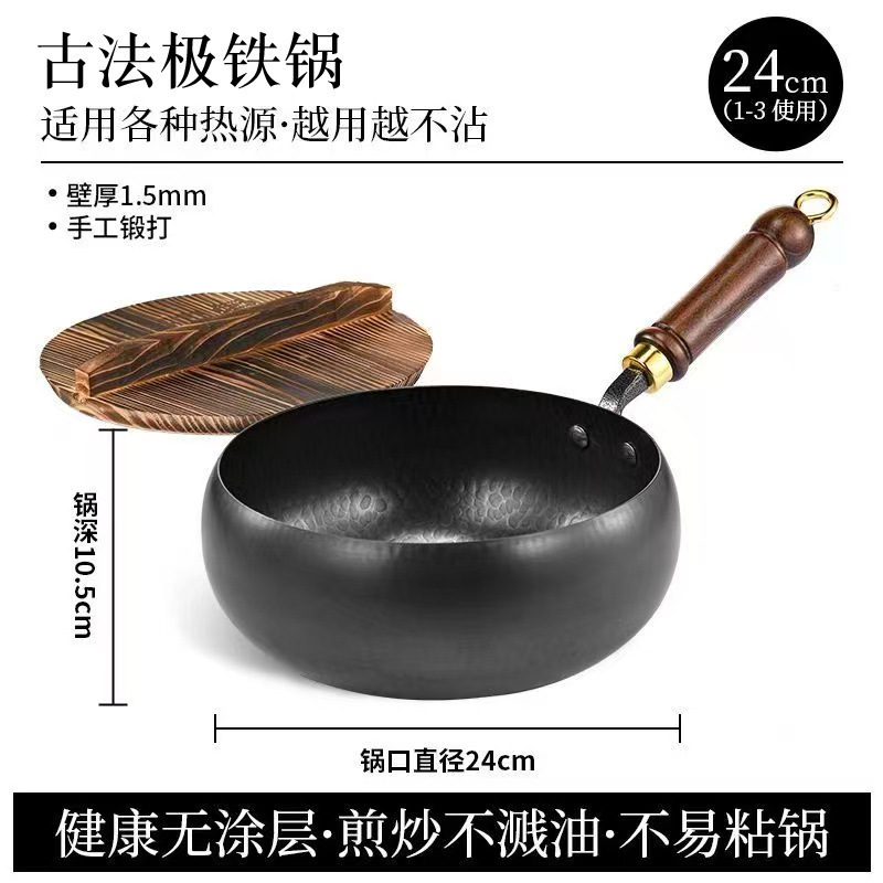 Новый традиционный большой горшок для живота 24 см, бытовой маленький железный горшок без покрытия, с плоским дном, маленький вок, кухонный горшок, железный горшок