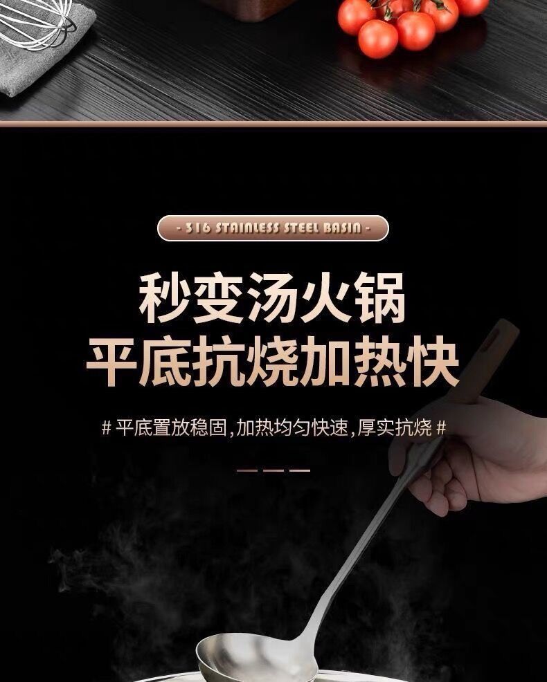 Очень толстая раковина из нержавеющей стали с крышкой для домашней кухни, утолщенная кастрюля для супа, раковина для горячего горшка, чаша для замеса теста без крышки.