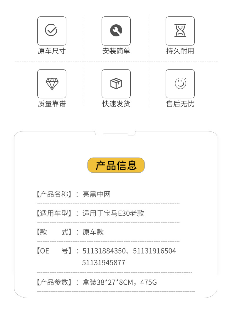 Подходит для BMW 3 серии E30 82-94 годов выпуска, передний бампер, яркая полоса, центральная решетка радиатора 51131884350