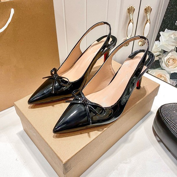 Заводская оптовая продажа CL, экспорт, популярные однотонные туфли на высоком каблуке с заостренным носком, женские туфли с принтом логотипа, красная подошва, модные босоножки с открытой пяткой для женщин