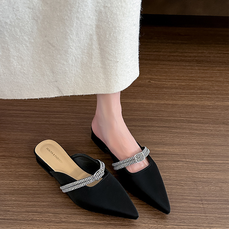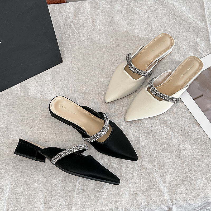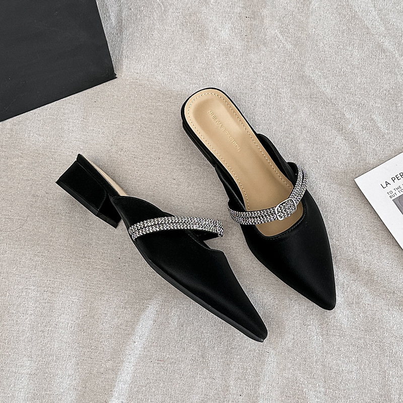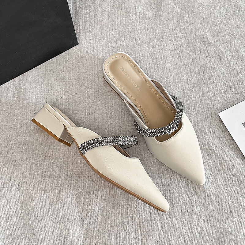 Y097-5 Сандалии женские, лето 2025, новый стиль, с острым носком, на толстом каблуке, Baotou, ленивые полутапочки, модная верхняя одежда, Fairy Gentle