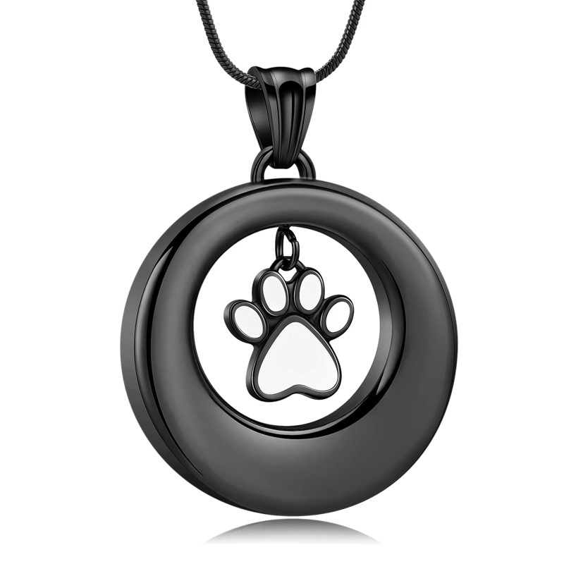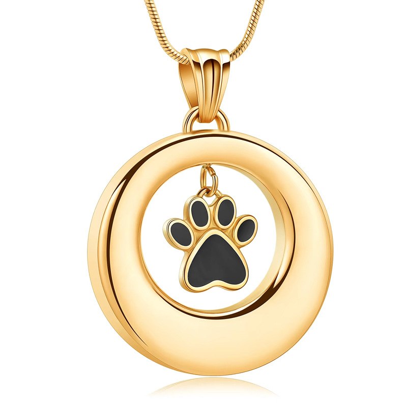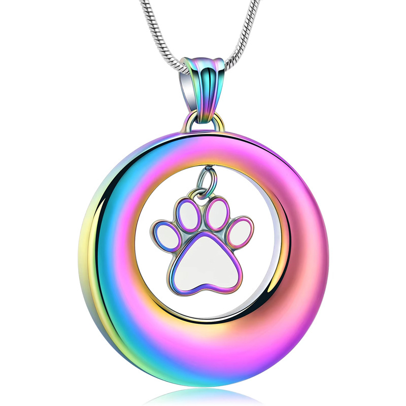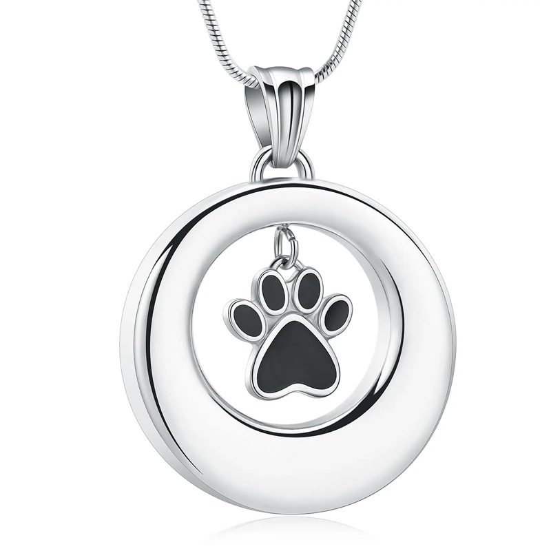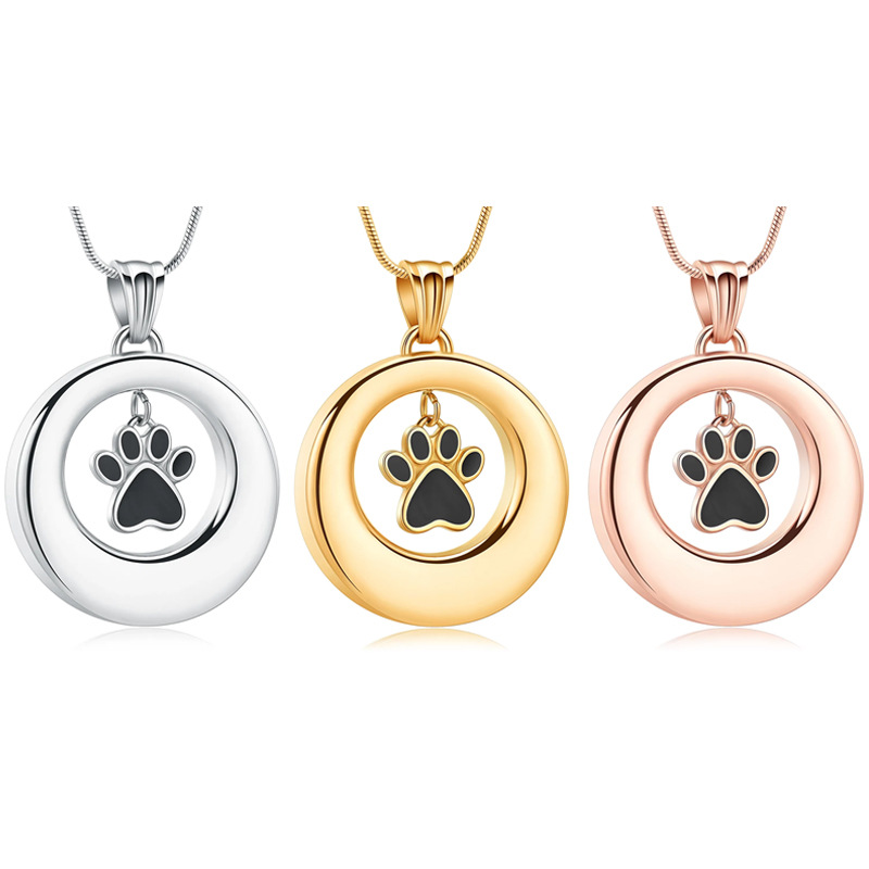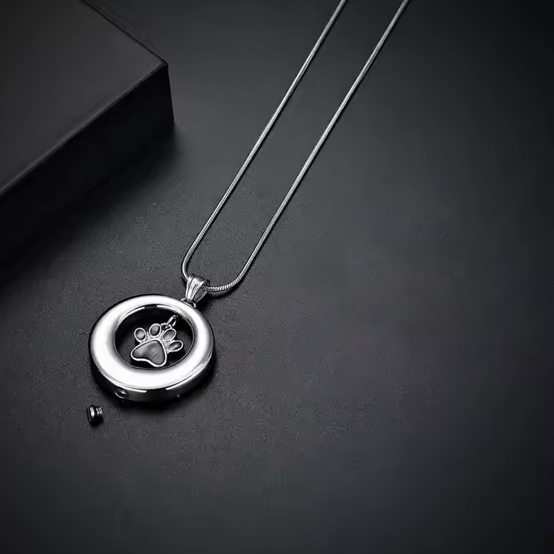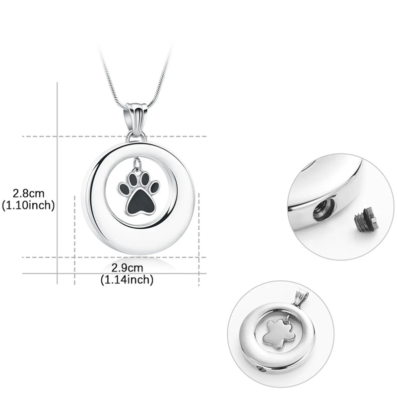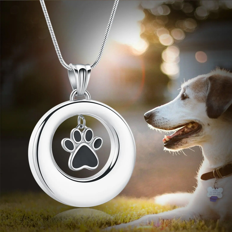 Популярное колье-кулон из нержавеющей стали с круглым принтом лапы для хранения праха питомца, памятная урна для шерсти и праха