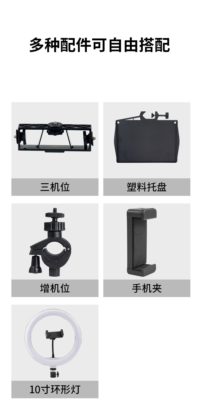 2m Кронштейн [Тип с толстыми стенками трубы] + Шаровая головка + E-образный зажим + Сумка для хранения; 2m Подставка [версия с толстой трубкой] + шаровая головка + E-клипса + Bluetooth + сумка для хранения; 2m Подставка [Тип с толстыми стенками трубы] + Сферическая головка + Три положения камеры + Вращающийся зажим для мобильного телефона (экономичная модель) + Зажим E-образной формы * 2; 2m подставка [тип с толстыми стенками трубки] + 10inch кольцевой светильник + сумка для хранения; 2m Стойка [версия с толстыми стенками трубы] + 10inch кольцевая лампа + Bluetooth + сумка для переноски; 2m стойка [версия с толстой стенкой трубы] + 10inch кольцевая подсветка + лоток для звуковой карты из АБС-пластика + сумка для хранения; 2m Подставка [Тип с толстыми стенками трубы] + Сферическая головка + Три положения для камеры + Вращающийся держатель для мобильного телефона (экономичная модель) + E-образный зажим * 2 + Bluetooth; 2m Подставка [тип с толстой стенкой трубы] + сферическая головка + три положения камеры + вращающийся зажим для мобильного телефона (экономичный тип) + зажим E-образной формы * 2 + лоток для звуковой карты из АБС-пластика; 2m подставка [версия с толстой стенкой трубы] + шаровая головка + электронный зажим + лоток для звуковой карты из АБС-пластика + сумка для хранения; 2m Стойка [версия с толстыми стенками трубы] + 10inch кольцевая лампа + дополнительные крепления + E-образный зажим + сумка для переноски; 2m Стойка [версия с толстыми стенками трубы] + 10inch кольцевая лампа + лоток для звуковой карты из ABS + Bluetooth + сумка для переноски; 2m Подставка [тип с толстой стенкой трубы] + сферическая головка + три положения камеры + E-образный зажим * 2 + вращающийся зажим для мобильного телефона (экономичный тип) + лоток для звуковой карты из АБС-пластика + сумка для хранения; 2m Подставка [тип с толстой стенкой трубы] + три положения камеры + сферическая головка + вращающийся зажим для мобильного телефона (экономичный тип) + зажим E-образной формы * 2 + лоток для звуковой карты из АБС-пластика + Bluetooth; 2m стойка [версия с толстой стенкой трубы] + 10inch кольцевой светильник + дополнительные точки крепления + электронный зажим + лоток для звуковой карты из АБС-пластика; 2m Подставка [версия с толстой стенкой трубы] + шаровая головка + электронный зажим + лоток для звуковой карты из АБС-пластика + Bluetooth; 2m Подставка [тип с толстой стенкой трубы] + сферическая головка + три положения камеры + зажим E-образной формы * 2 + вращающийся зажим для мобильного телефона (экономичный тип) + звуковой лоток из АБС-пластика + Bluetooth + сумка для хранения; 2m Подставка [версия с толстыми стенками трубы] + 10inch кольцевая подсветка + три положения камеры + электронный зажим * 2 + лоток для звуковой карты из АБС-пластика; 2m Стойка [Тип с толстыми стенками трубы] + 10inch Кольцевая лампа + E-Clip + Дополнительные точки крепления + Лоток для звуковой карты из ABS + Bluetooth; 2m Подставка [версия с толстой трубкой] + 10inch кольцевая подсветка + три положения камеры + электронный зажим * 2 + лоток для звуковой карты из АБС-пластика + Bluetooth