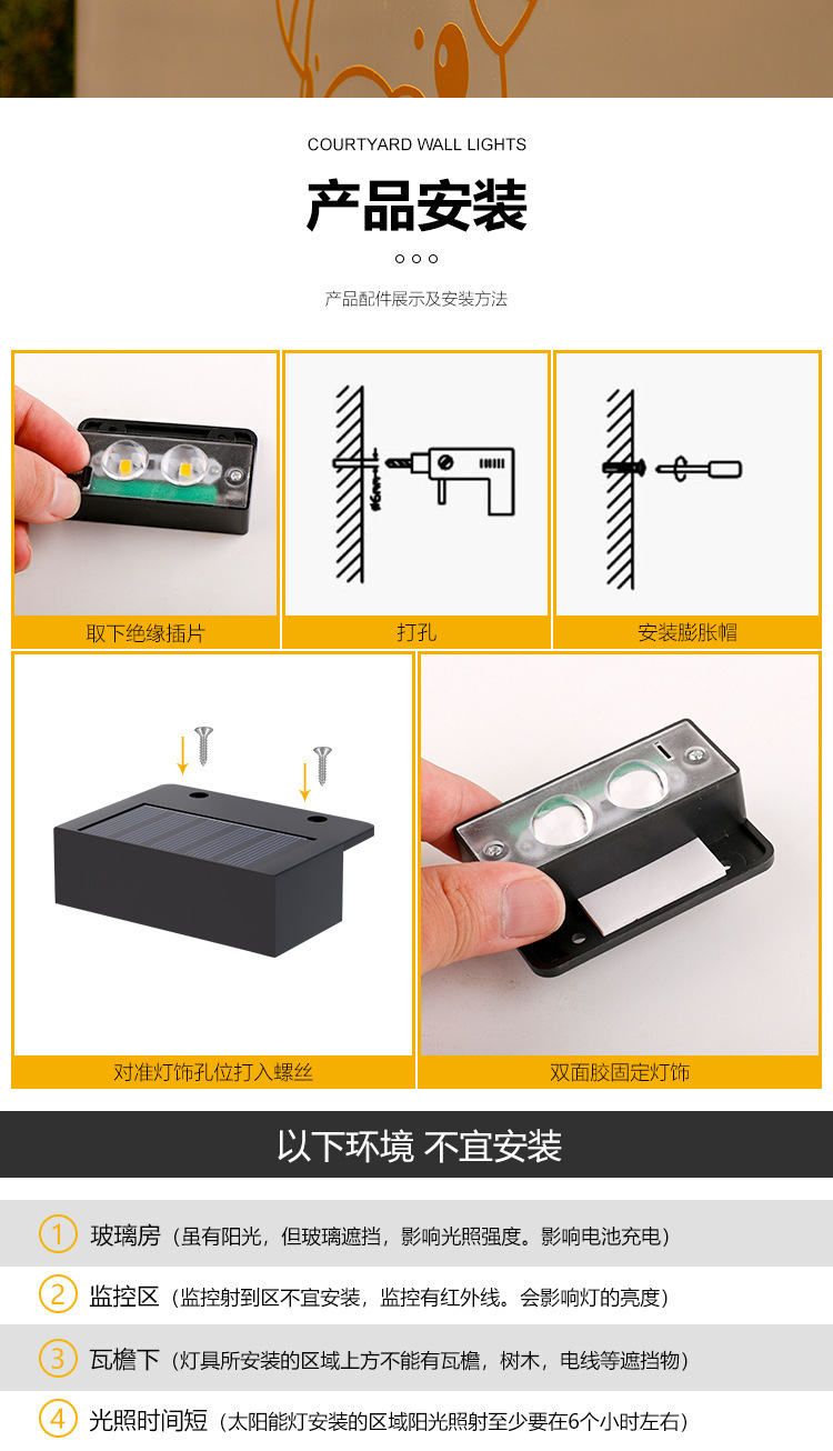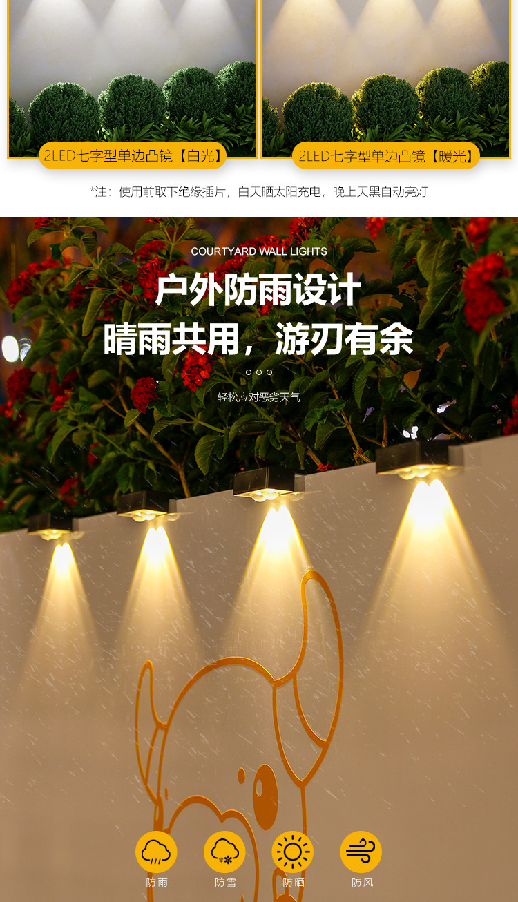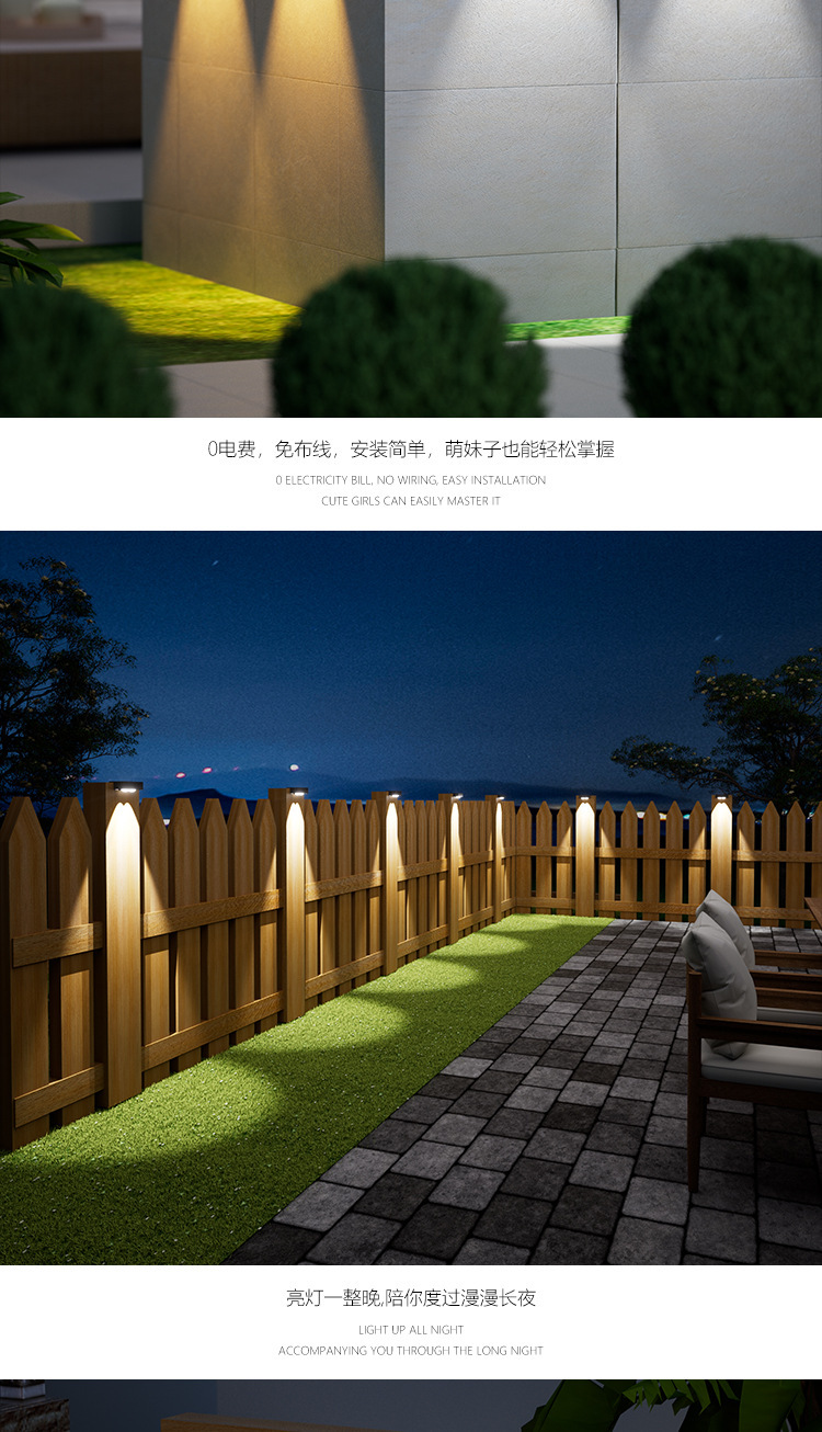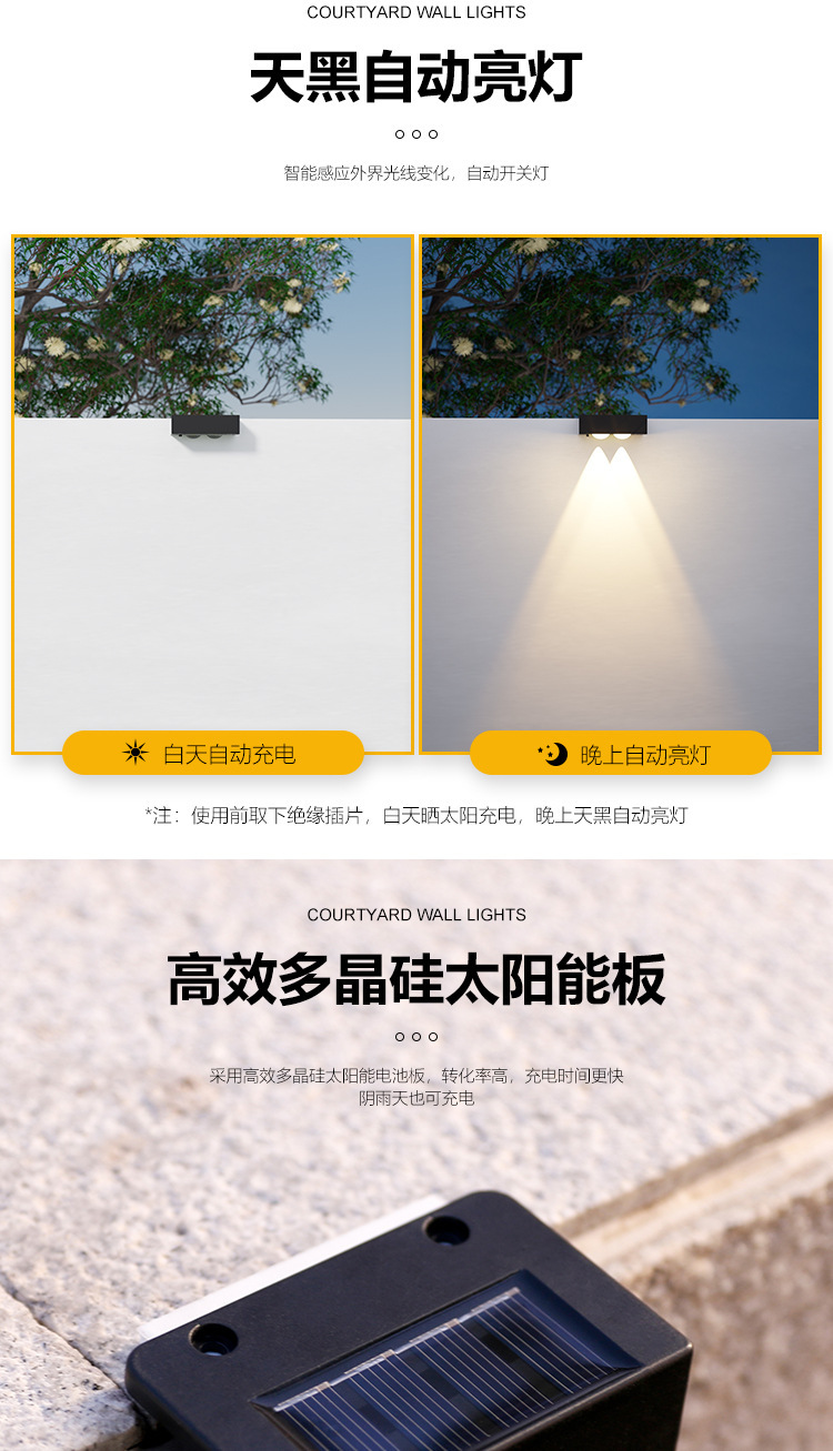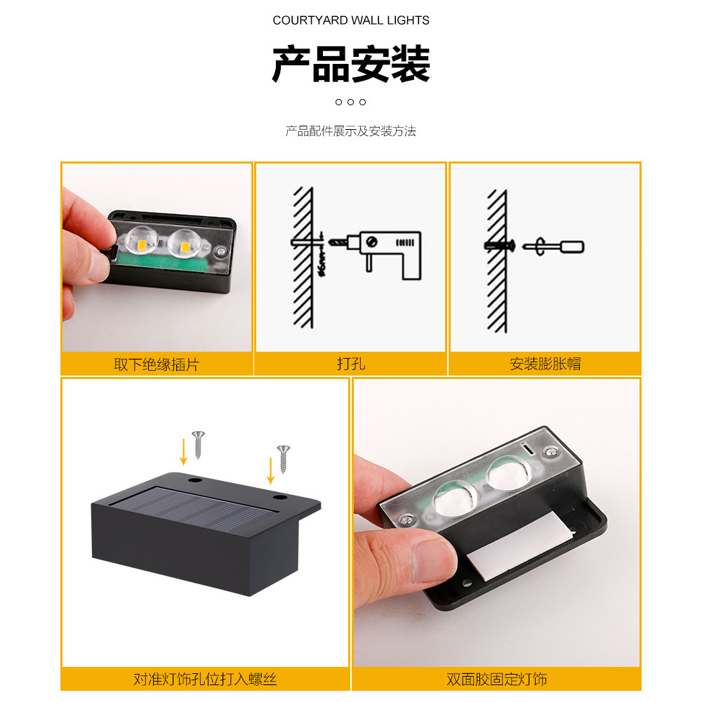 Солнечная лампа, уличная водонепроницаемая настенная лампа для дома, сельского сада, забора, декоративная лампа, лестничная лампа, ступенчатая лампа