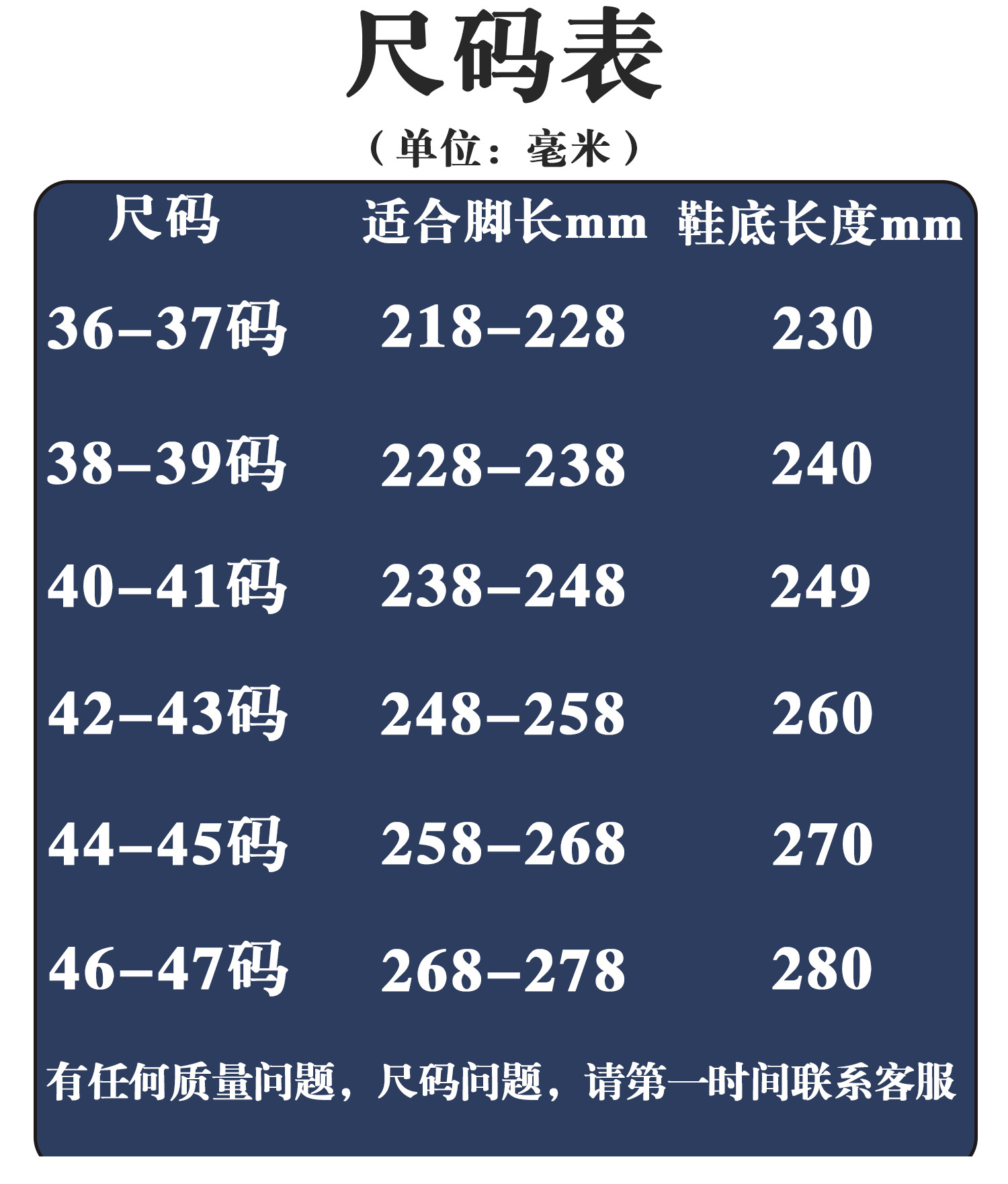 36-37 (подходит для 218-228) мм; 38-39 (подходит для 228-238) мм; 40-41 (подходит для 238-248) мм; 42-43 (подходит для 248-258) мм; 44-45 (подходит для 258-268) мм; 46-47 (подходит для 268-278) мм