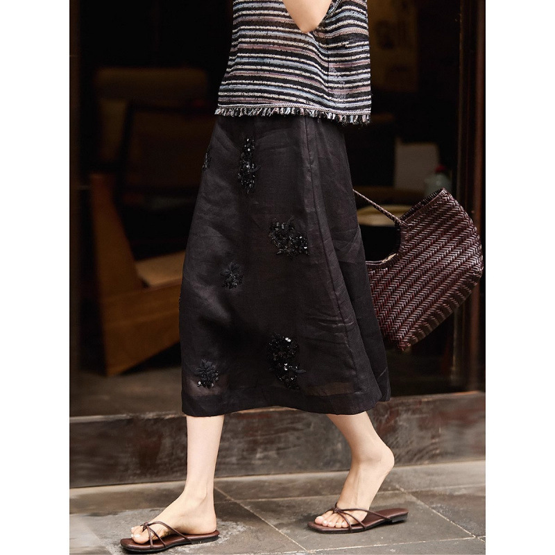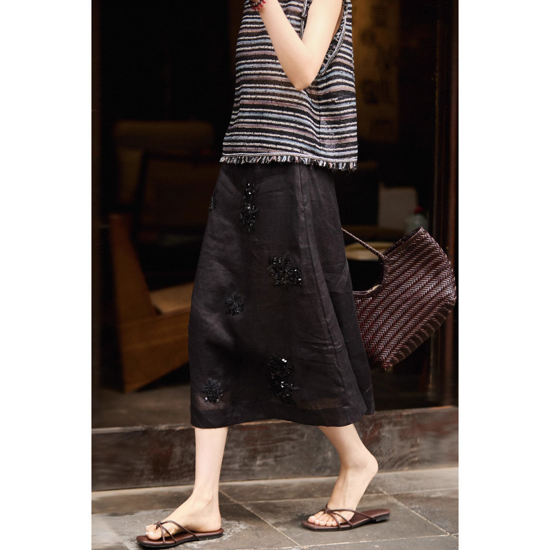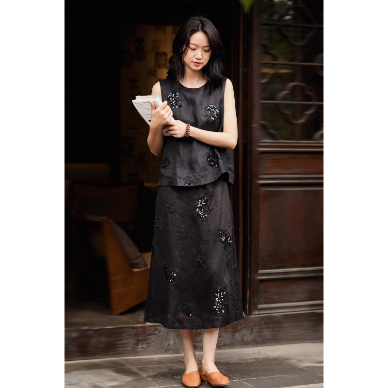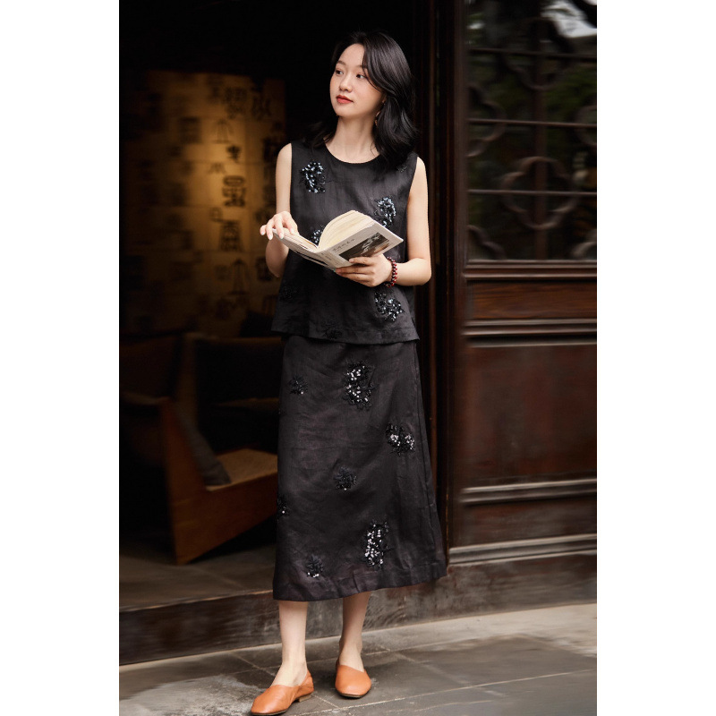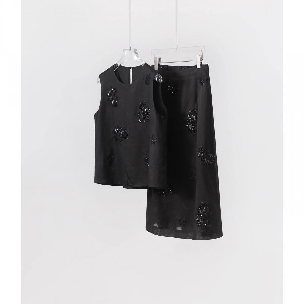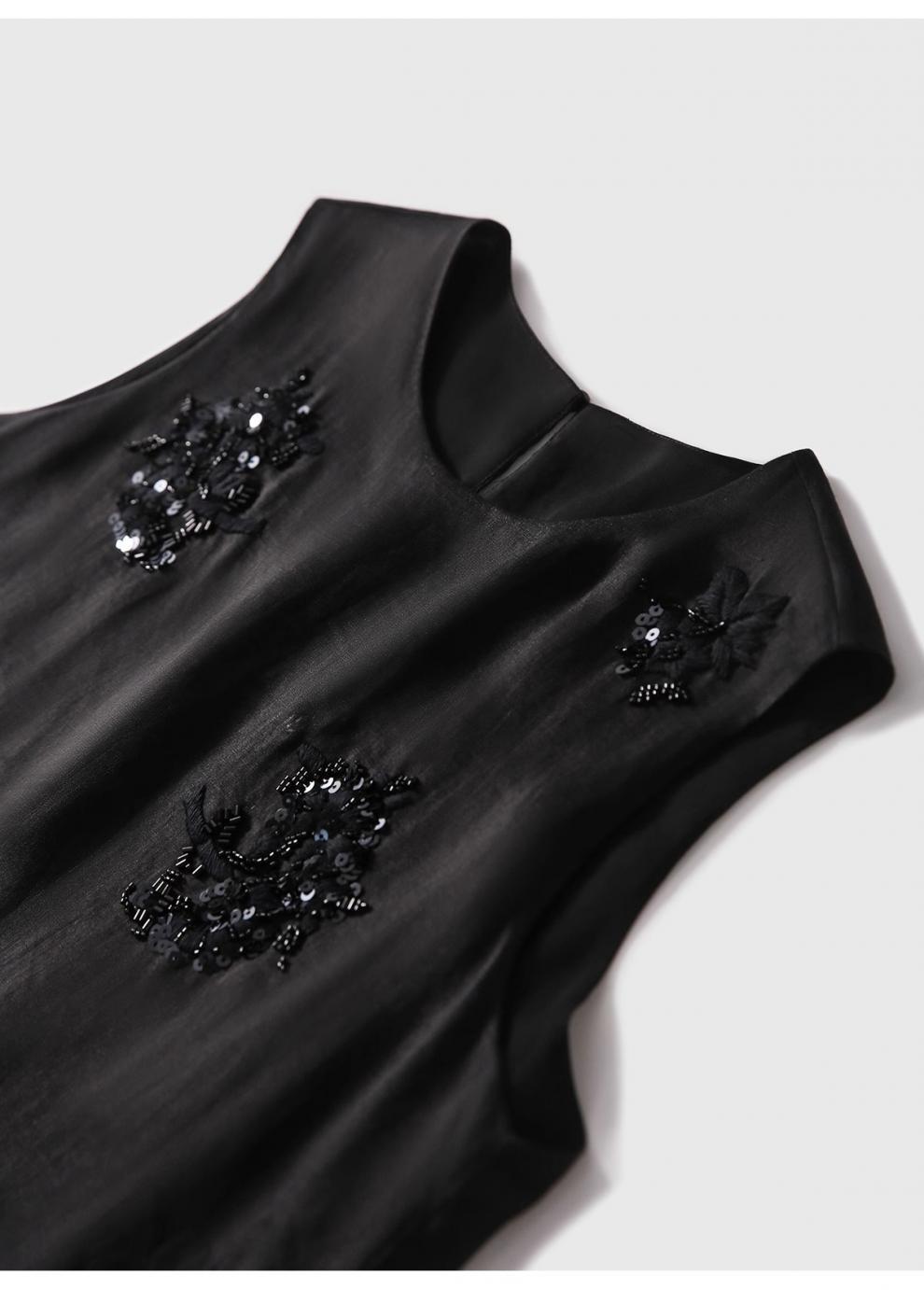 Мошан Ян | Прозрачный топ и юбка с круглым вырезом и тяжелой вышивкой бисером для женщин 3090