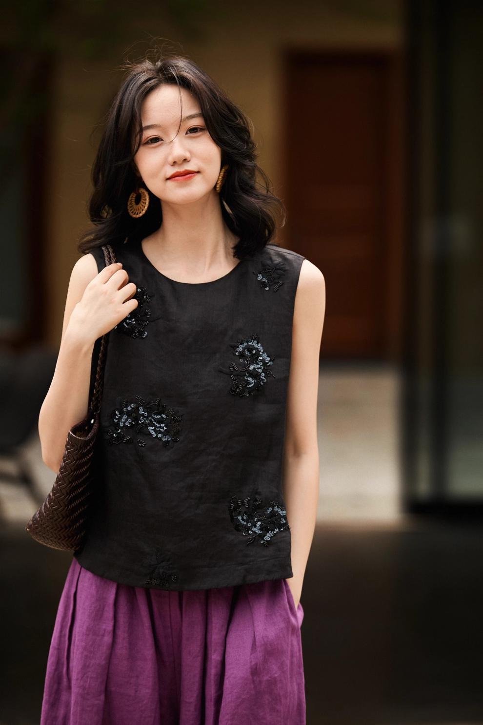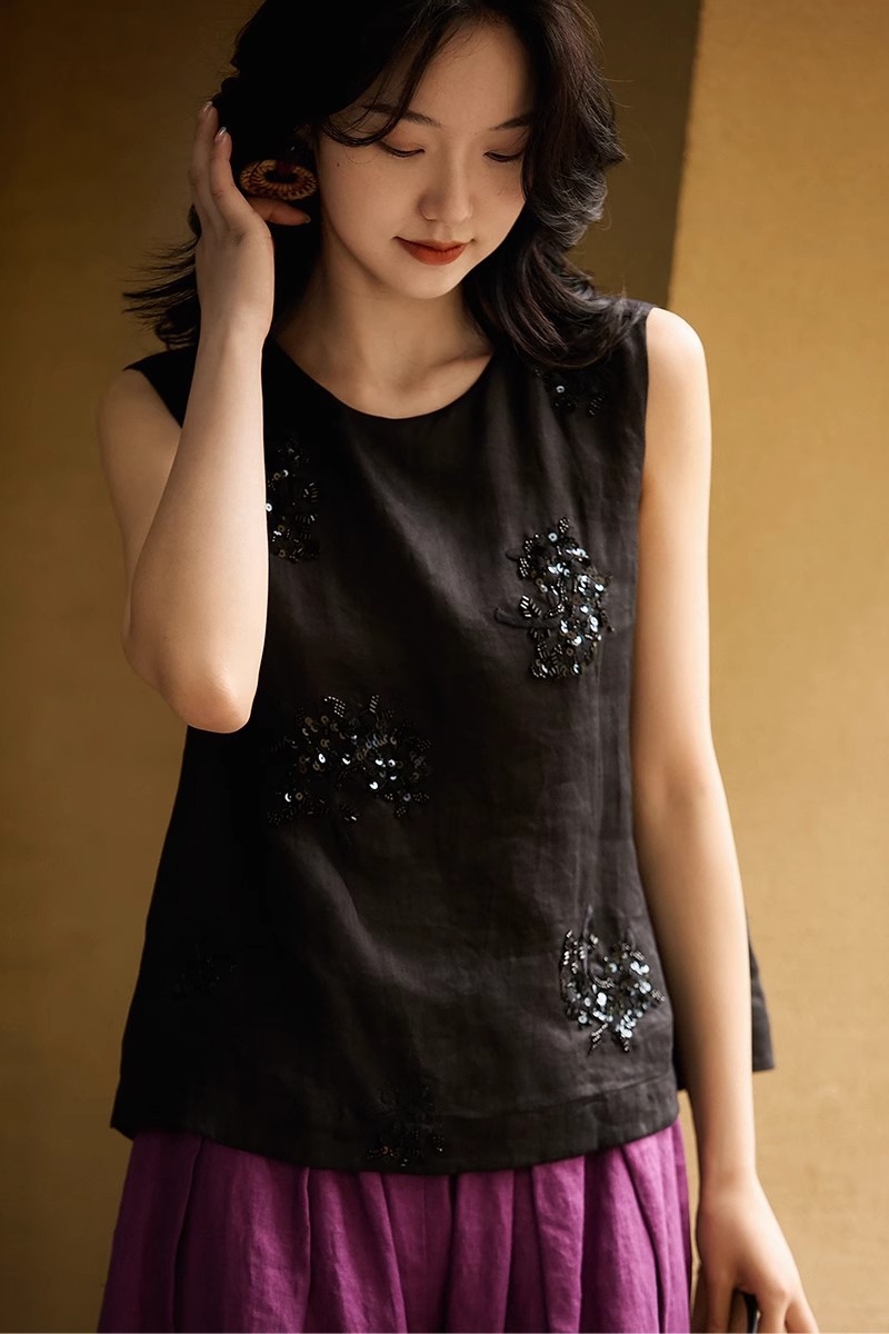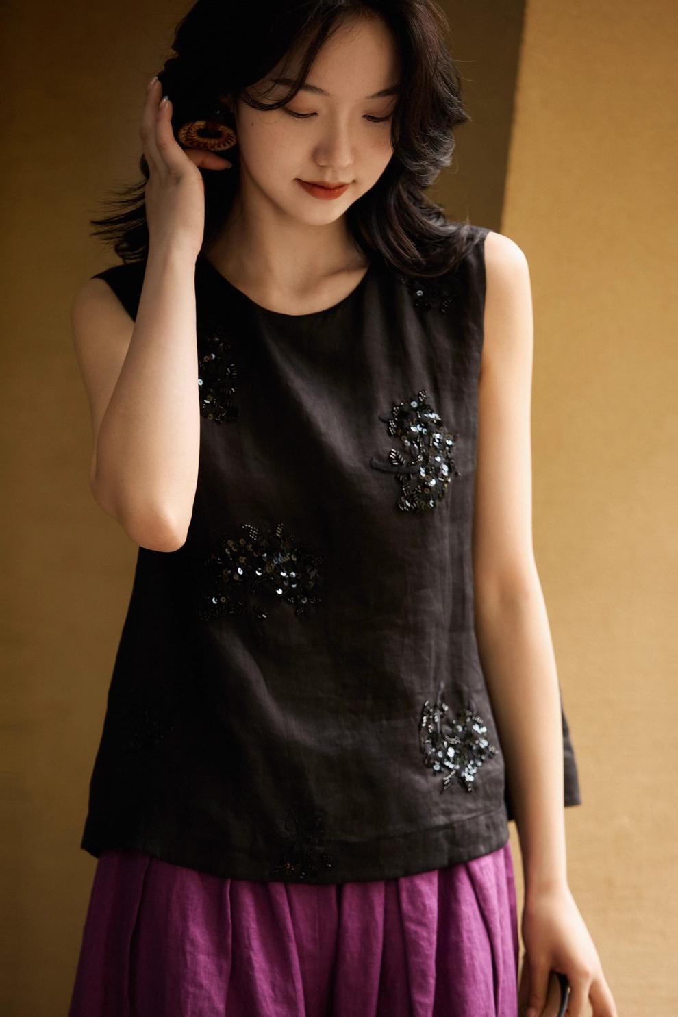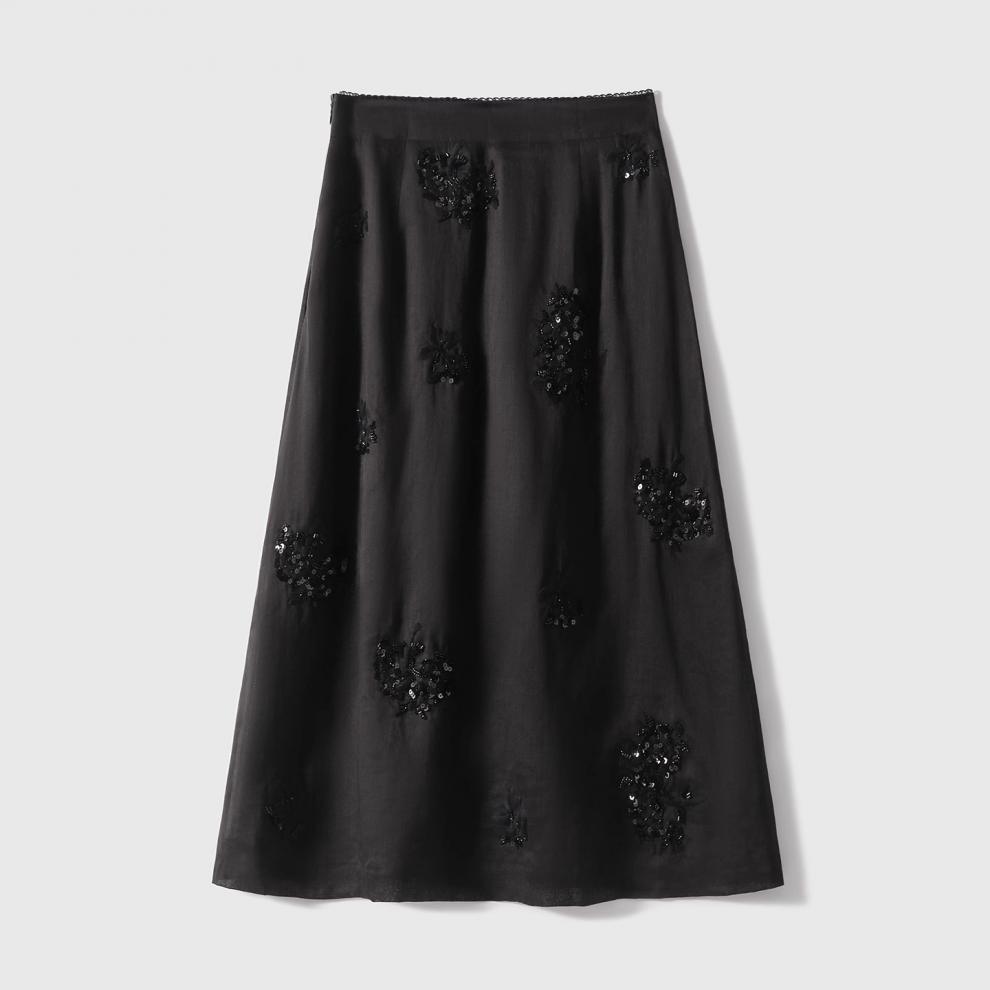 Мошан Ян | Прозрачный топ и юбка с круглым вырезом и тяжелой вышивкой бисером для женщин 3090