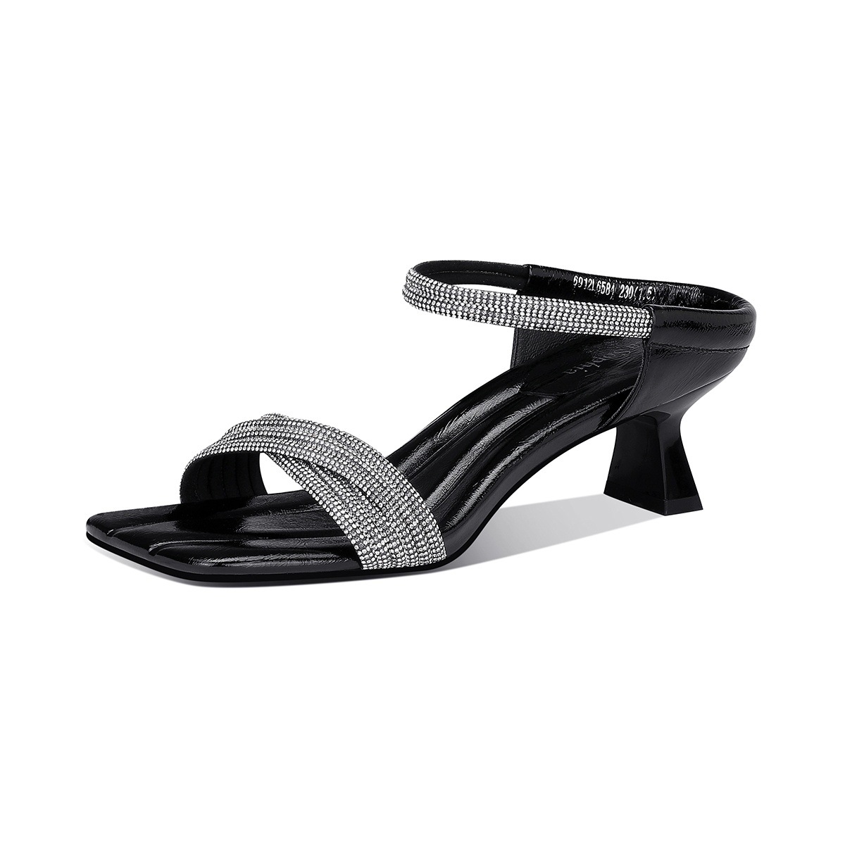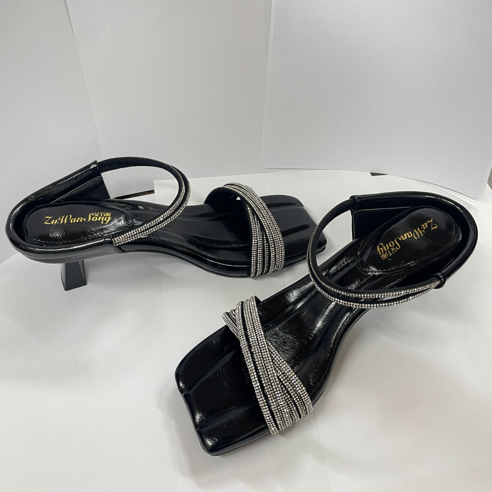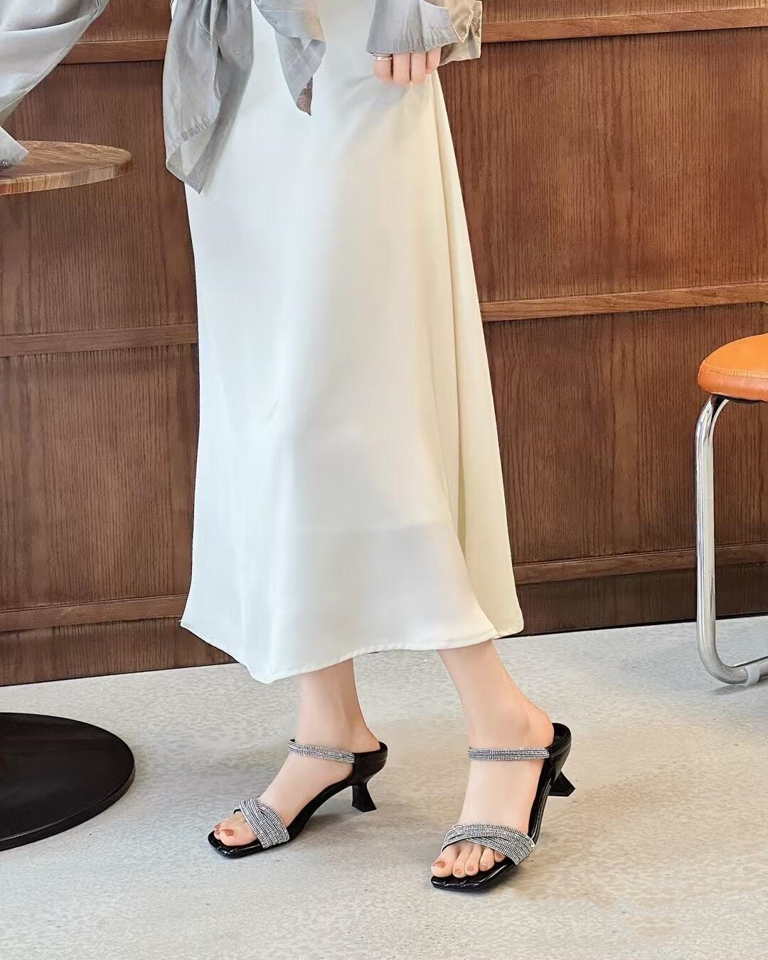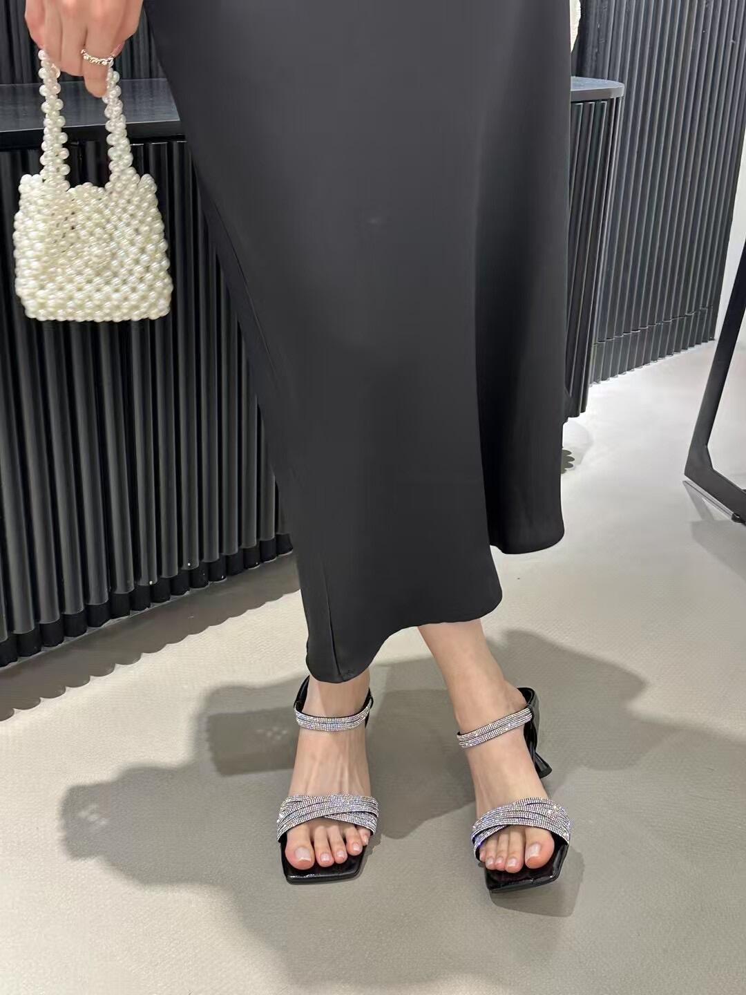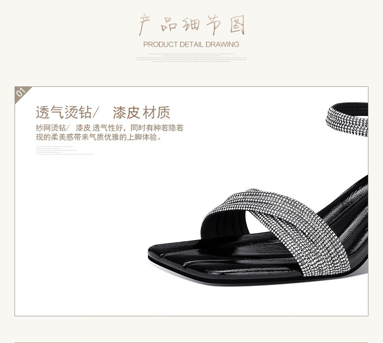 Женские летние босоножки 2025 года, квадратный носок, высокий каблук, модная новинка, с камнями, толстый каблук, к юбке, сказочные сандалии