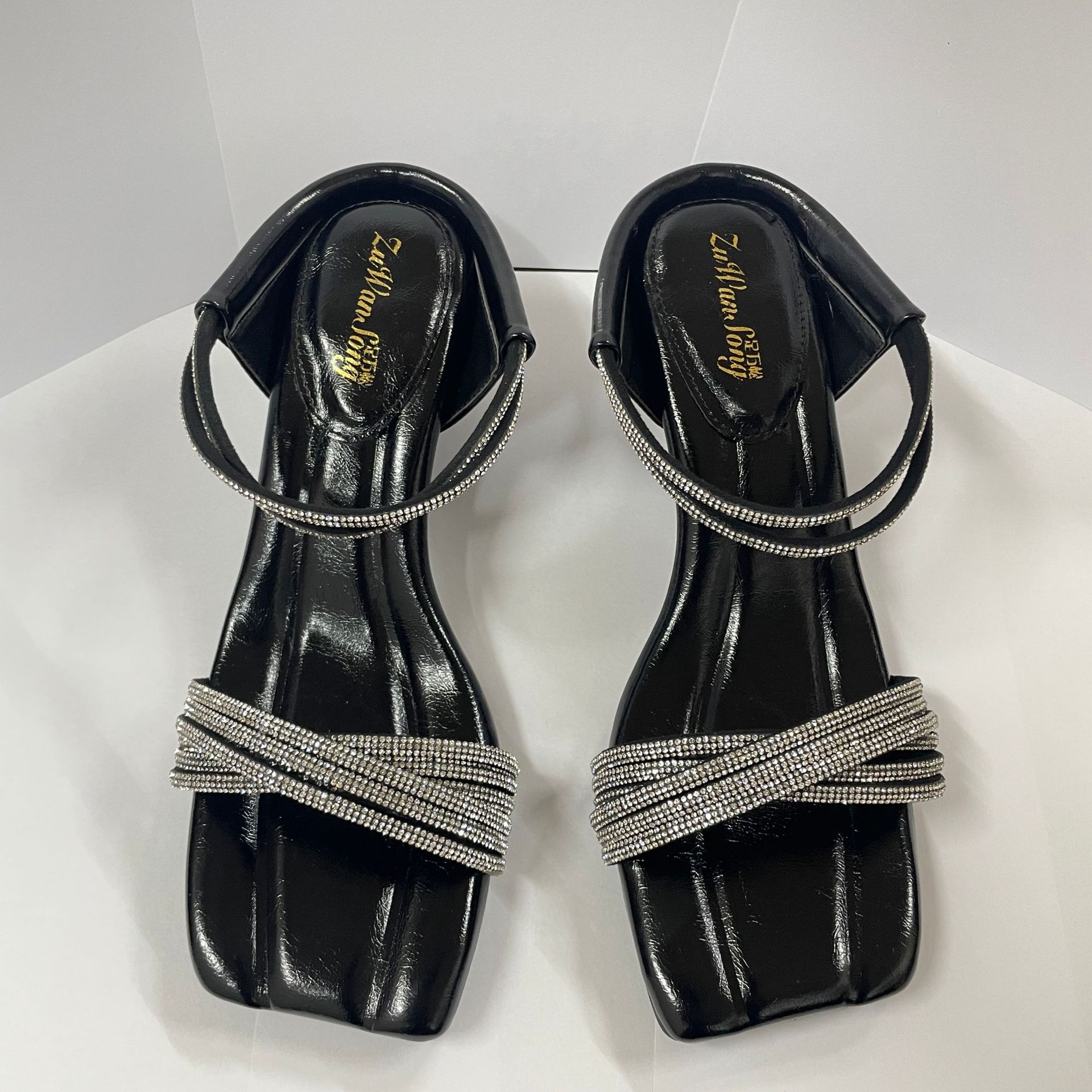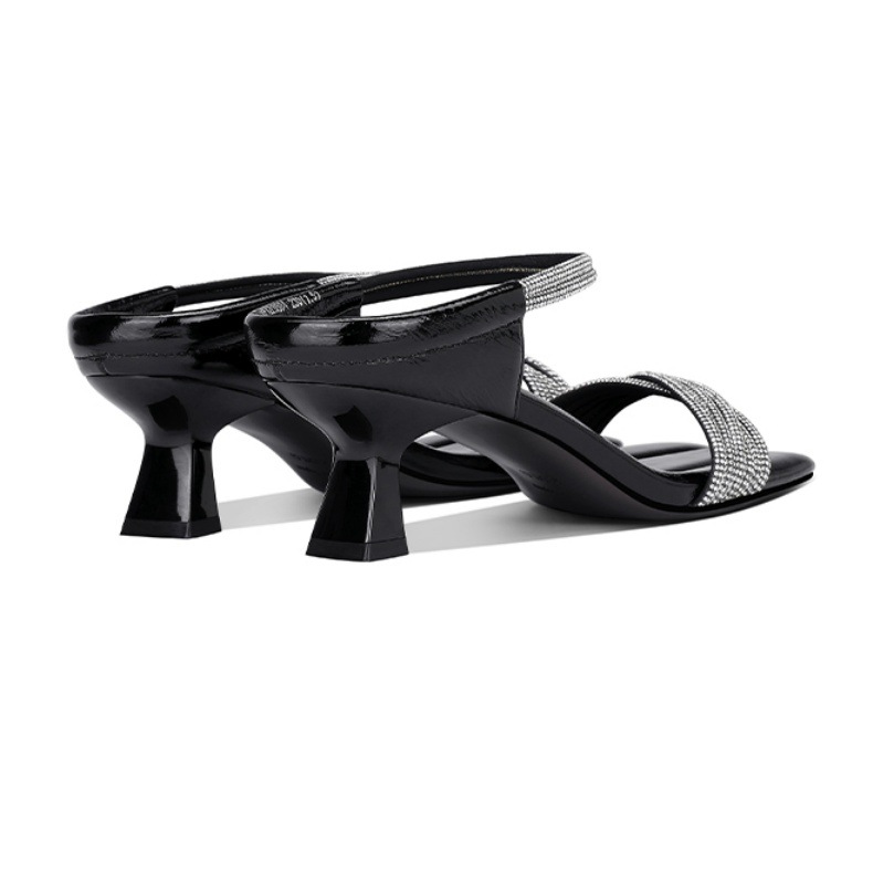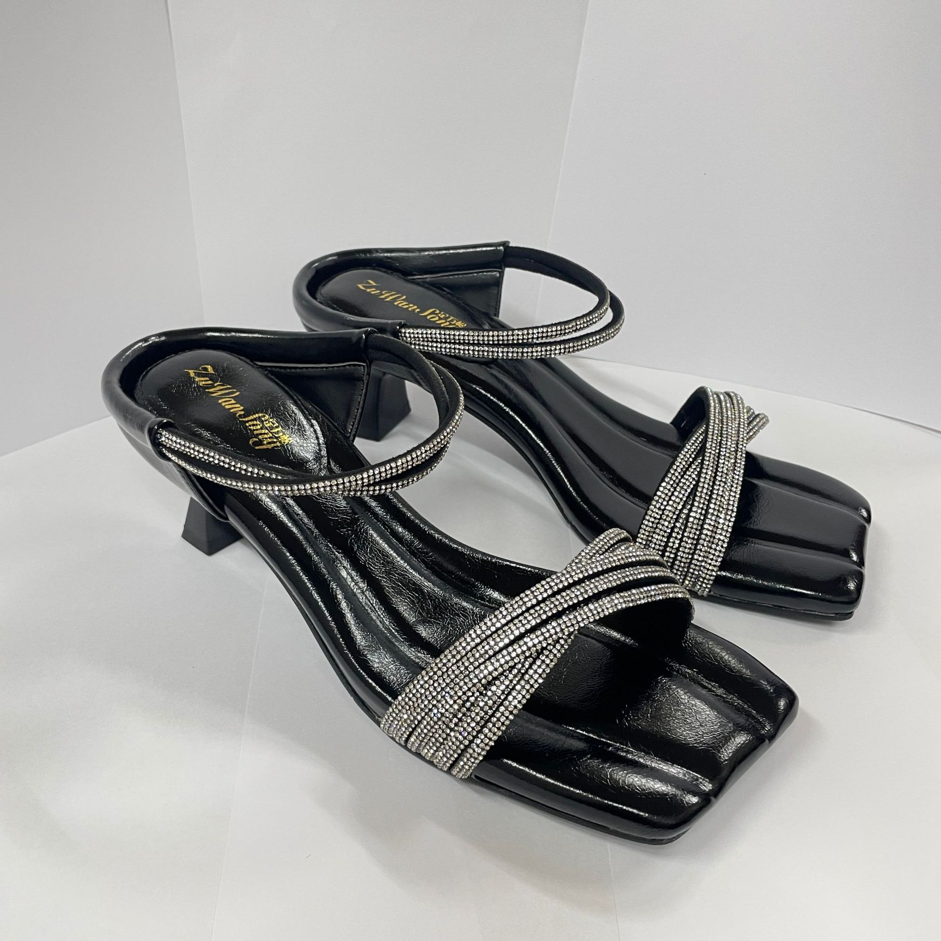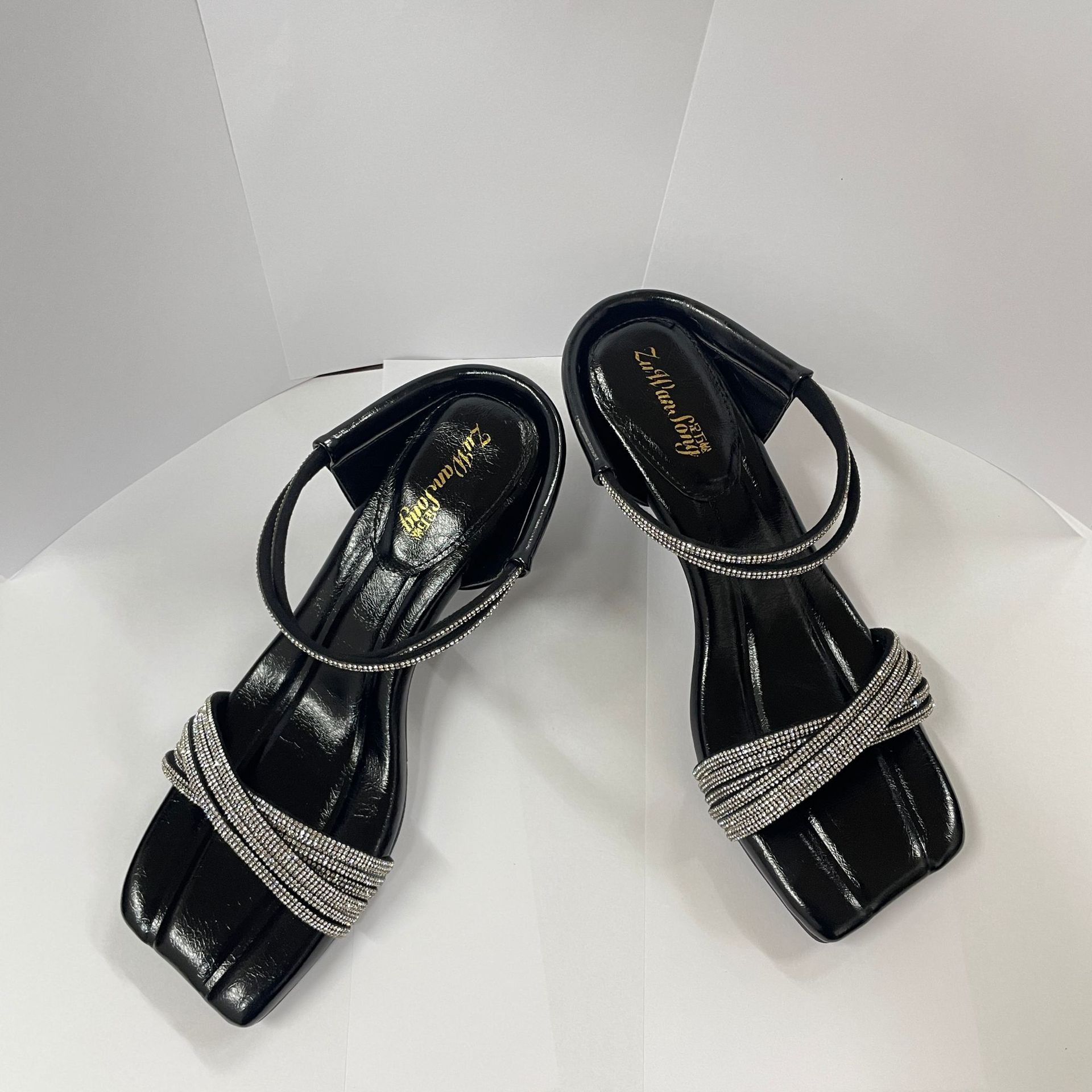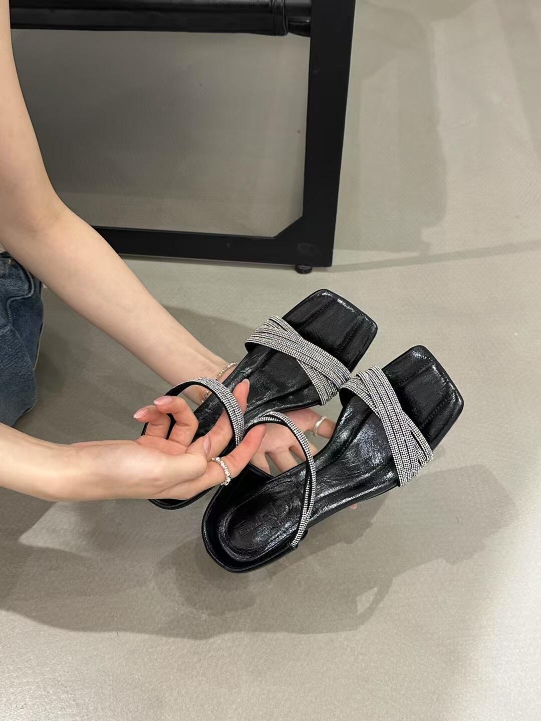Женские летние босоножки 2025 года, квадратный носок, высокий каблук, модная новинка, с камнями, толстый каблук, к юбке, сказочные сандалии
