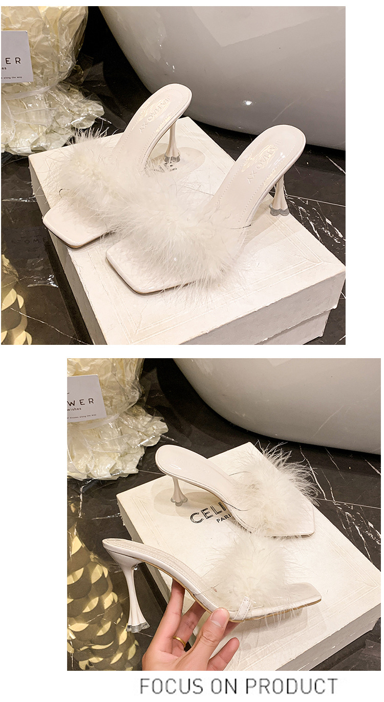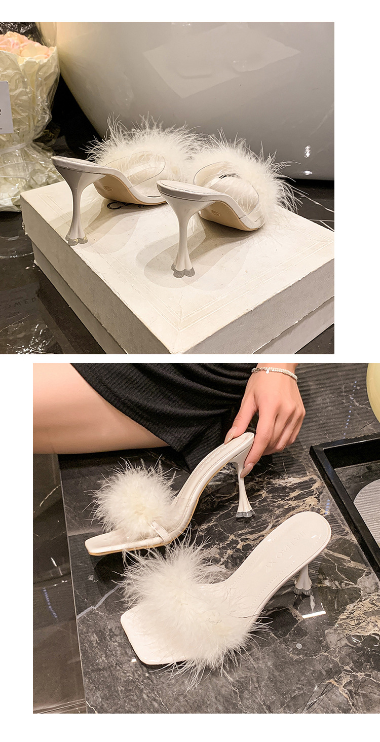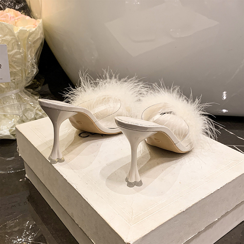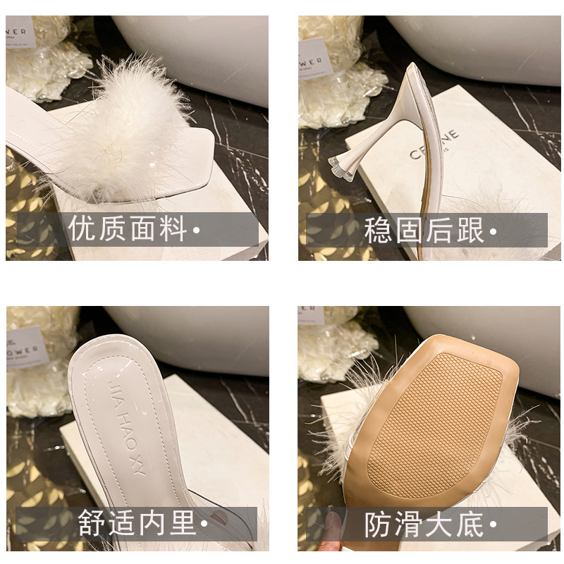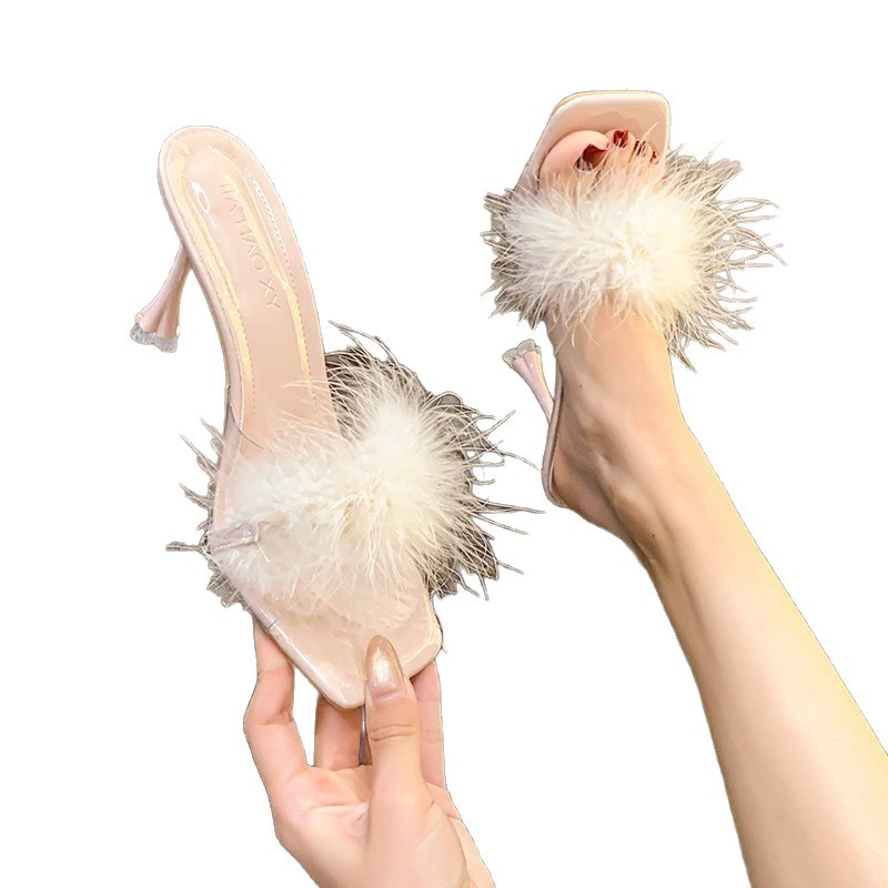 Женские летние 2025 новые модные плюшевые открытые тапочки в корейском стиле на шпильке для улицы