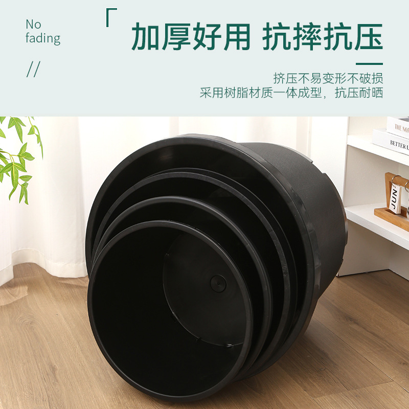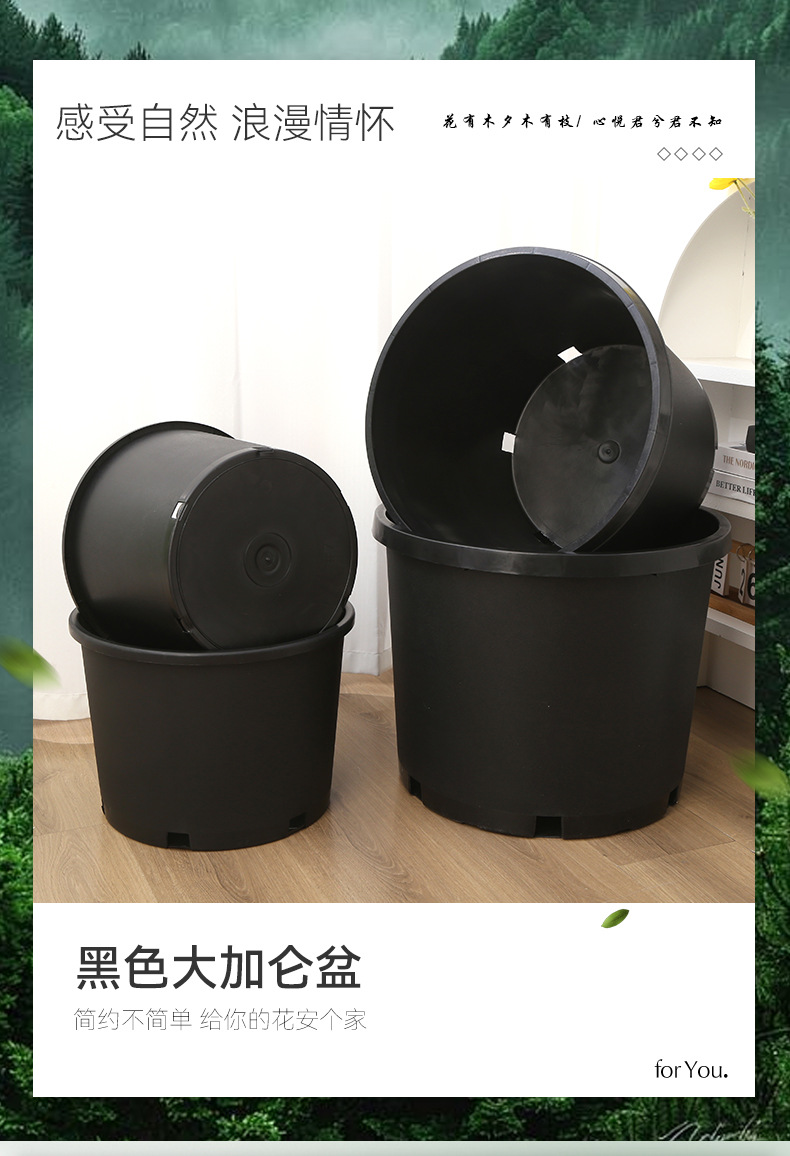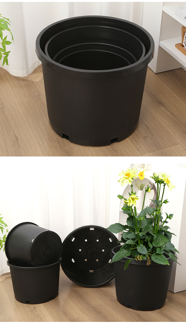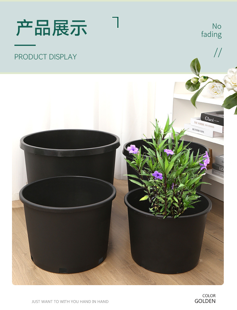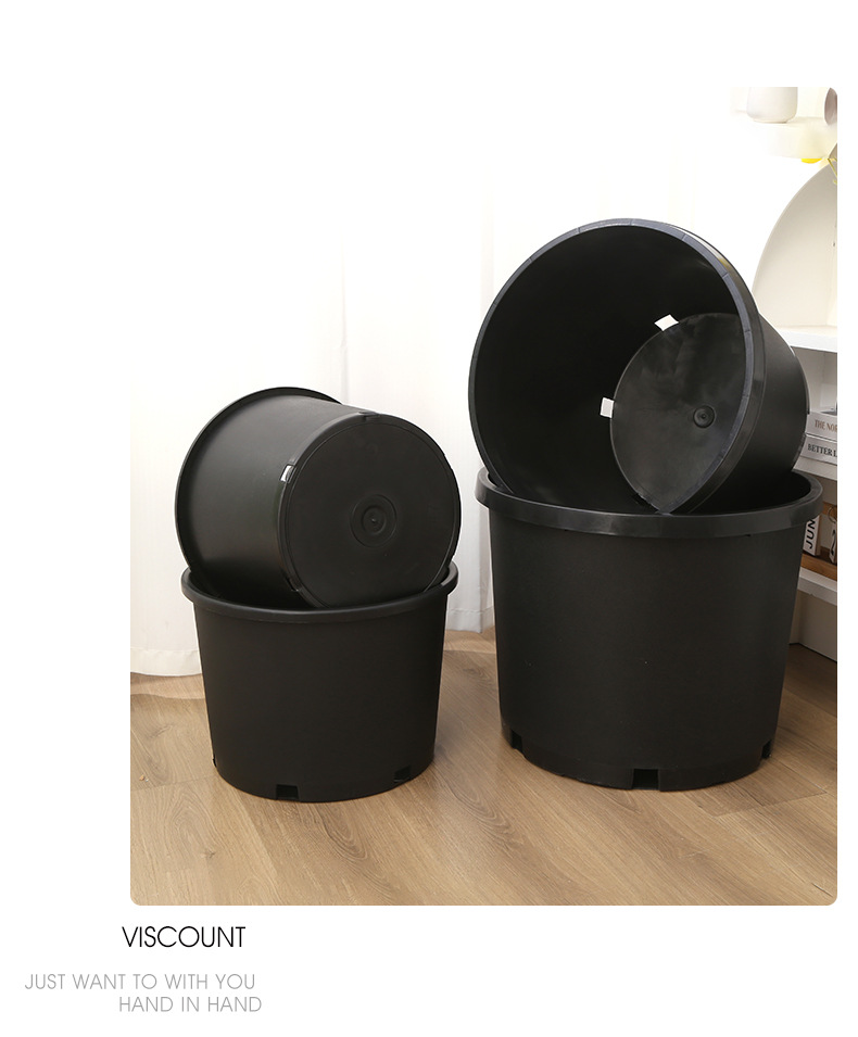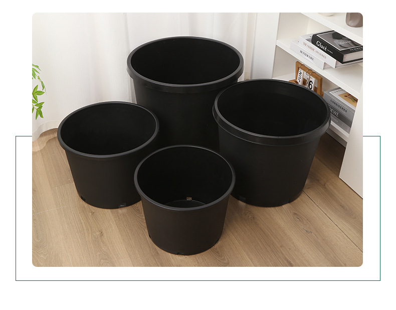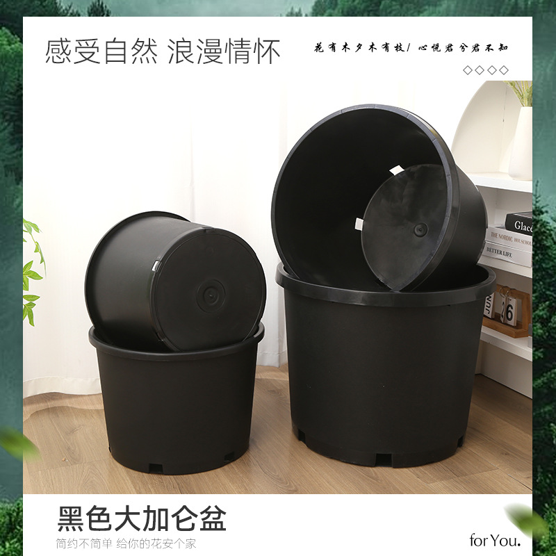 Черный большой галлонный горшок из твердого пластика с круглым горлышком, цветочный горшок в пасторальном стиле, утолщенный цветочный горшок для фруктовых деревьев, оптовая продажа, черный цветочный горшок с несколькими спецификациями