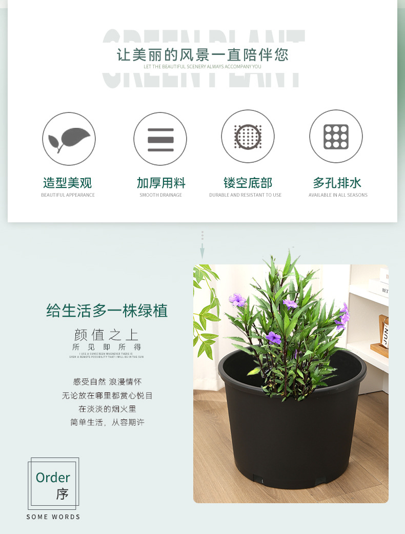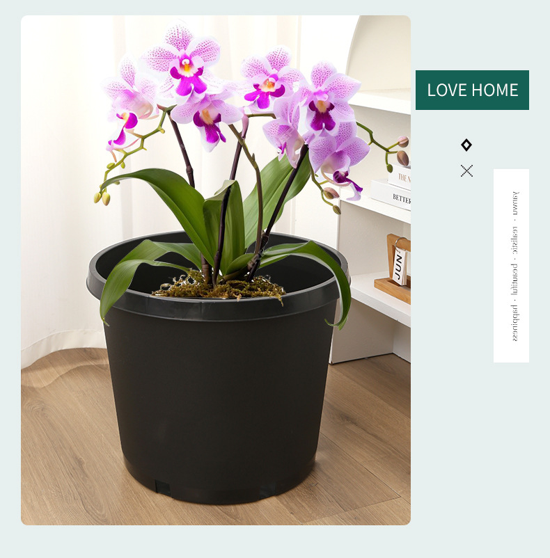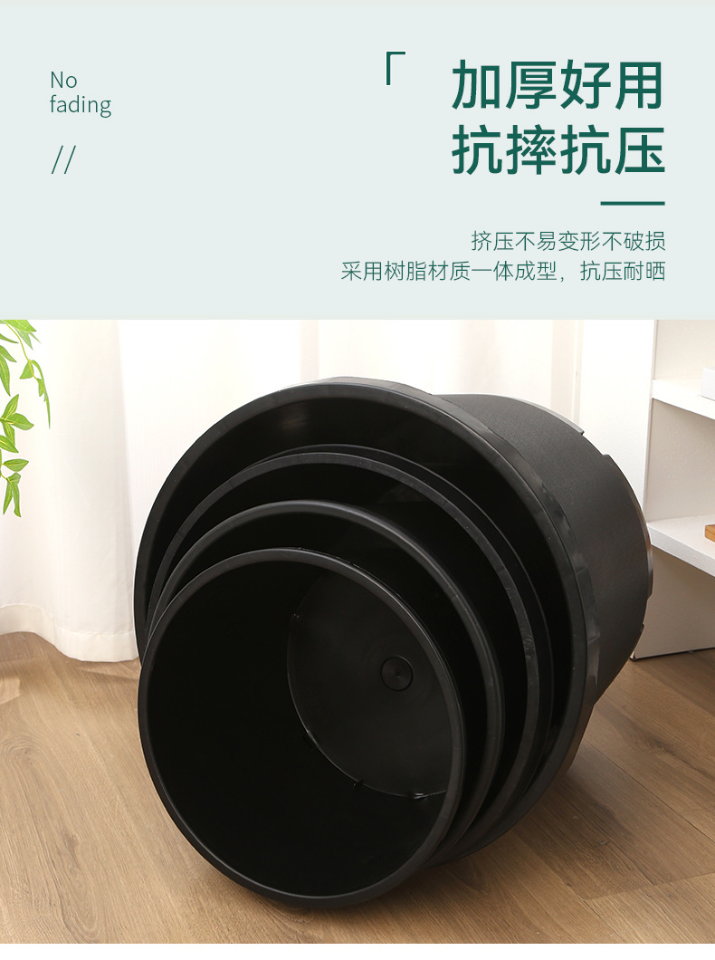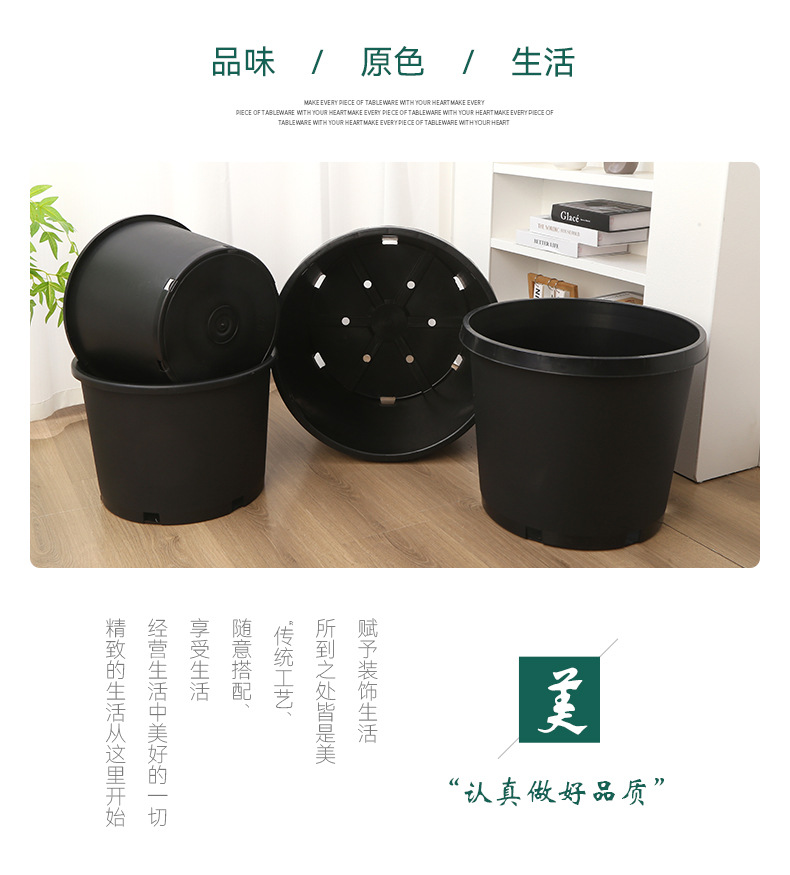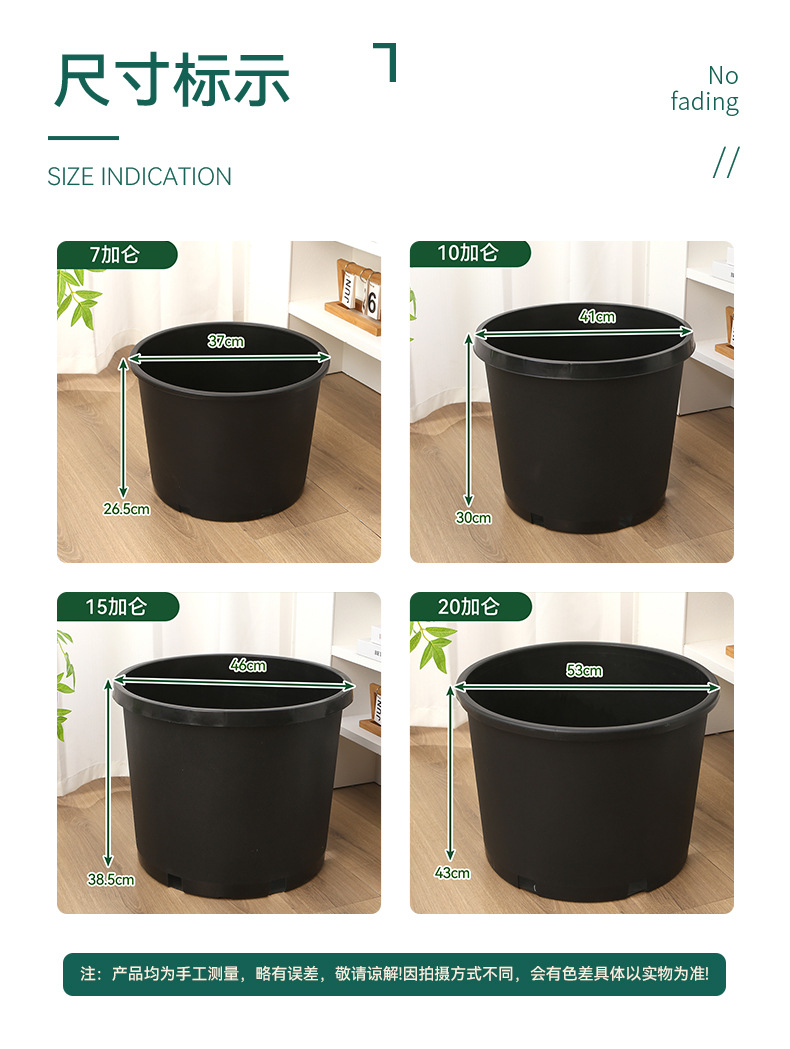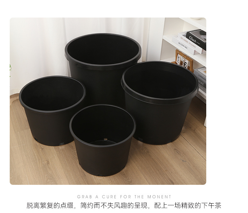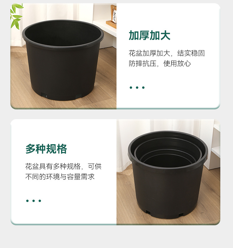 Черный большой галлонный горшок из твердого пластика с круглым горлышком, цветочный горшок в пасторальном стиле, утолщенный цветочный горшок для фруктовых деревьев, оптовая продажа, черный цветочный горшок с несколькими спецификациями