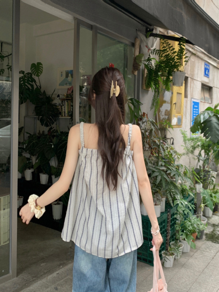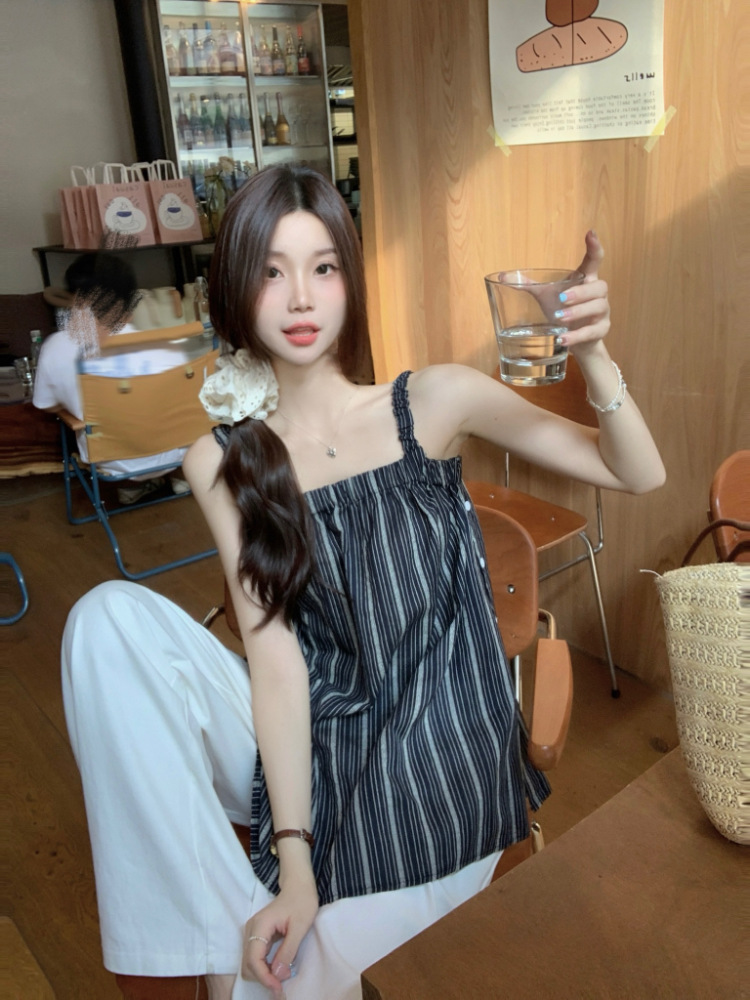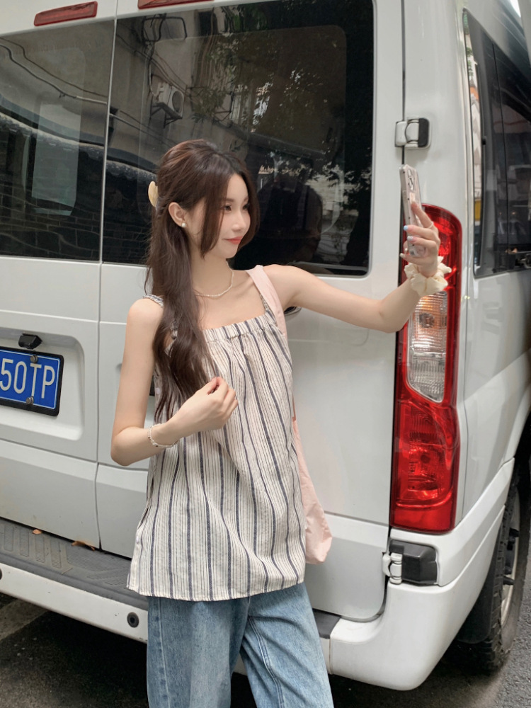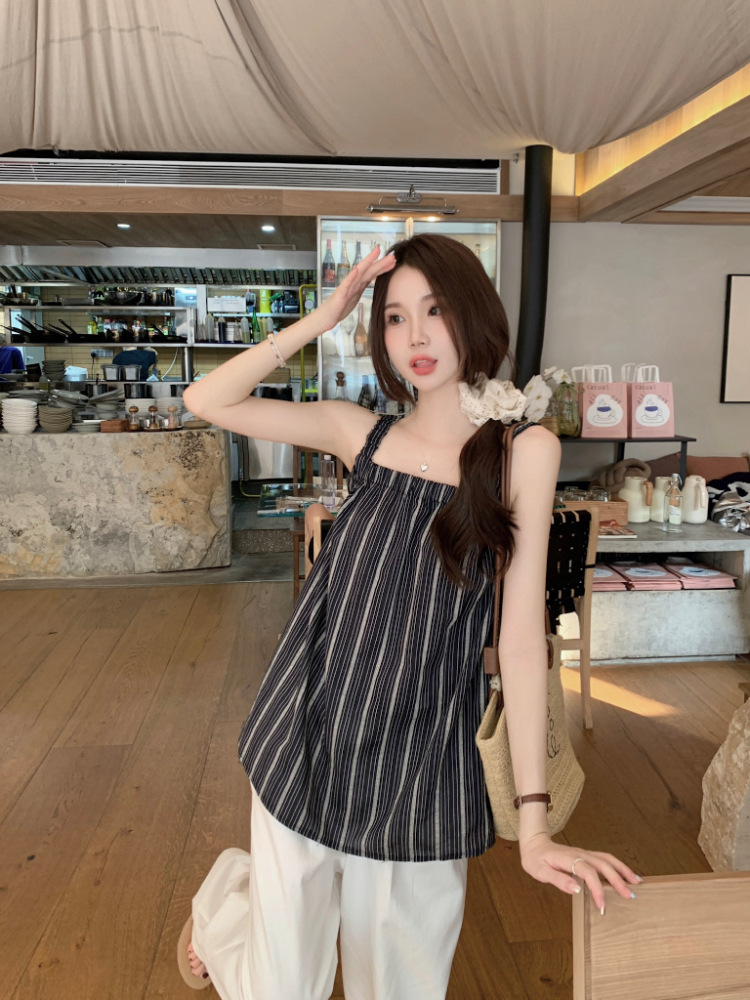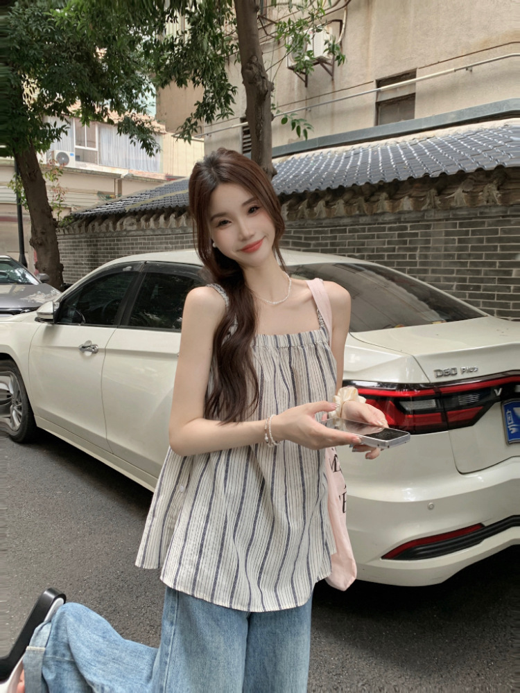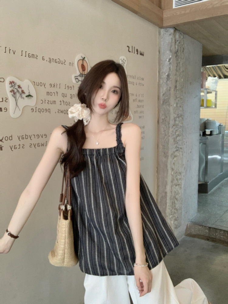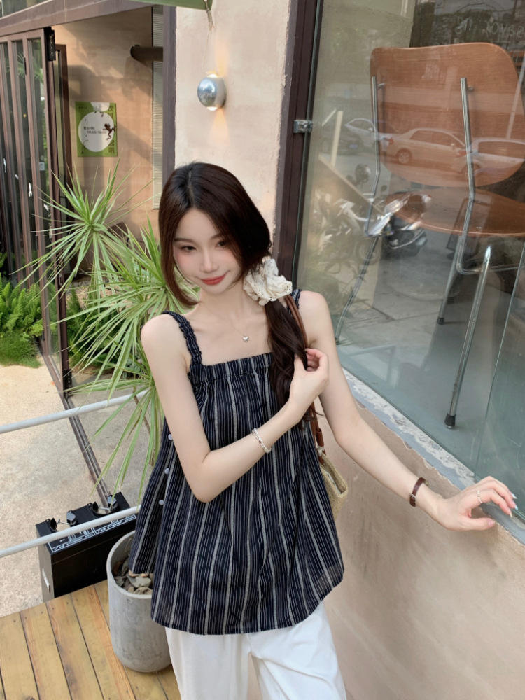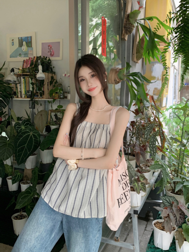 Корейский стиль универсальный полосатый топ для женщин 2025 новый летний верхняя одежда повседневный элегантный стиль для отпуска безрукавка