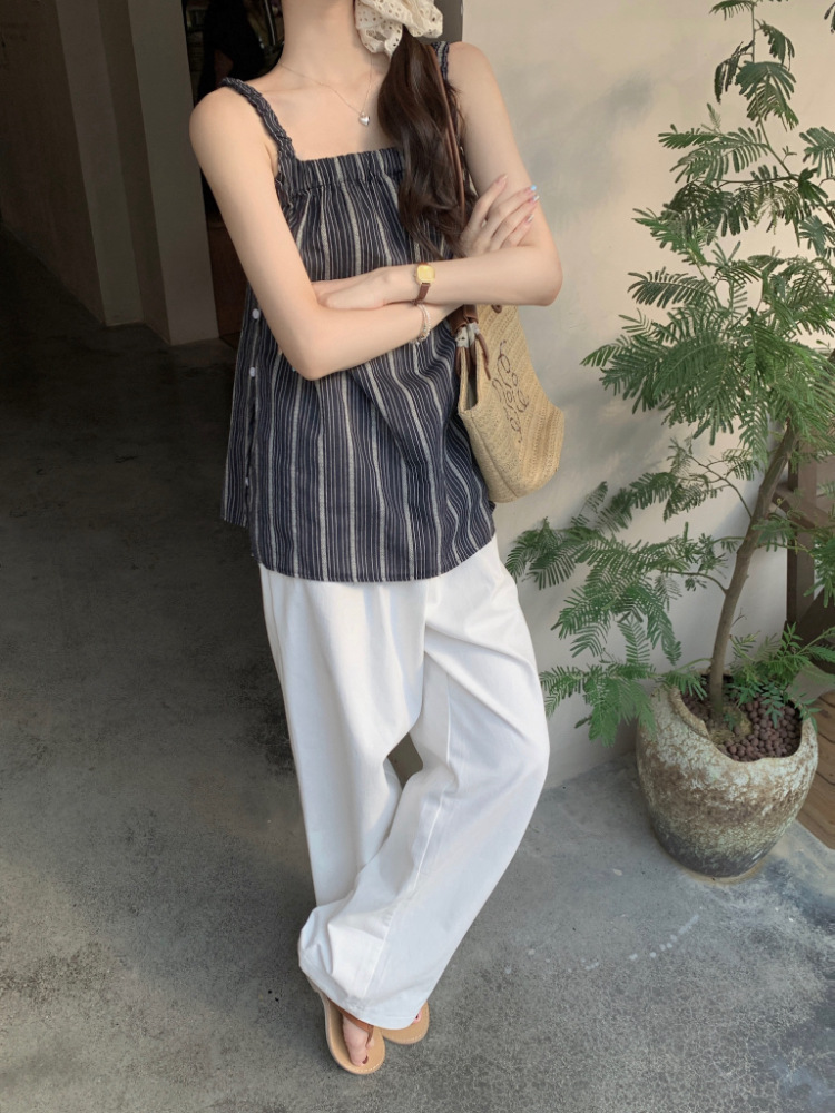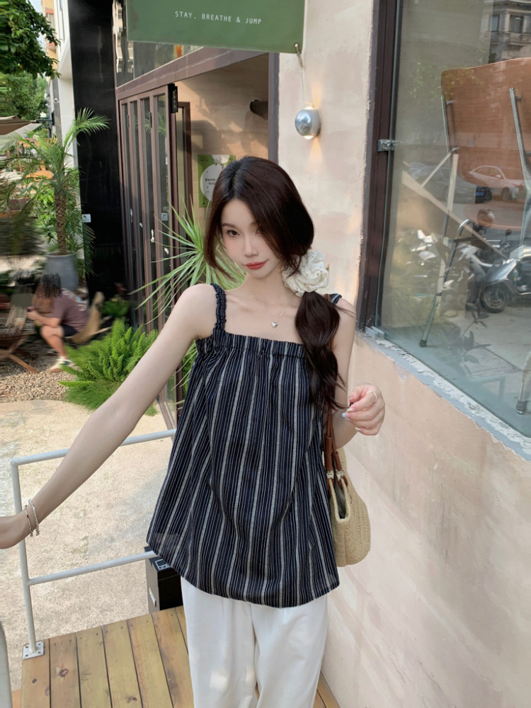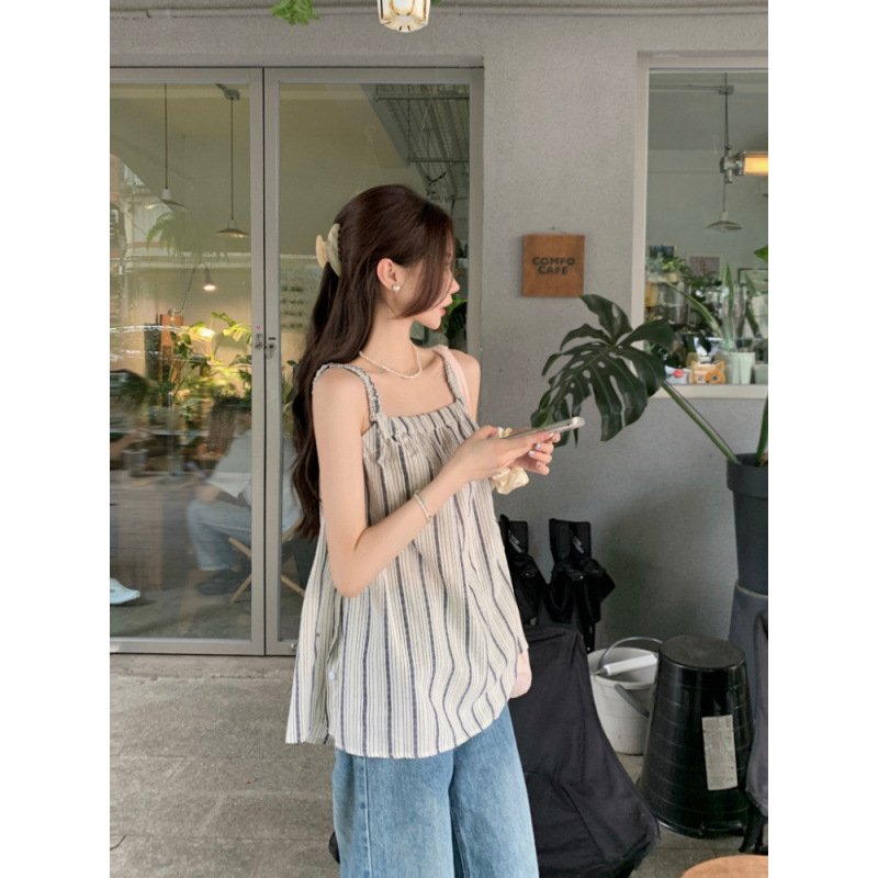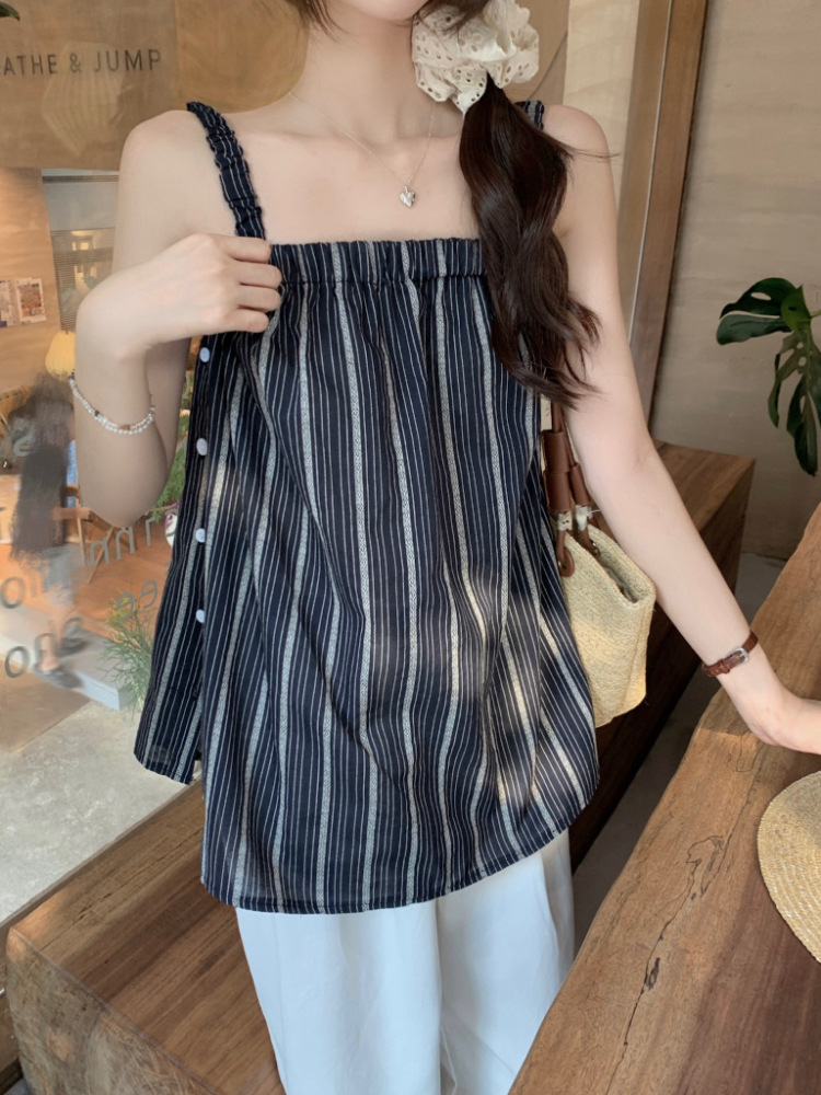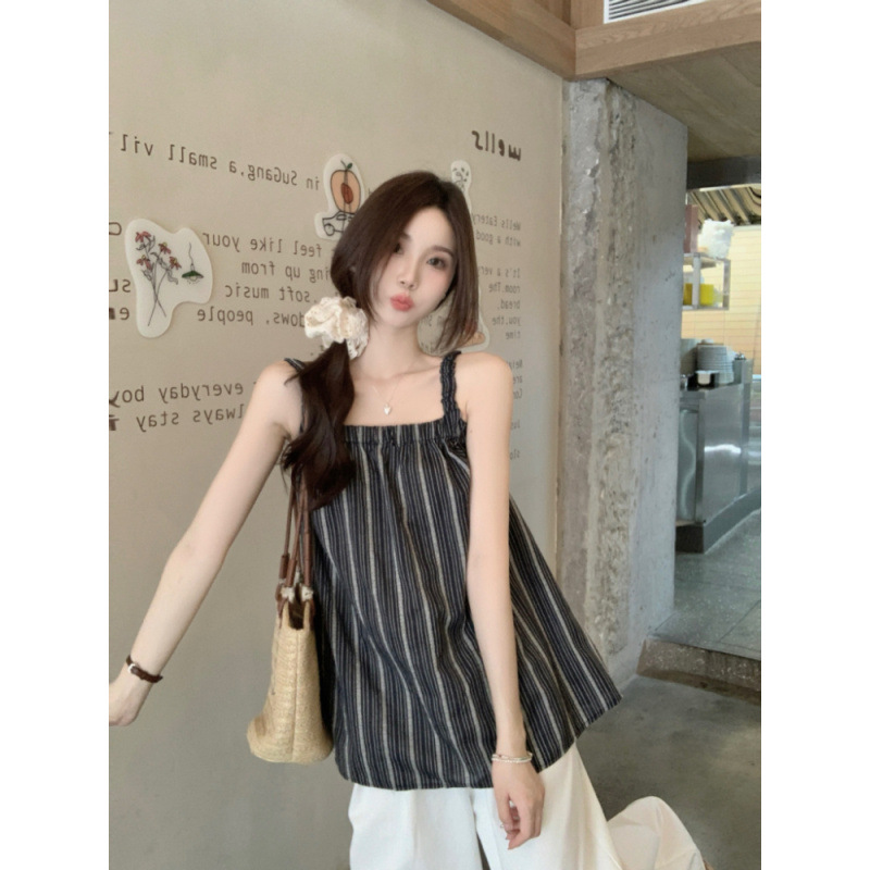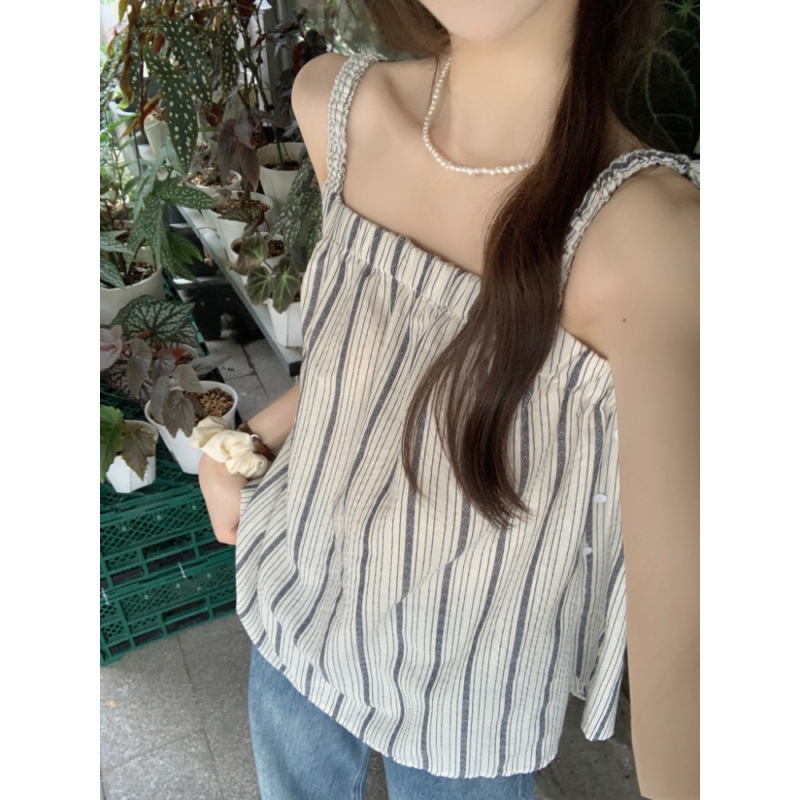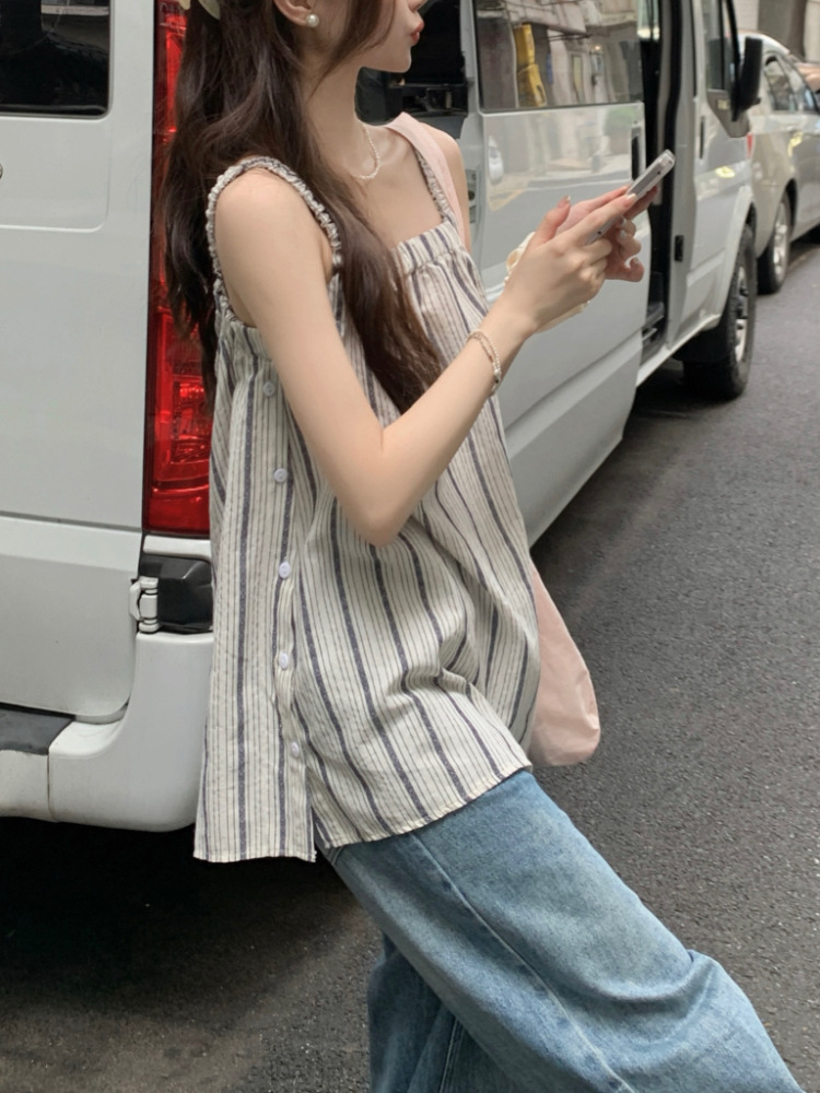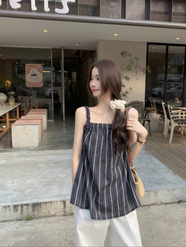 Корейский стиль универсальный полосатый топ для женщин 2025 новый летний верхняя одежда повседневный элегантный стиль для отпуска безрукавка