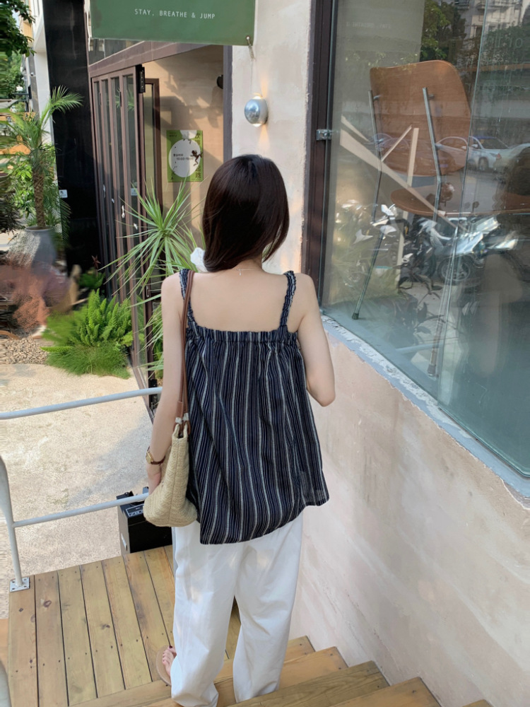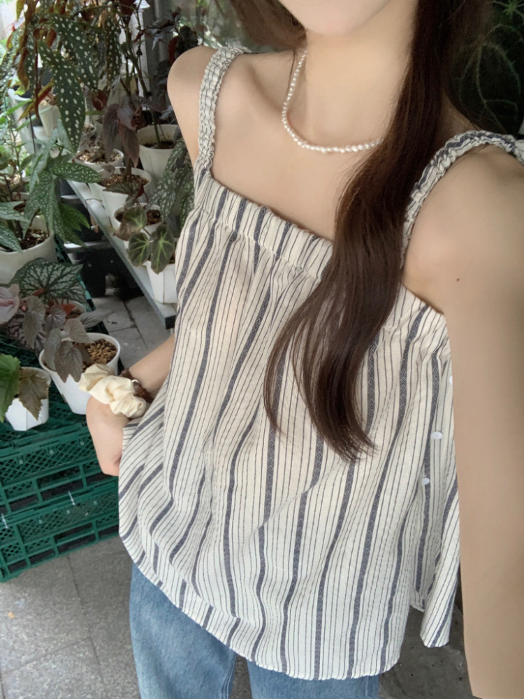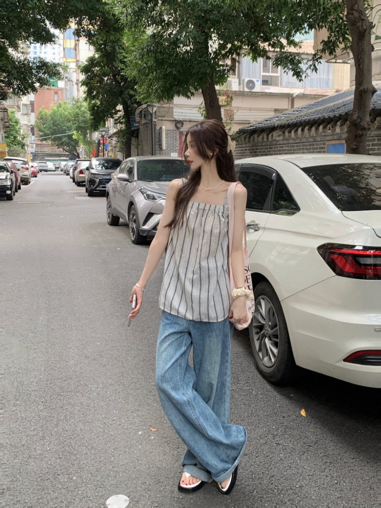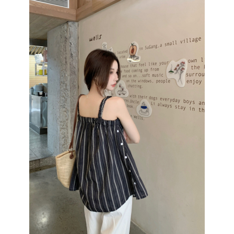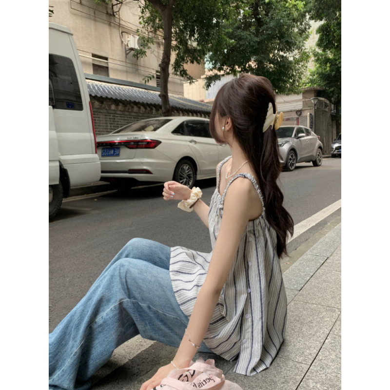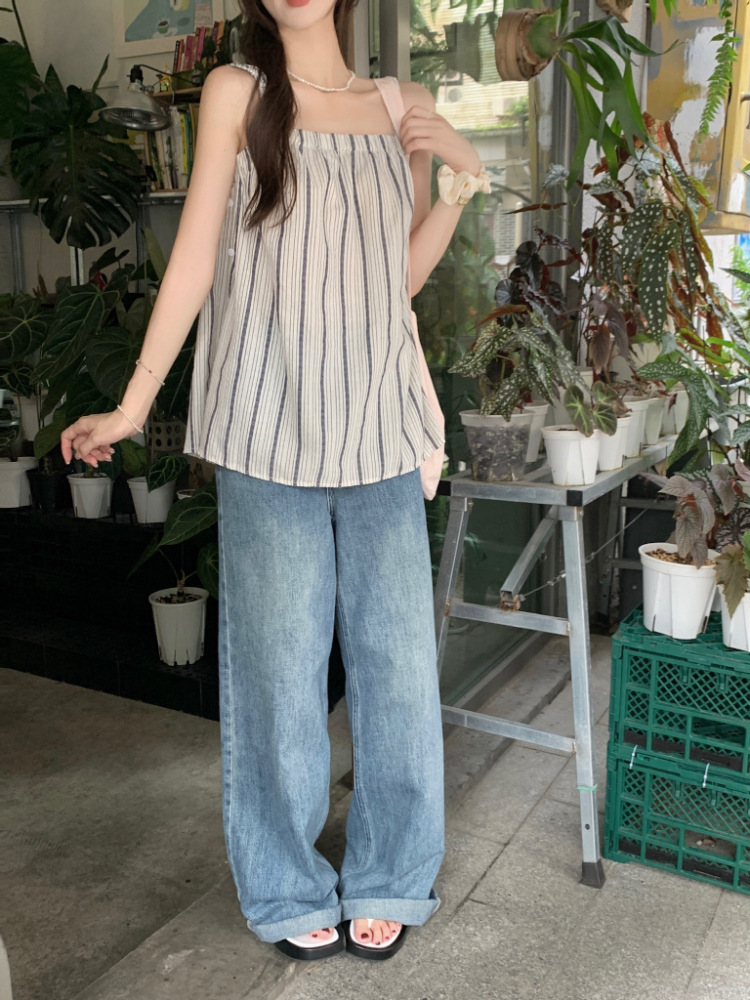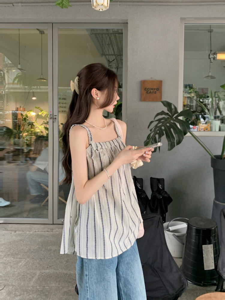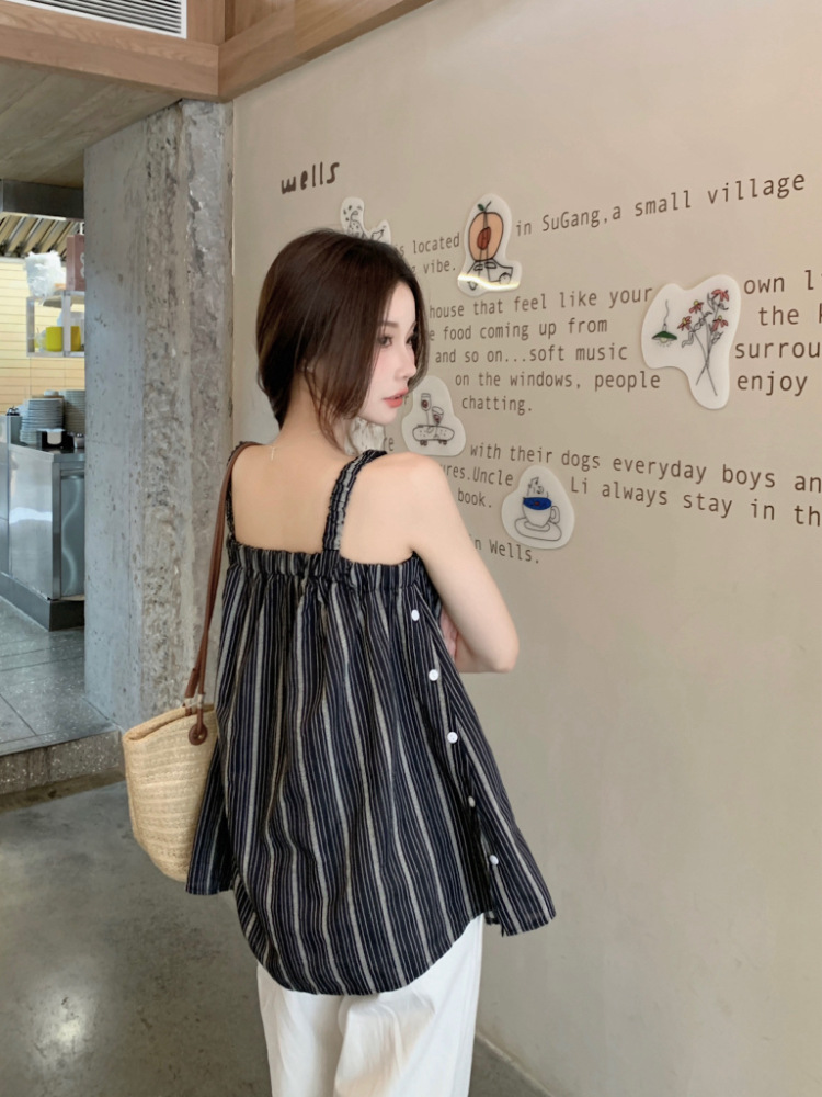 Корейский стиль универсальный полосатый топ для женщин 2025 новый летний верхняя одежда повседневный элегантный стиль для отпуска безрукавка