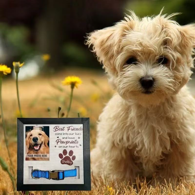 Деревянная памятная фоторамка для домашних животных может содержать ошейник, стерео стол, фоторамку для домашних животных, деревянный подарок для потерянного питомца