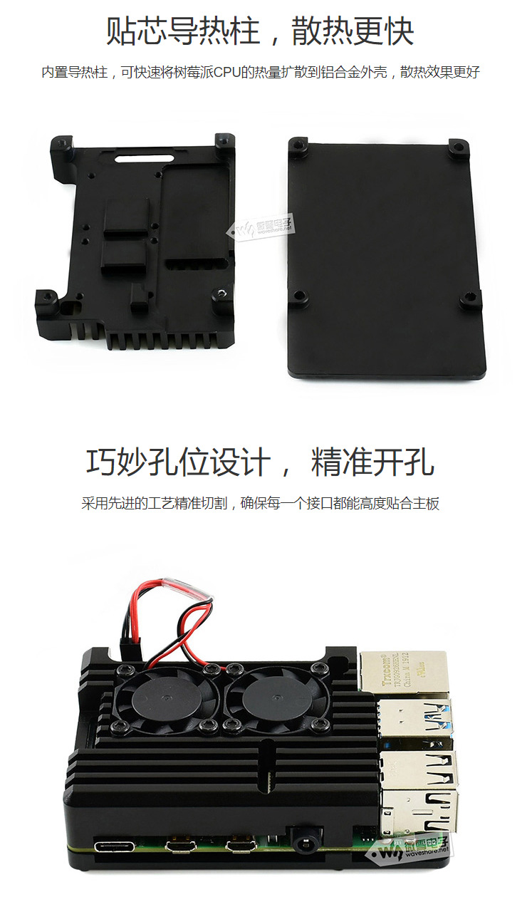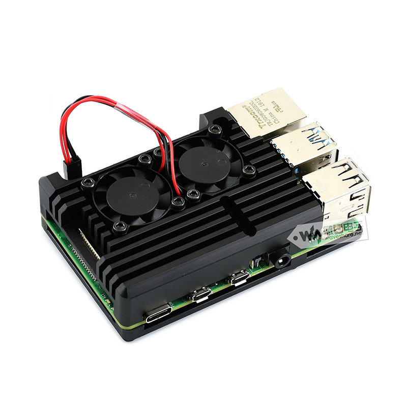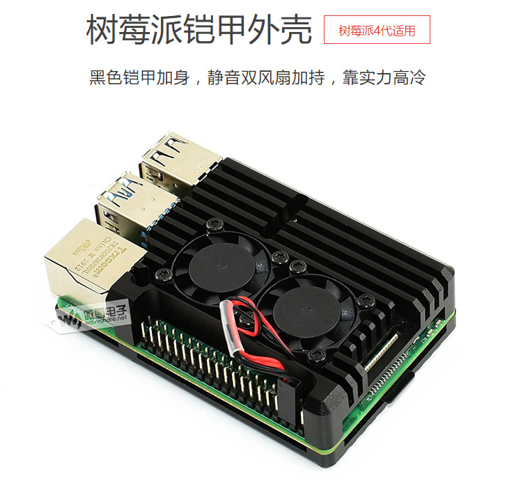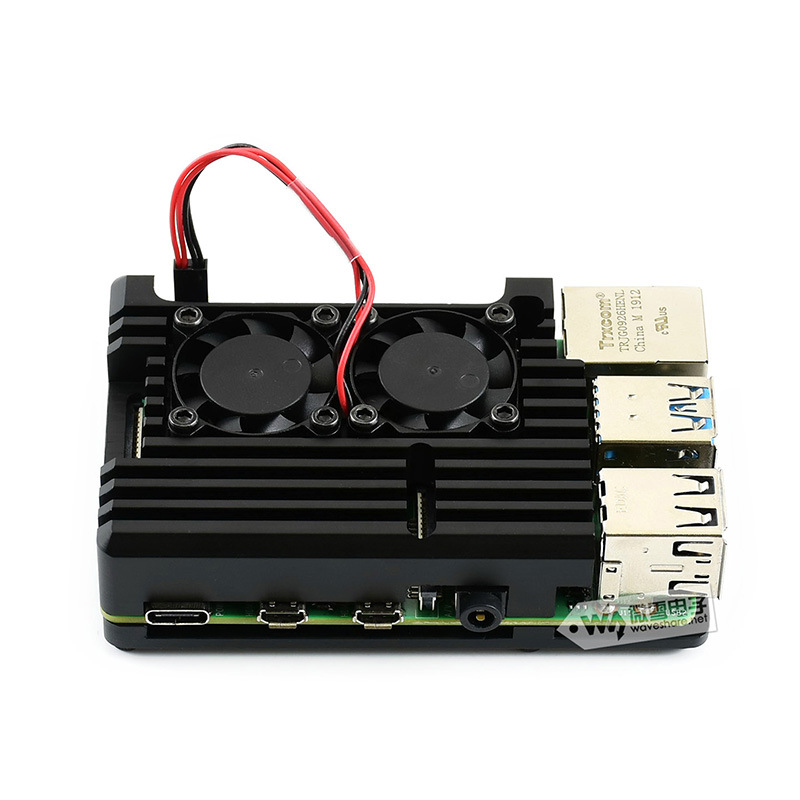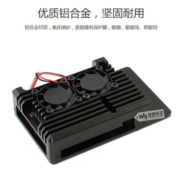 树莓派4代(Raspberry Pi)铝合金外壳,带双风扇。特点:坚固、防尘、散热性能好。产品解析