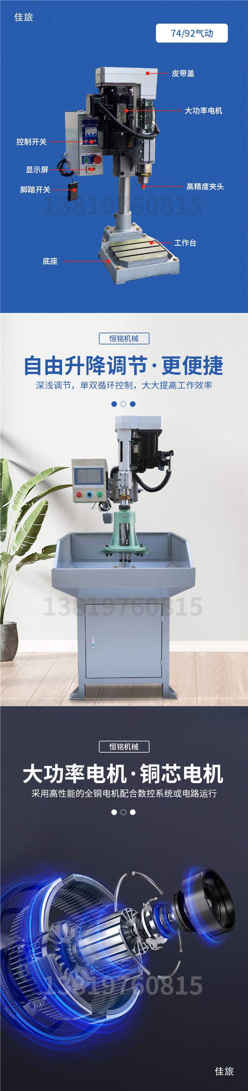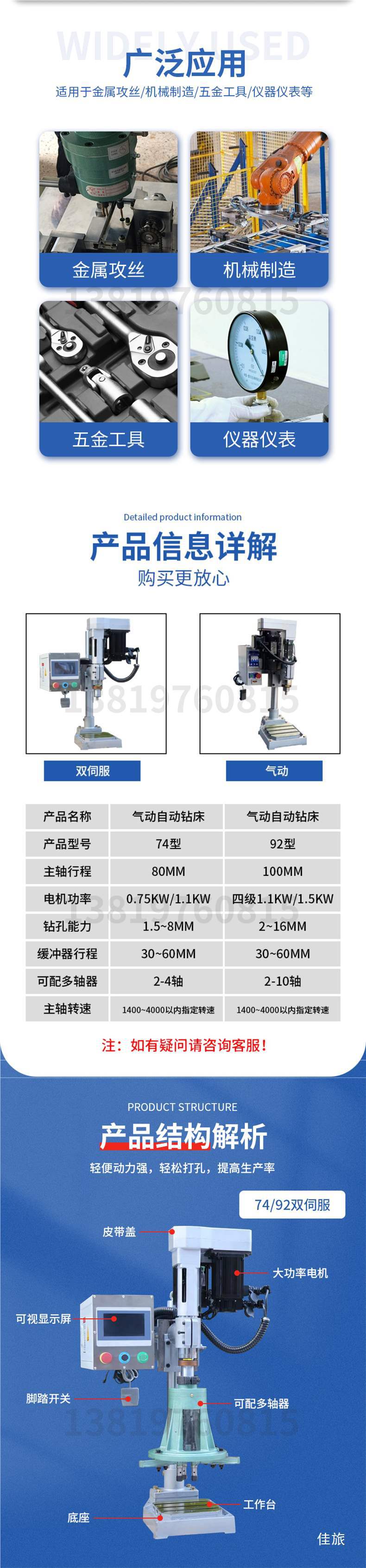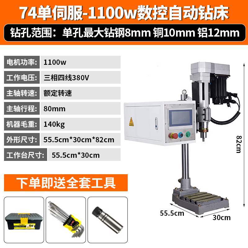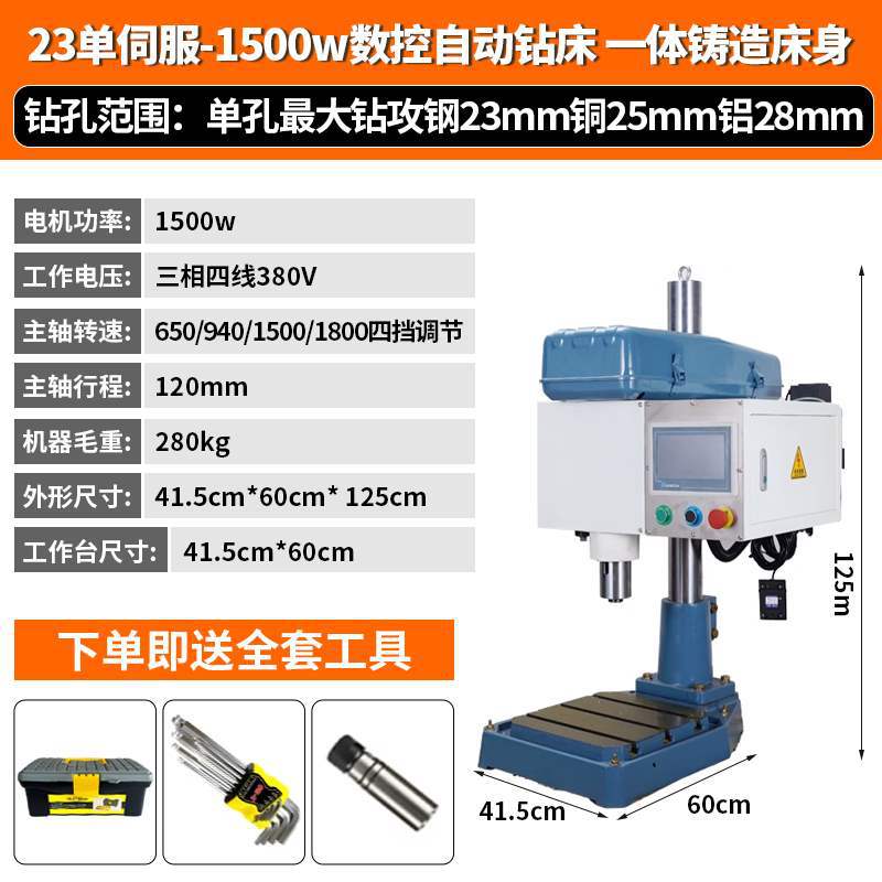 74 пневматическая машина (только пневматическая подача + сверление), синхронное колесо с заменой скорости [полный комплект вспомогательных инструментов]; 92 пневматическая машина в сборе (только пневматическая подача + сверление), синхронное колесо с заменой скорости [полный комплект вспомогательных инструментов]; 74 с одним сервоприводом (только сервопривод + сверление) [полая колонна с полным набором опорных инструментов]; 74 двойных сервопривода (подача сервопривода + сверление и нарезание резьбы) [полая колонна с полным набором опорных инструментов]]; 92 с одним сервоприводом (только сервопривод + сверление) [полая колонна с полным набором вспомогательных инструментов]; 92 двойной сервопривод (подача сервопривода + сверление и нарезание резьбы) [полая колонна с полным набором опорных инструментов]; 18-ти автоматический сверлильный станок с ЧПУ с одним сервоприводом [универсальная литая станина с полным набором вспомогательных инструментов]; 18-все-в-одном станок для сверления и нарезания резьбы с ЧПУ с двумя сервоприводами [литье «все в одном» с полным набором вспомогательных инструментов]; 23 Автоматический сверлильный станок с ЧПУ с одним сервоприводом [Встроенная литейная станина с полным набором вспомогательных инструментов]; 23 станок «все в одном» с двойным сервоприводом и ЧПУ для сверления и нарезания резьбы [литье «все в одном» с полным набором вспомогательных инструментов]; 30-ти автоматический сверлильный станок с ЧПУ с одним сервоприводом [универсальная литая станина с полным набором вспомогательных инструментов]; 30 пар универсальных станков с ЧПУ для сверления и нарезания резьбы с сервоприводом [универсальная литейная станина с полным набором вспомогательных инструментов]; Гидравлическая дрель 8516, гидравлическая автоматическая подача [цельная литая станина, полный комплект вспомогательных инструментов]; 20 гидравлических сверл, гидравлическая автоматическая подача [цельная литая станина, полный комплект вспомогательных инструментов]; Гидравлическая дрель 30, гидравлическая автоматическая подача [цельная литая станина, полный комплект вспомогательных инструментов]; Все модели могут быть оснащены многоосными устройствами.; 74/92 может быть оснащен рабочим столом-раскладушкой, включающим резервуар для воды и насадку водяного насоса.; ST-125; ER сверлильный патрон