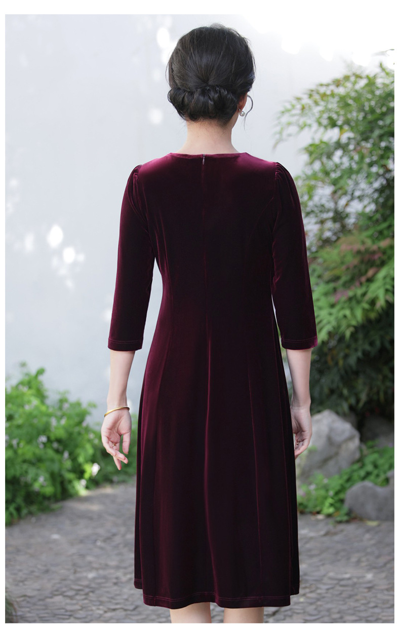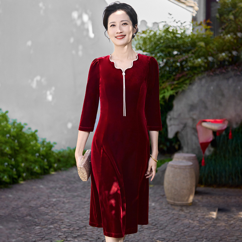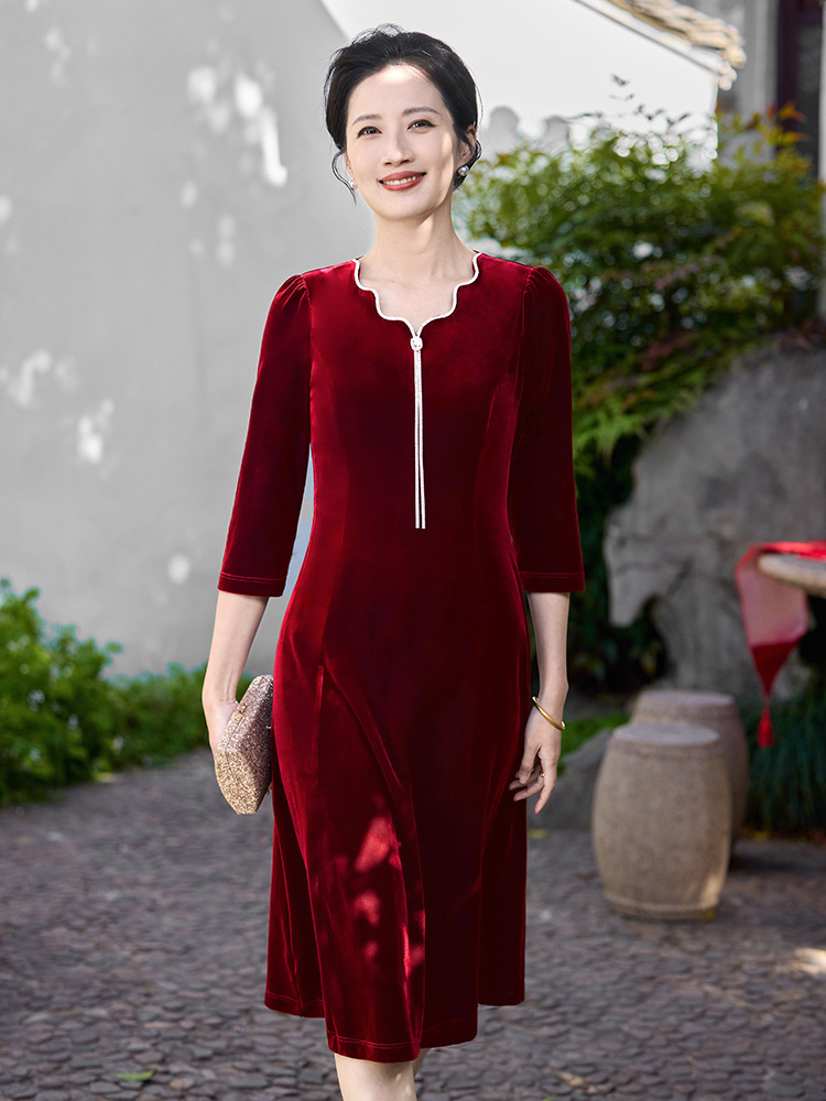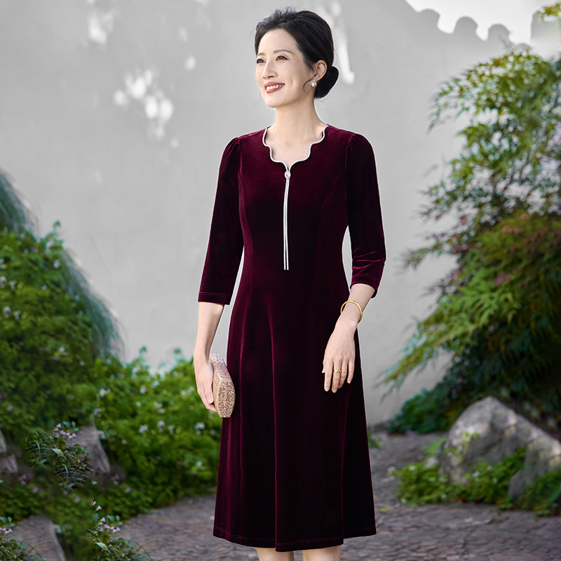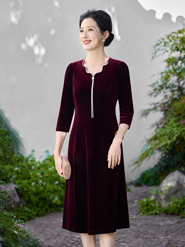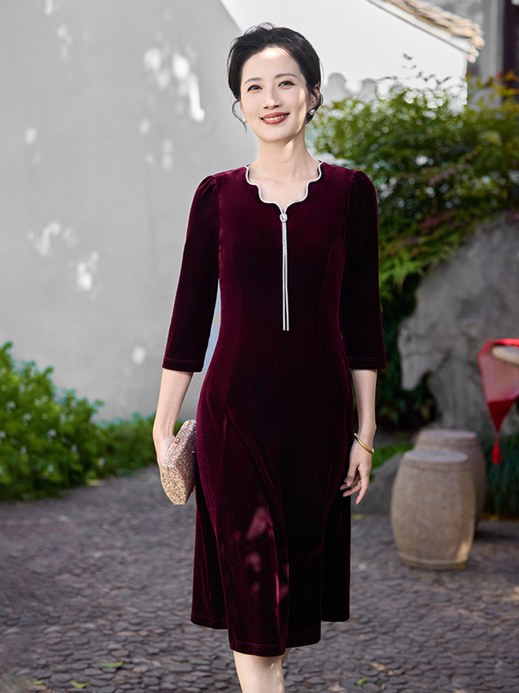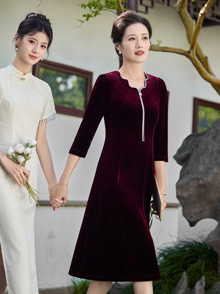 Осеннее тяжелое корейское бархатное свадебное банкетное платье, уменьшающее возраст, фиолетово-красное простое повседневное платье с А-образным подолом, высококачественное платье большого размера