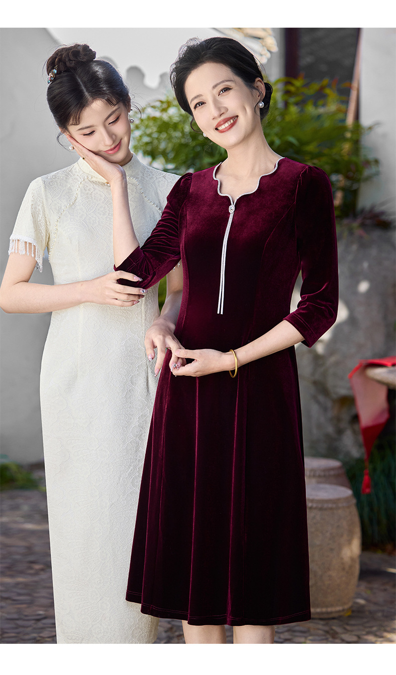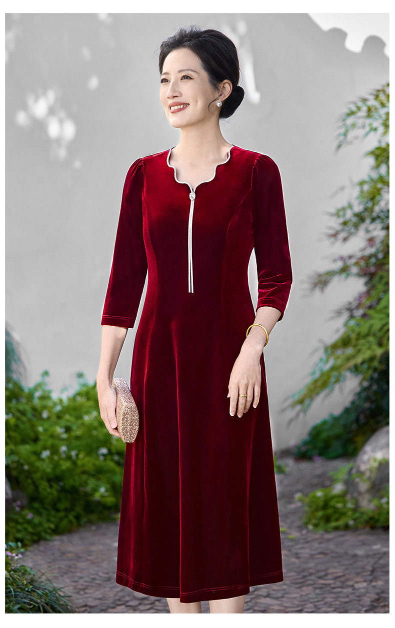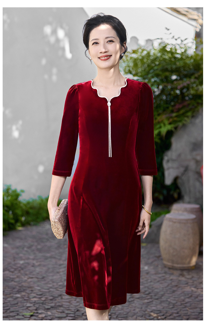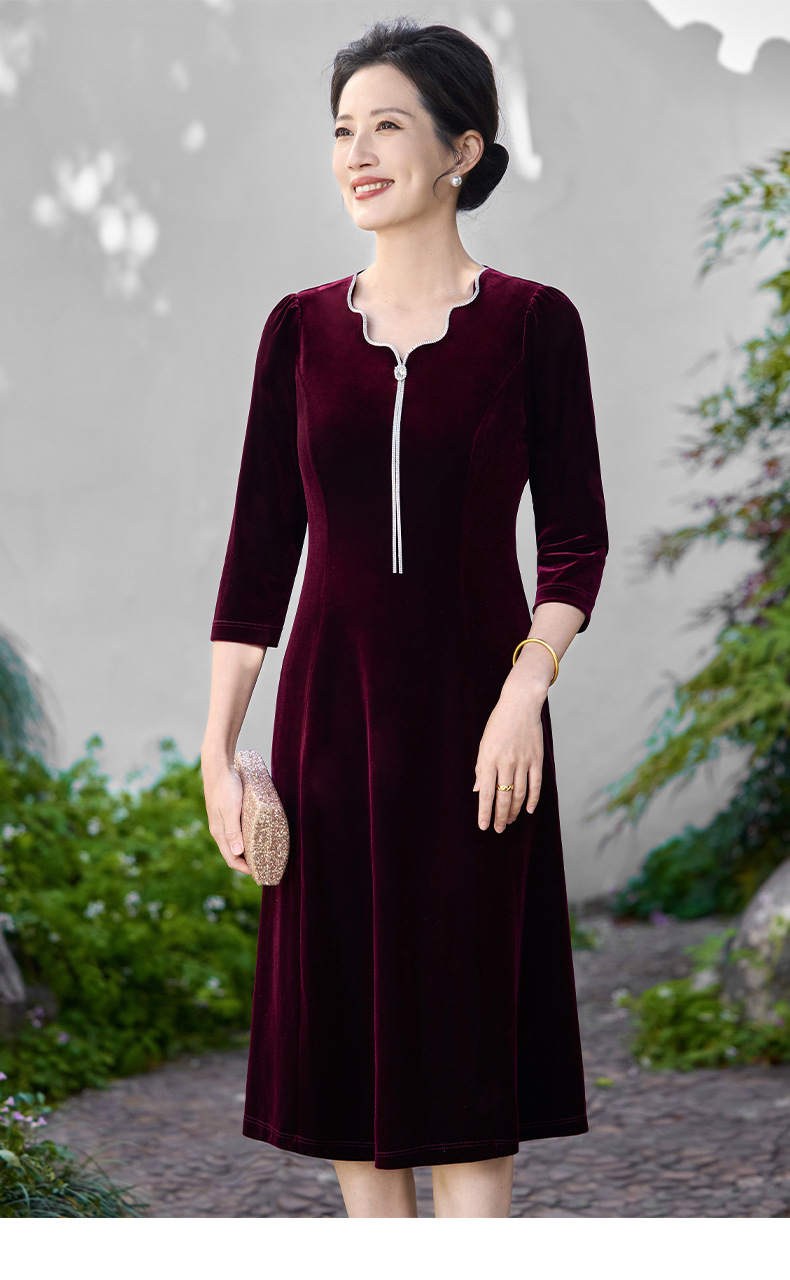 Осеннее тяжелое корейское бархатное свадебное банкетное платье, уменьшающее возраст, фиолетово-красное простое повседневное платье с А-образным подолом, высококачественное платье большого размера