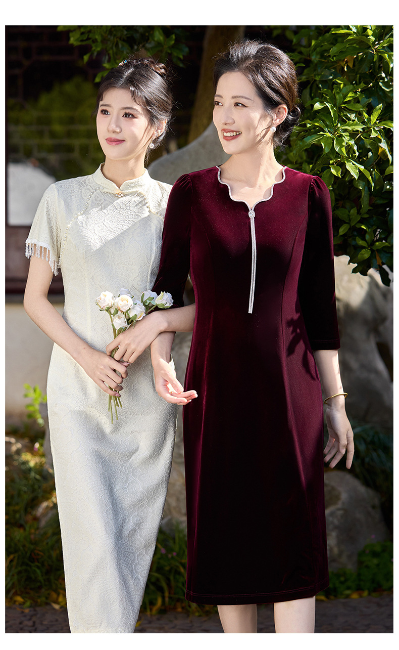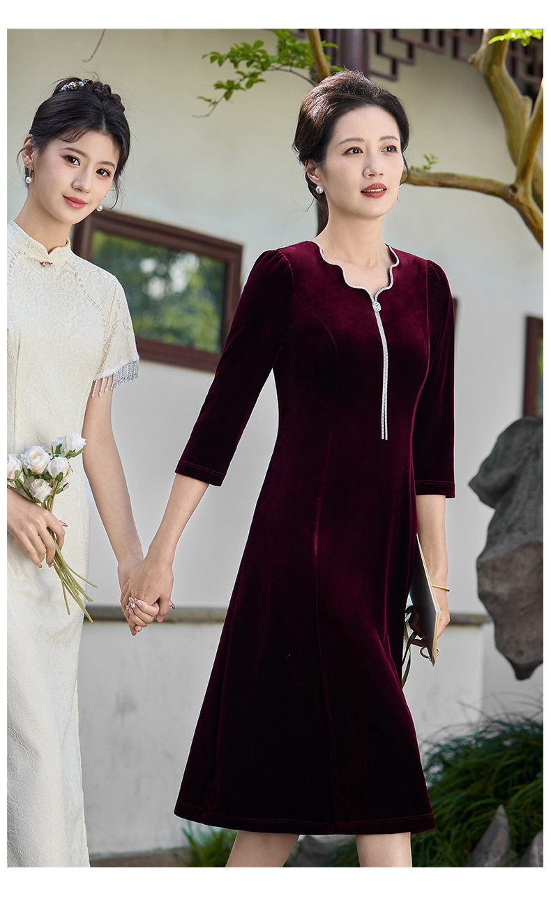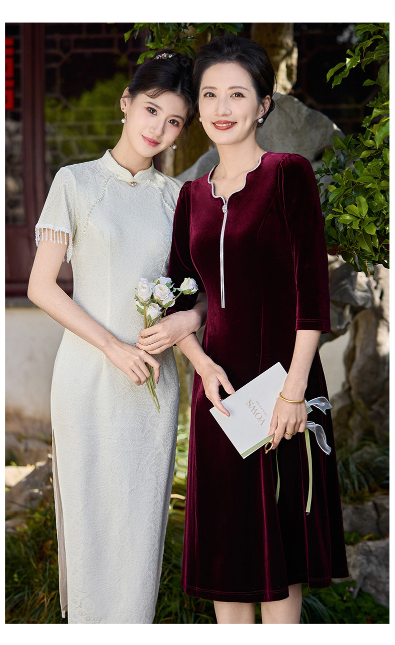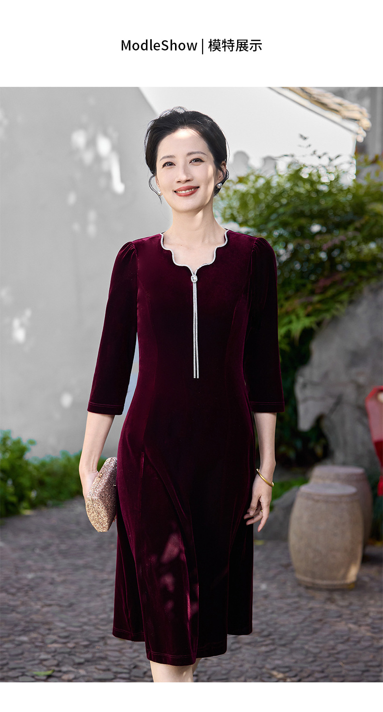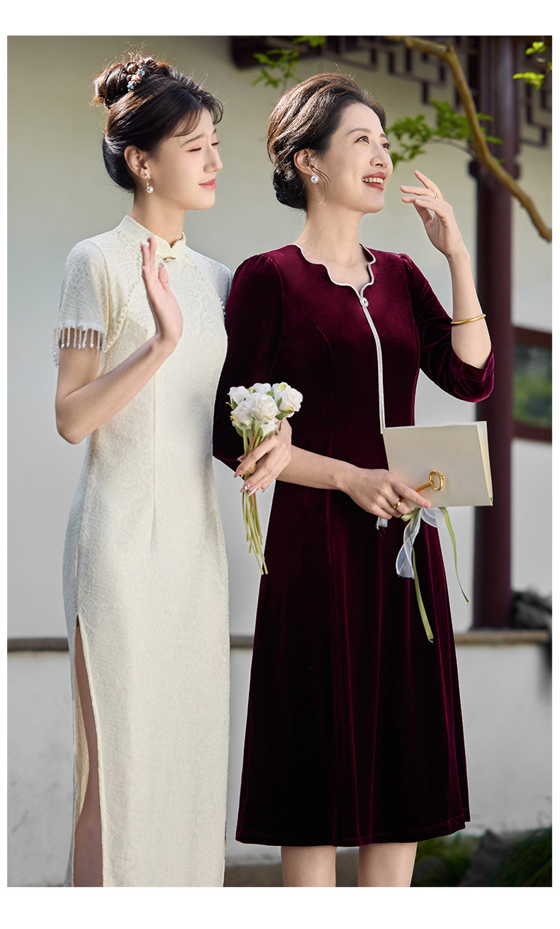 Осеннее тяжелое корейское бархатное свадебное банкетное платье, уменьшающее возраст, фиолетово-красное простое повседневное платье с А-образным подолом, высококачественное платье большого размера