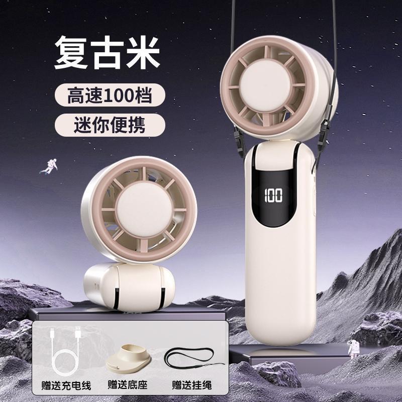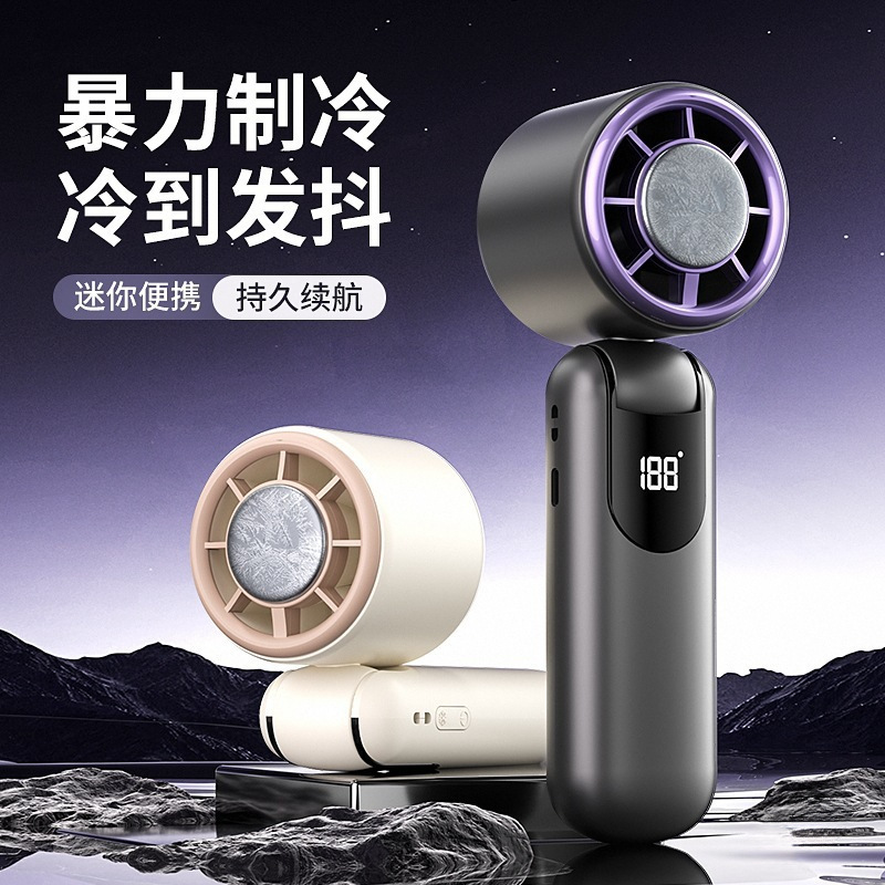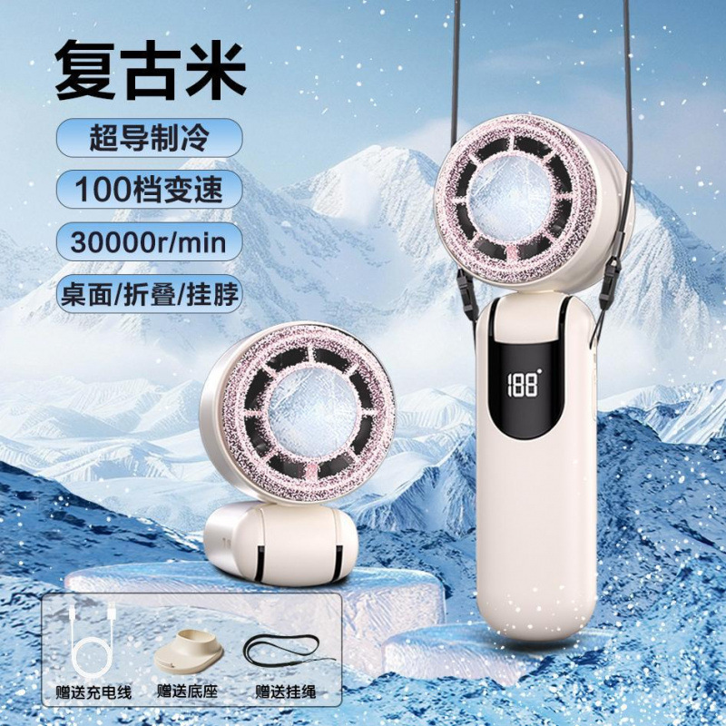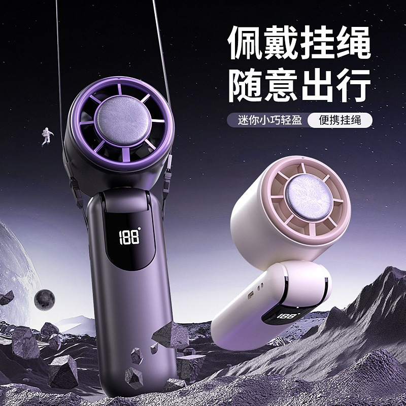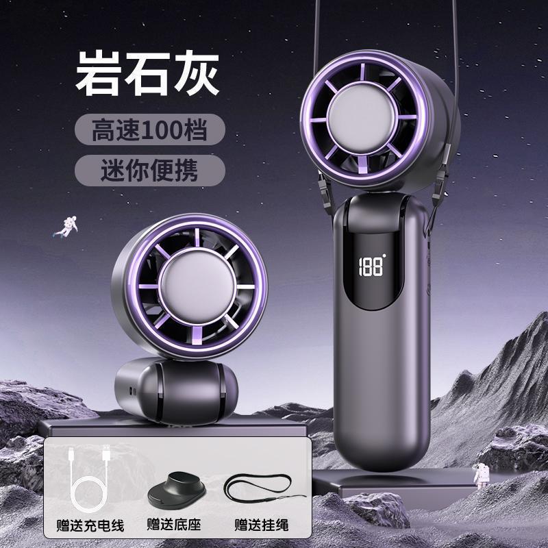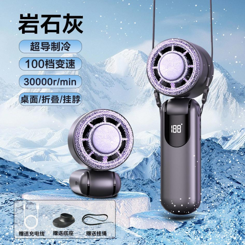 Ручной высокоскоростной маленький вентилятор, мини-складной, подвесной на шею, перезаряжаемый, ледяной охлаждающий турбинный мощный ураган