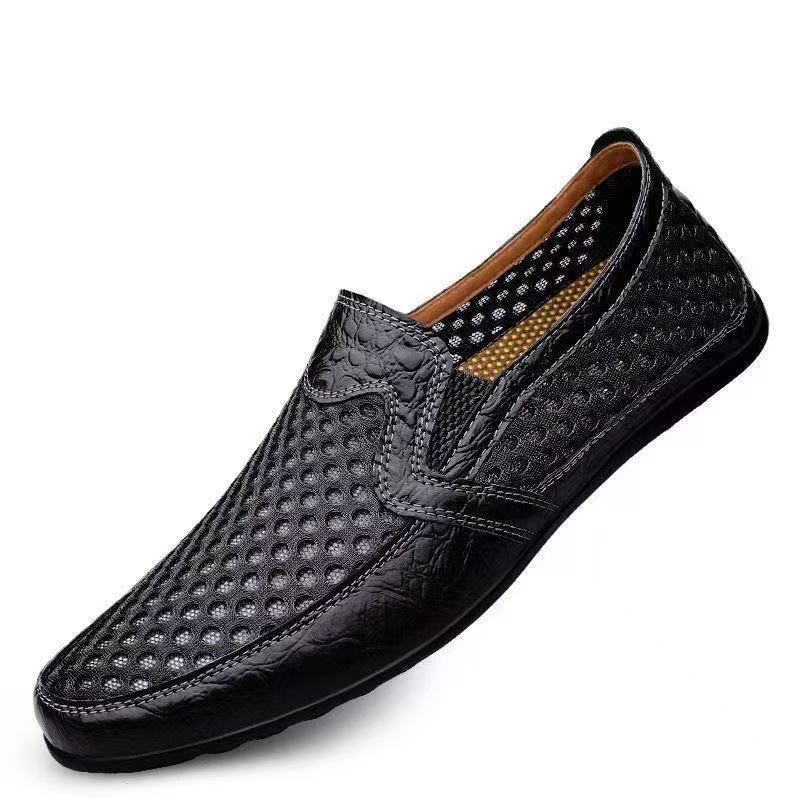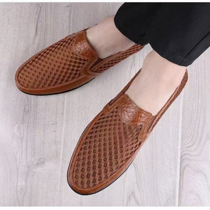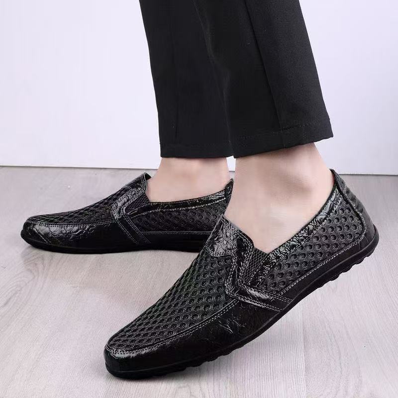 Кожаные сандалии, новые повседневные кожаные туфли без шнуровки, мужская летняя обувь с сеткой, обувь для вождения с дышащей сеткой, мужская обувь
