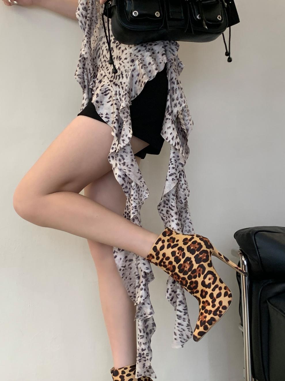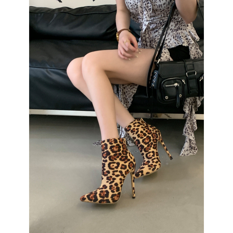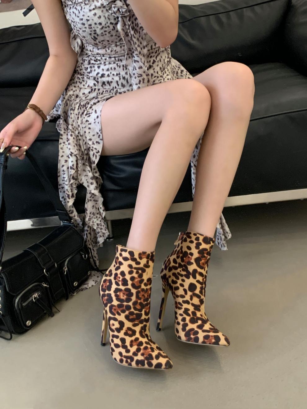 2025 новые европейские и американские женские ботинки с диким леопардовым принтом для сцены, экспорт моды, интернет-знаменитости, сексуальные короткие ботинки на шпильке