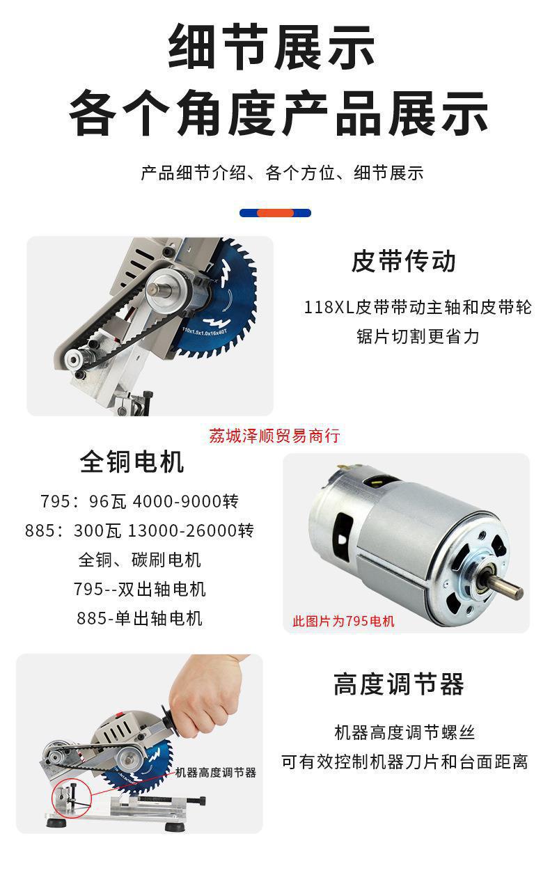 Режущий станок 795, голый станок (без источника питания и пильного полотна); Стандартная конфигурация режущего станка 795; Расширенная версия режущего станка 795; Станок для резки 795, роскошная версия; Режущий станок 885, голый металл (без источника питания и пильного полотна); Стандартная конфигурация режущего станка 885; Усовершенствованная версия режущего станка 885; Режущий станок 885, роскошная версия