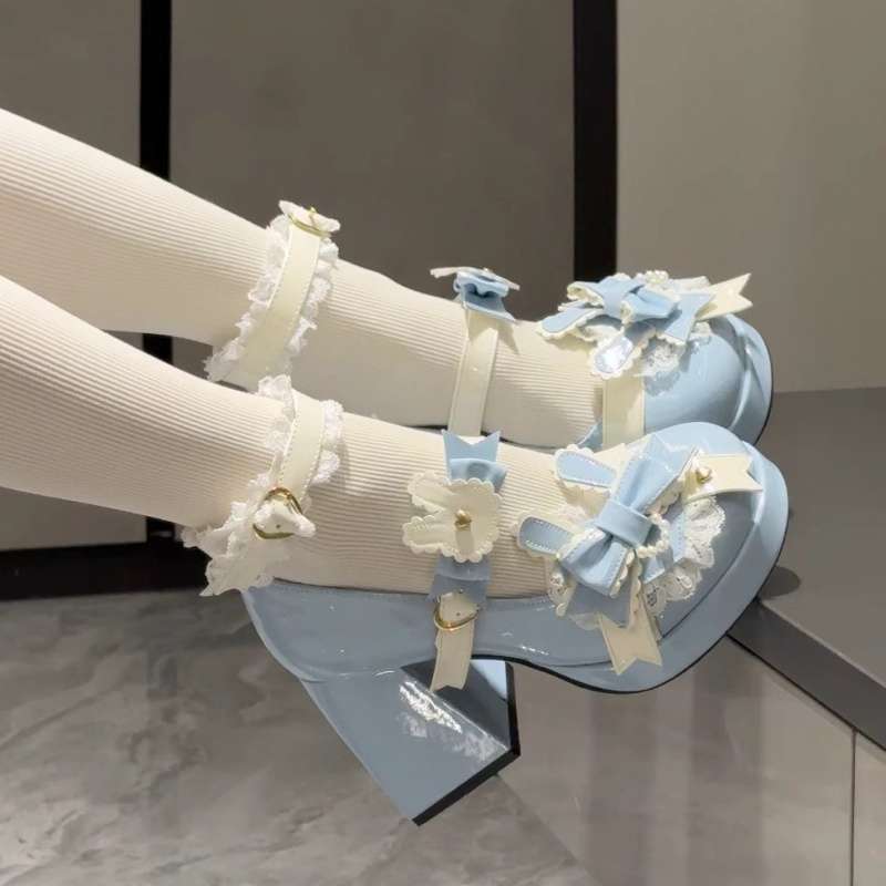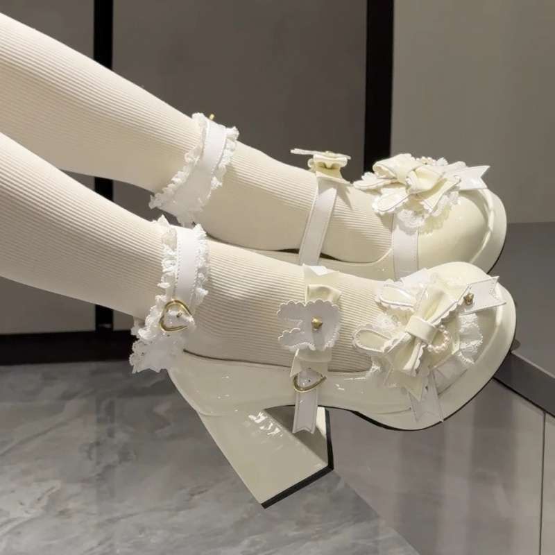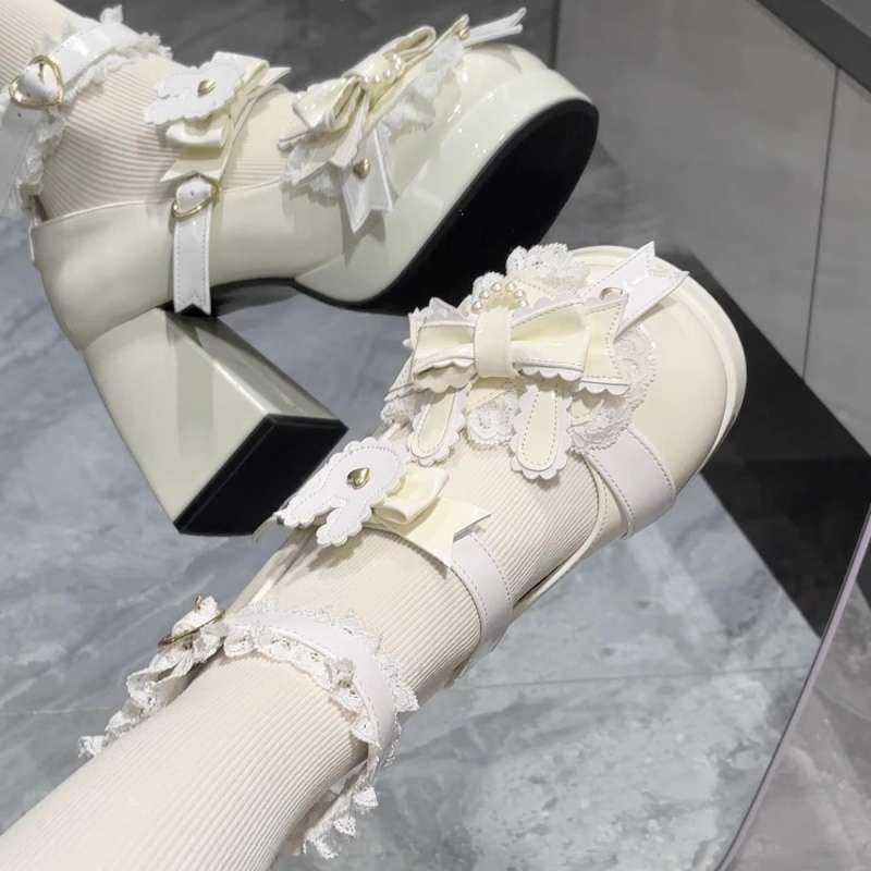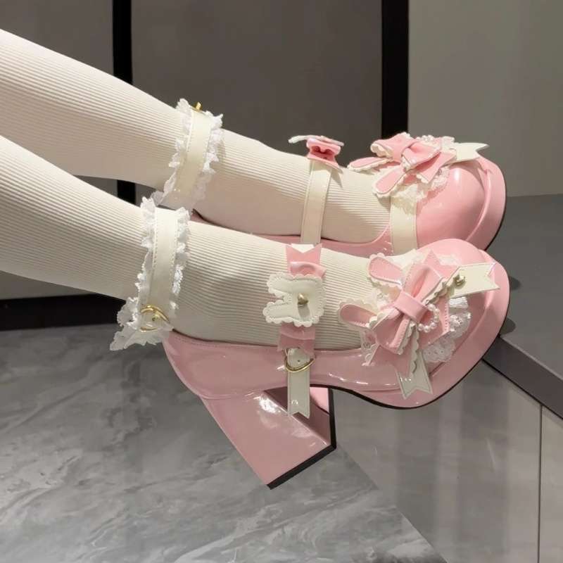 Милые кроличьи водонепроницаемые туфли на высоком каблуке в японском стиле, милые туфли Лолиты с круглым носком и милым бантом, Лолита распродана