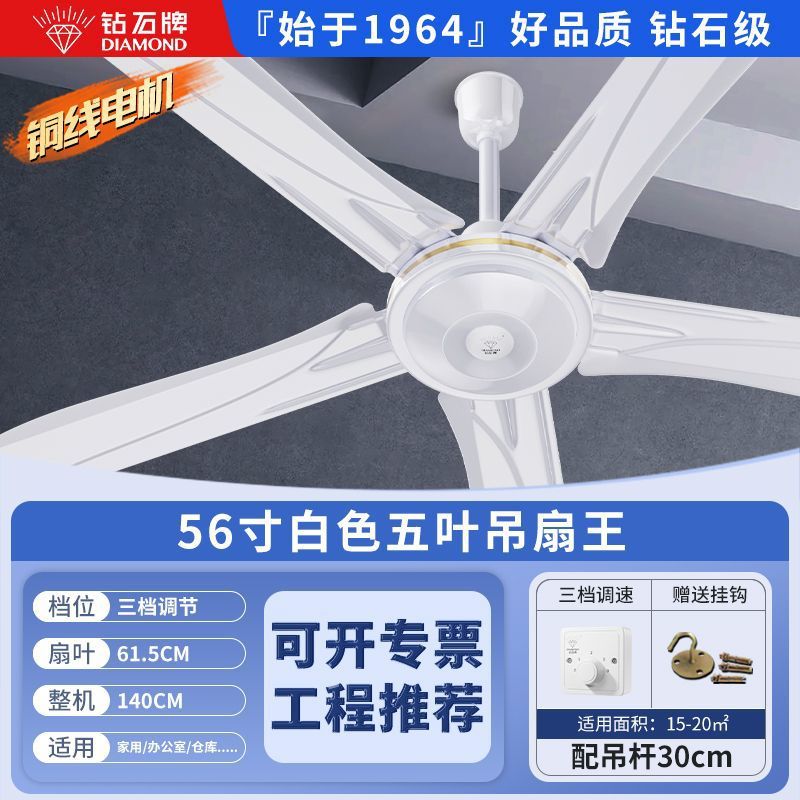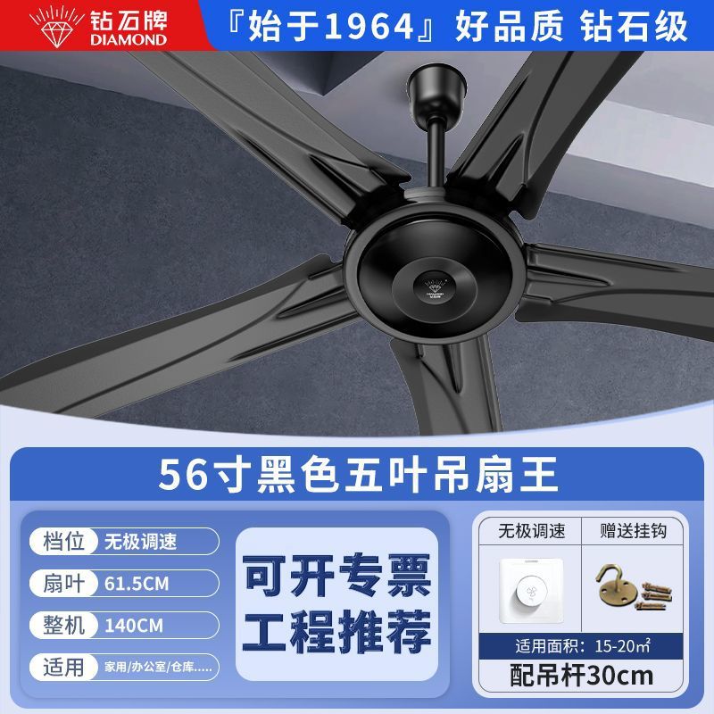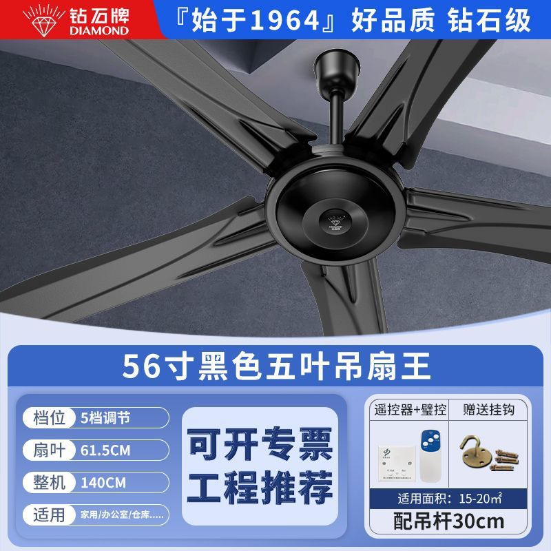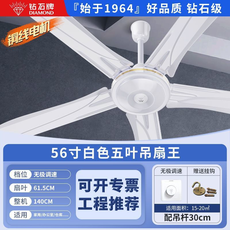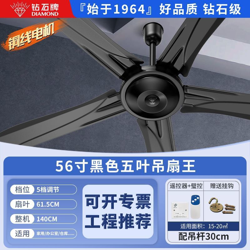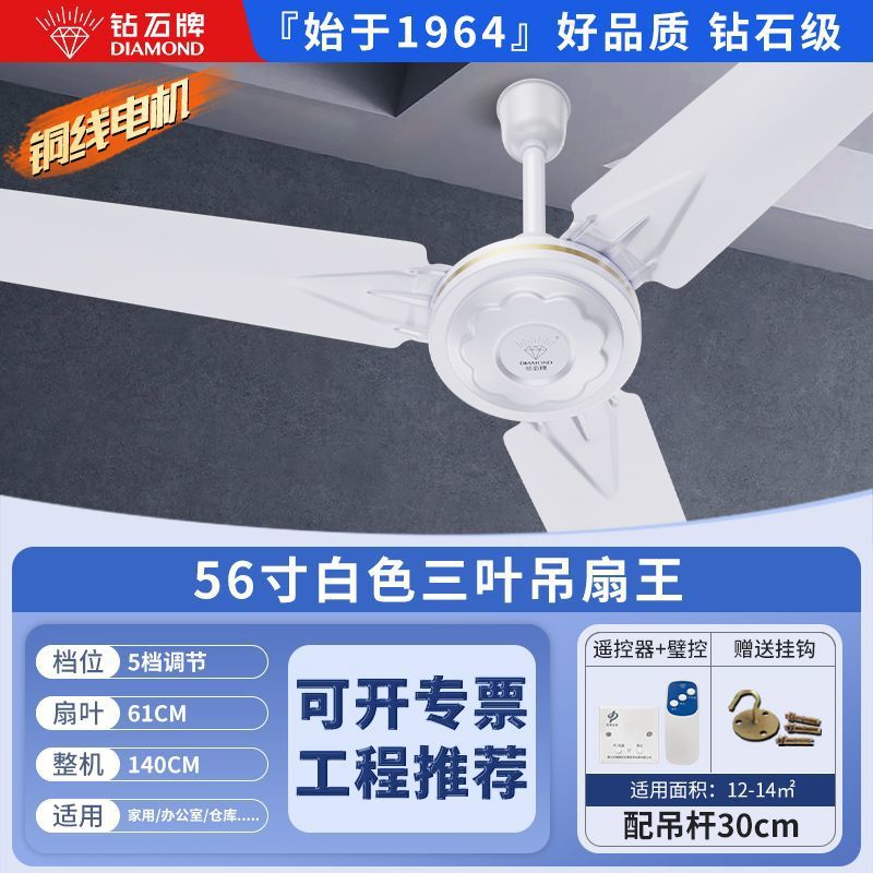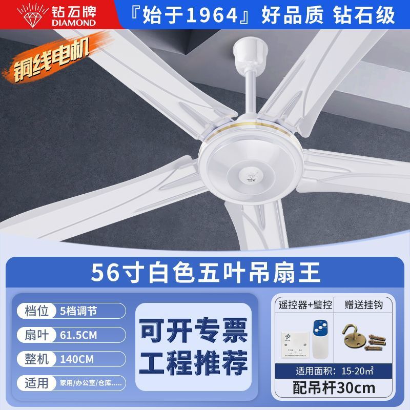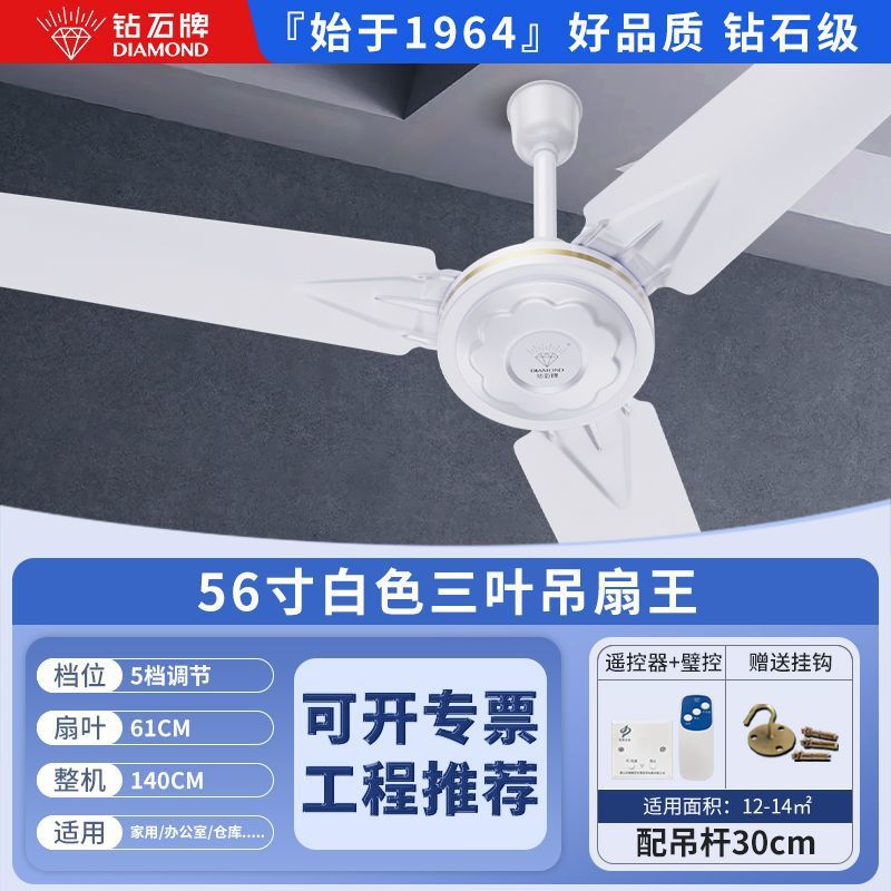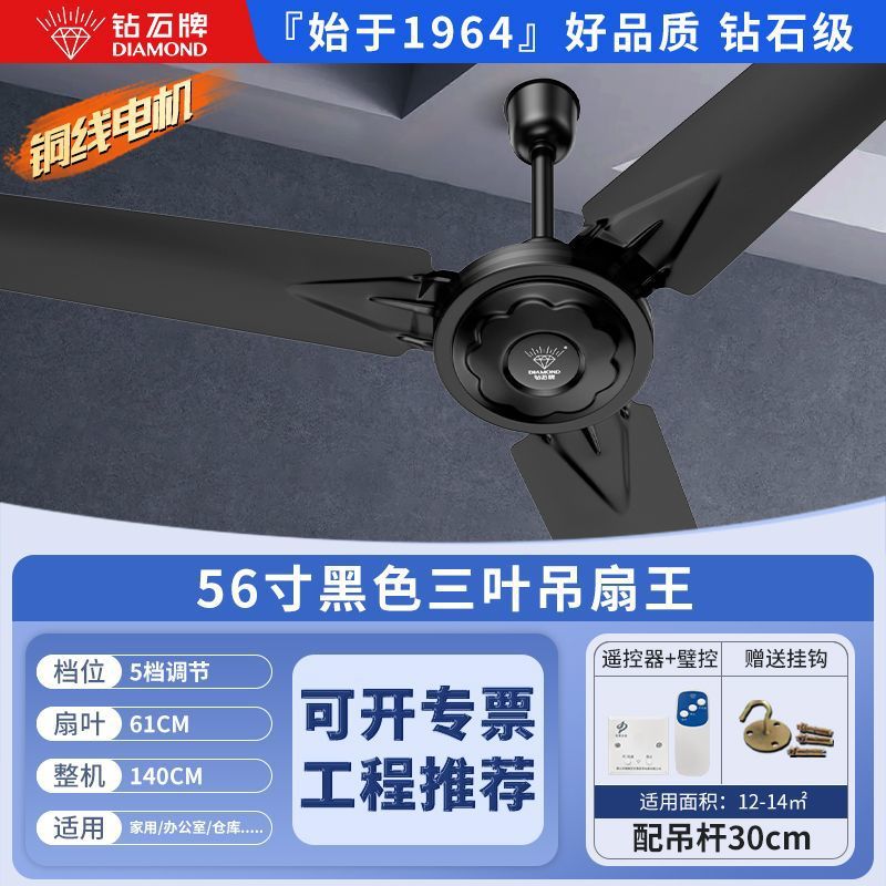 Потолочный вентилятор бренда Diamond с сильным ветром для домашней гостиной, железное лезвие для общежития, промышленный пульт дистанционного управления, потолочный электрический вентилятор для столовой 56inch г.