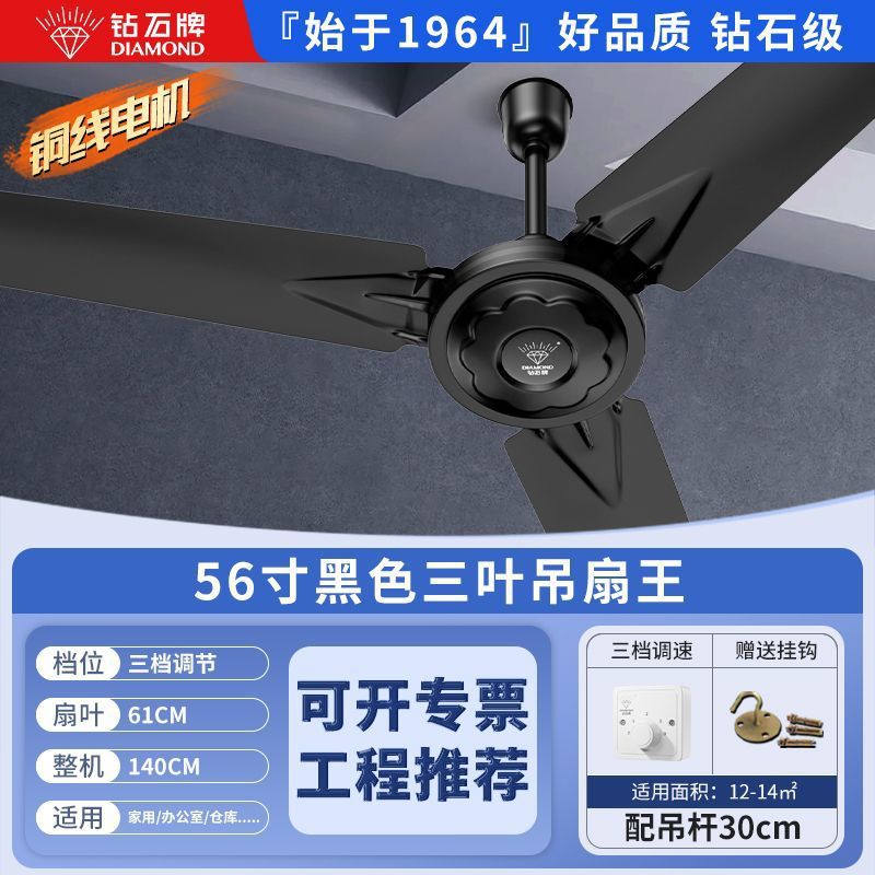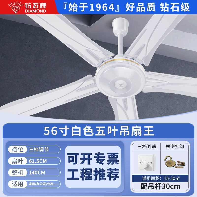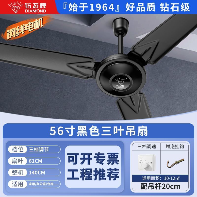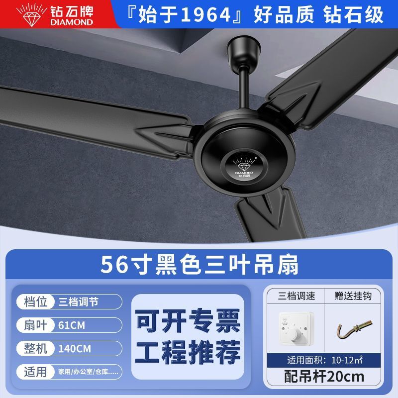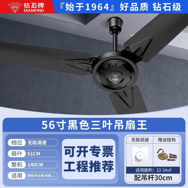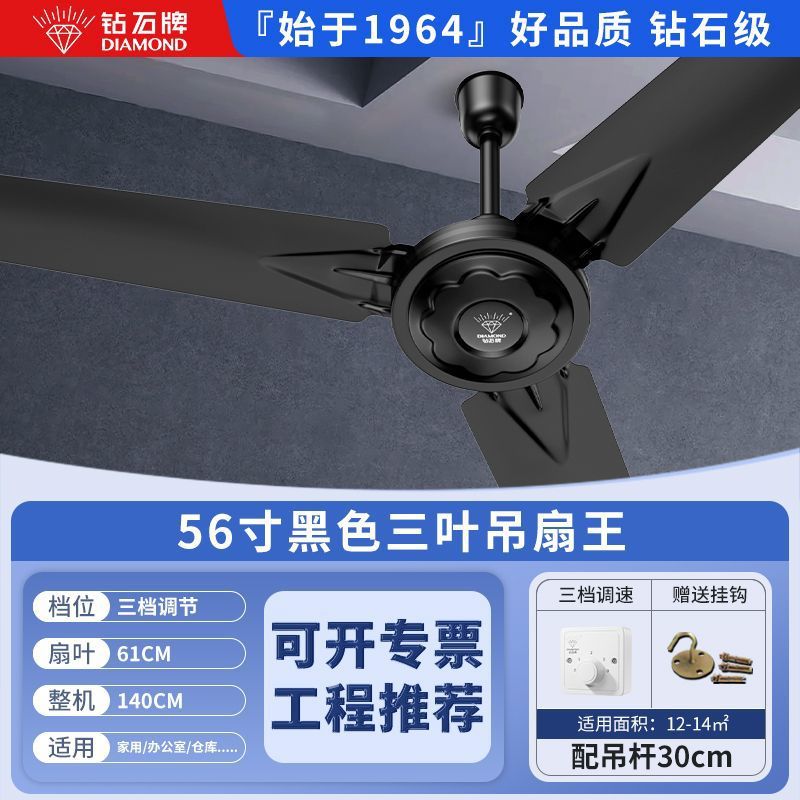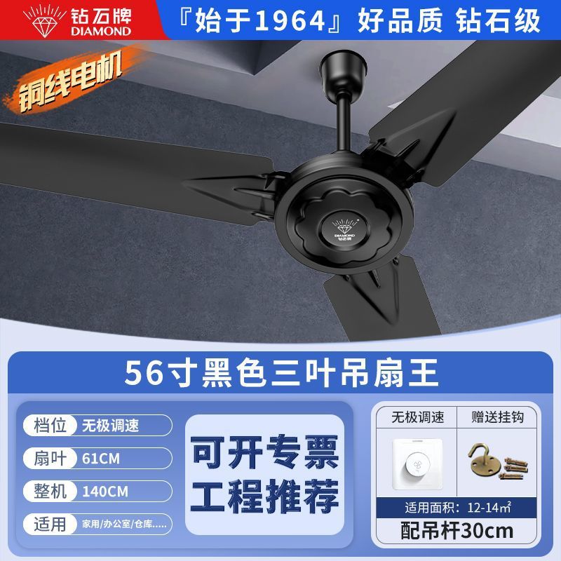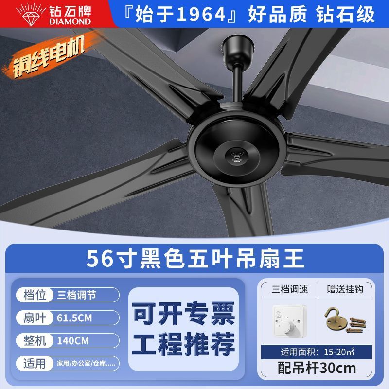 Потолочный вентилятор бренда Diamond с сильным ветром для домашней гостиной, железное лезвие для общежития, промышленный пульт дистанционного управления, потолочный электрический вентилятор для столовой 56inch г.