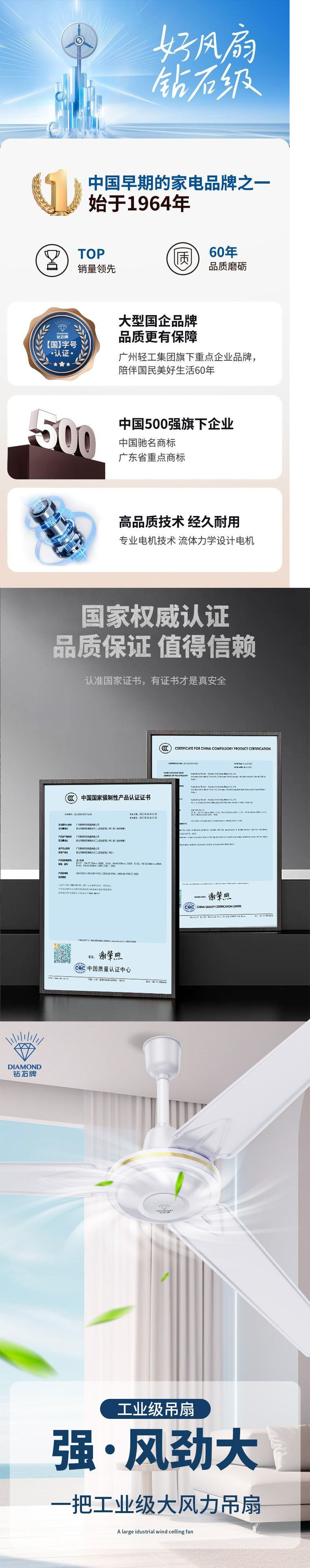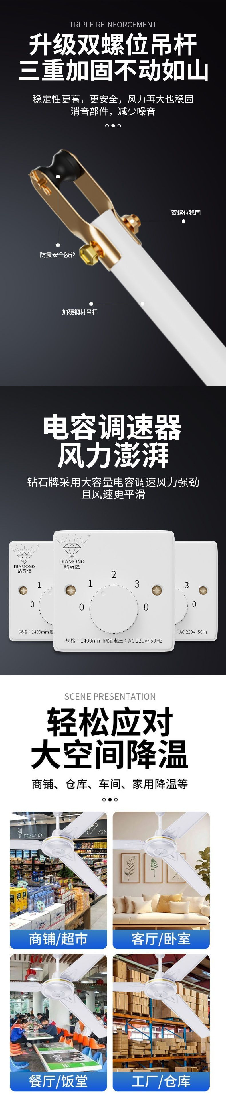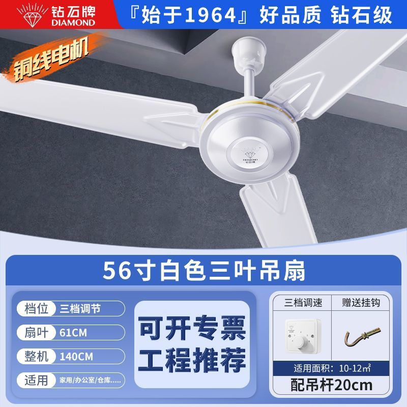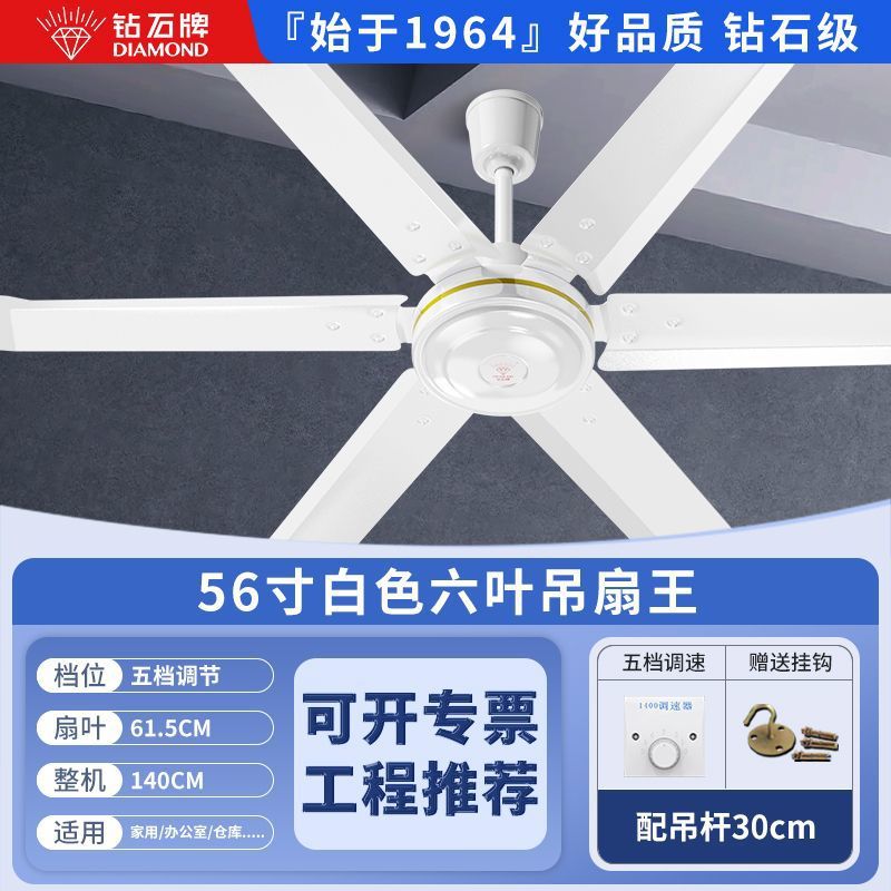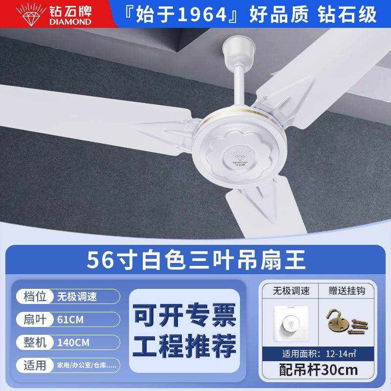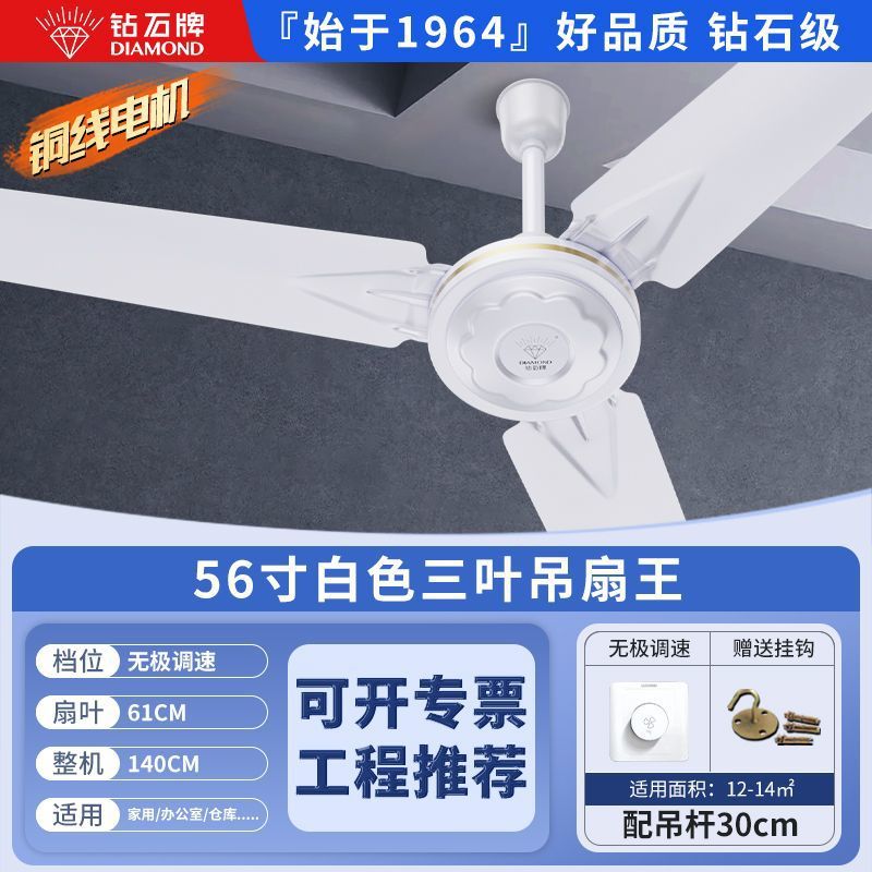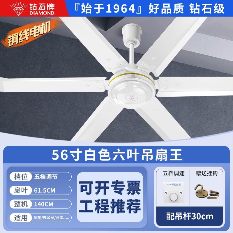 Потолочный вентилятор бренда Diamond с сильным ветром для домашней гостиной, железное лезвие для общежития, промышленный пульт дистанционного управления, потолочный электрический вентилятор для столовой 56inch г.