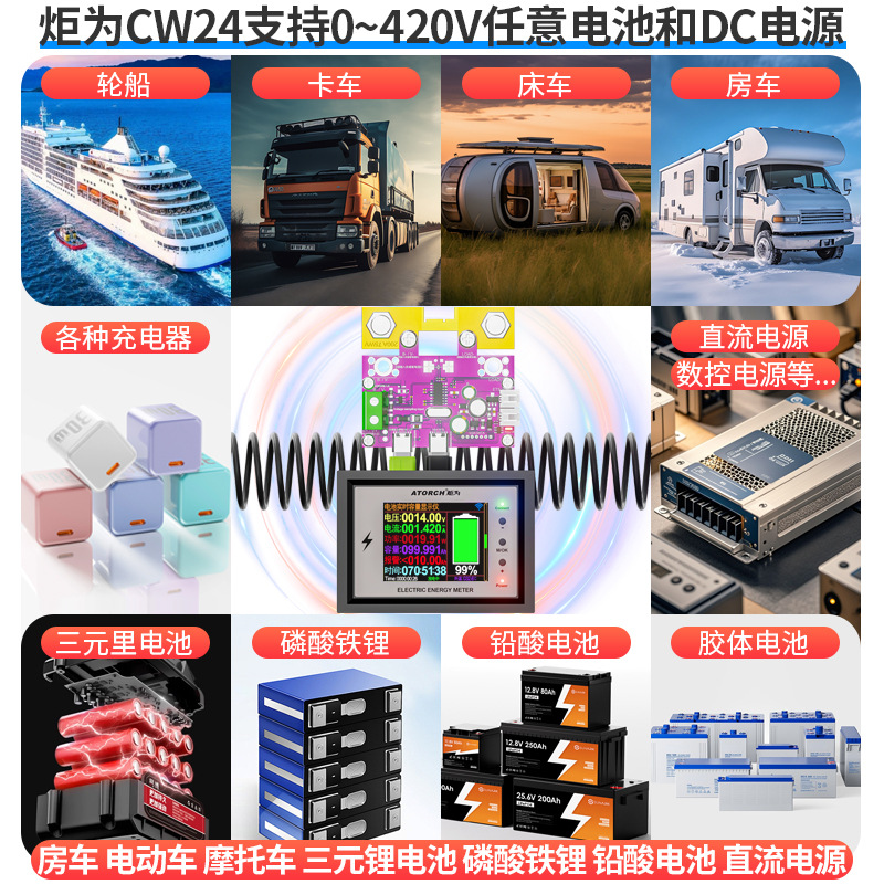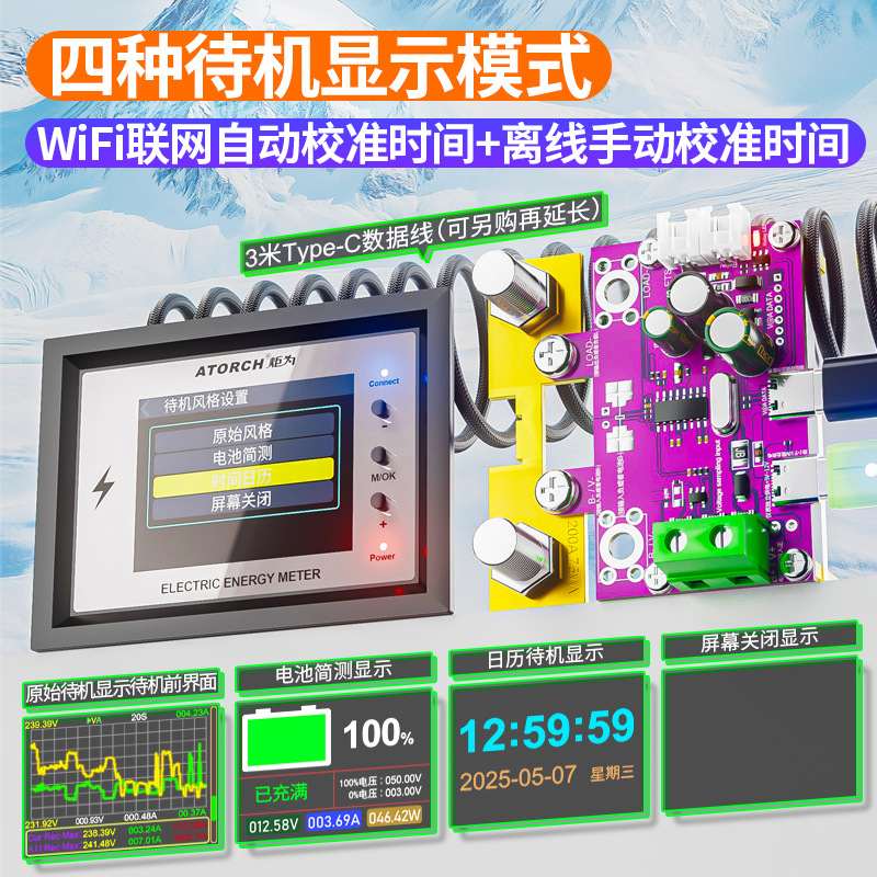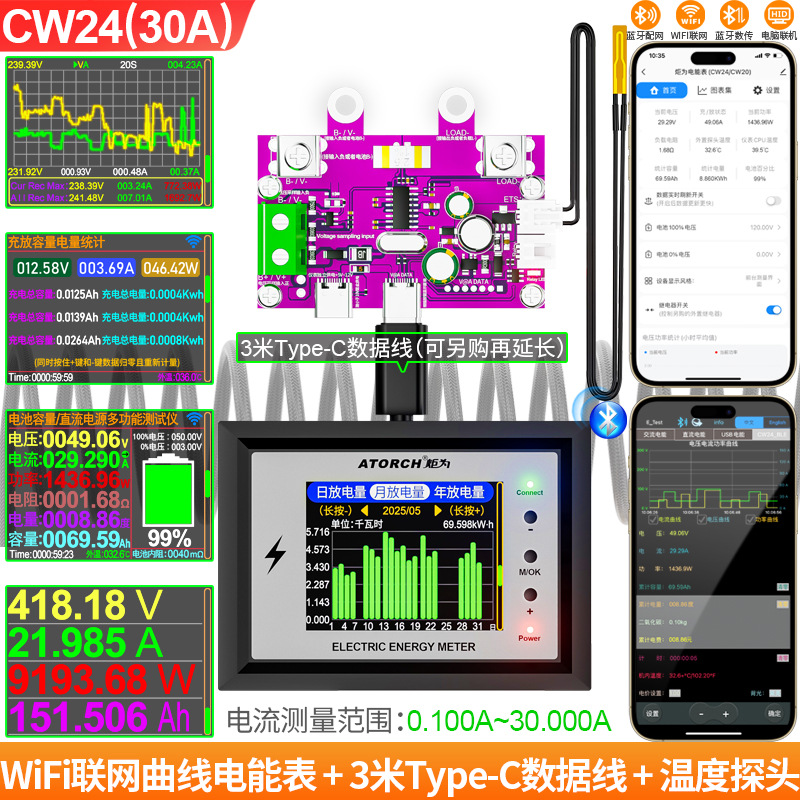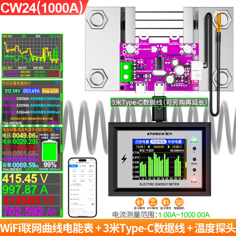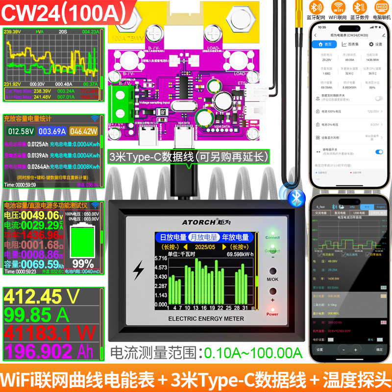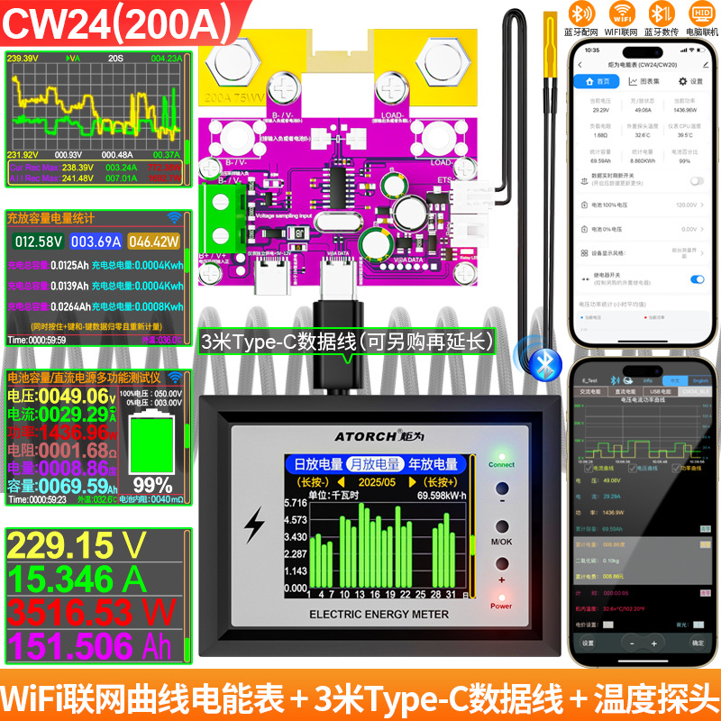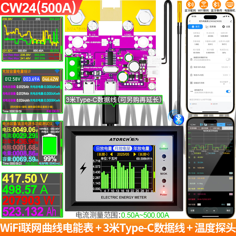 Измеритель заряда Wi-Fi Juwai, дисплей постоянного тока, индикатор напряжения аккумулятора для автофургонов, высокоточный двунаправленный детектор тока