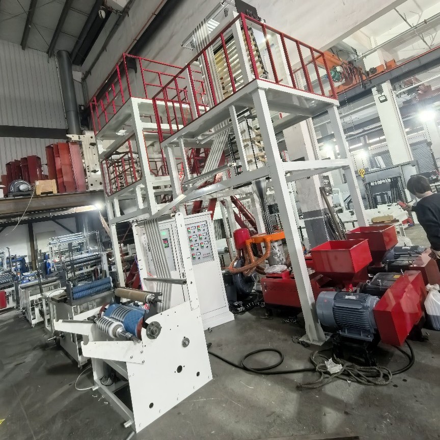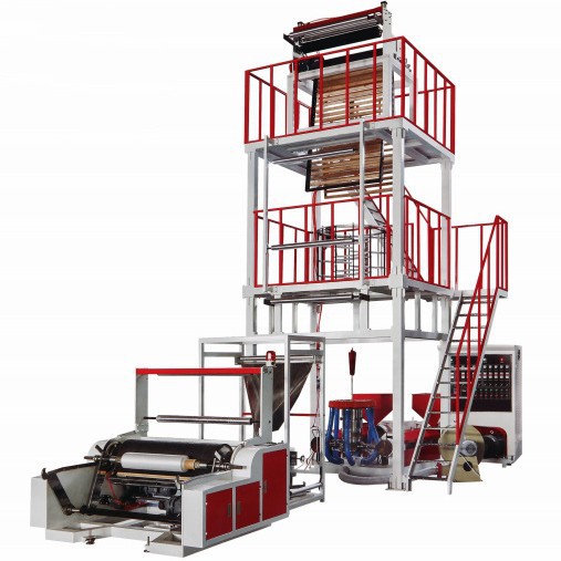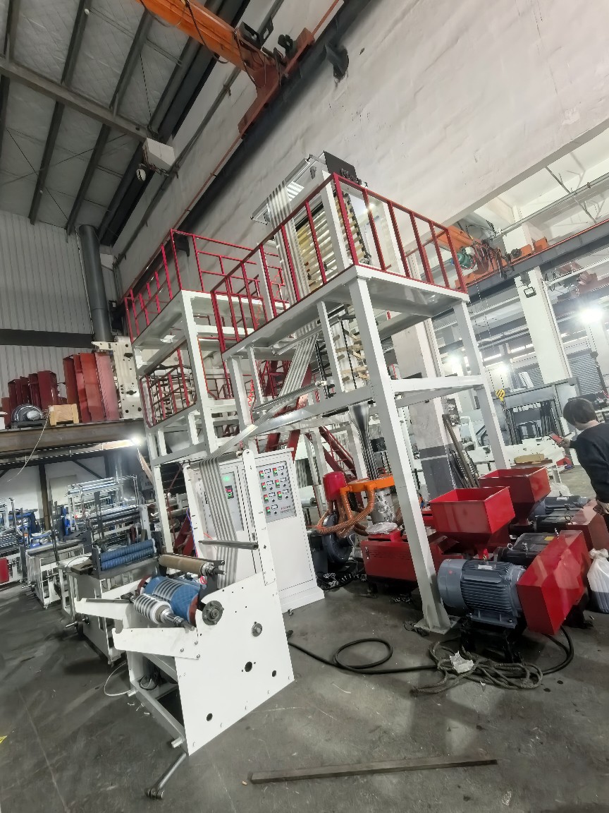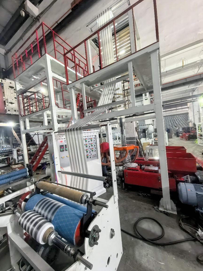 Машина для выдува пленки типа 900 с двумя шнеками для цветных полос обеспечивает формулу для выдува пленки для пакетов типа «жилет» и плоских пакетов, а также для выдува ПЭ-пленки.