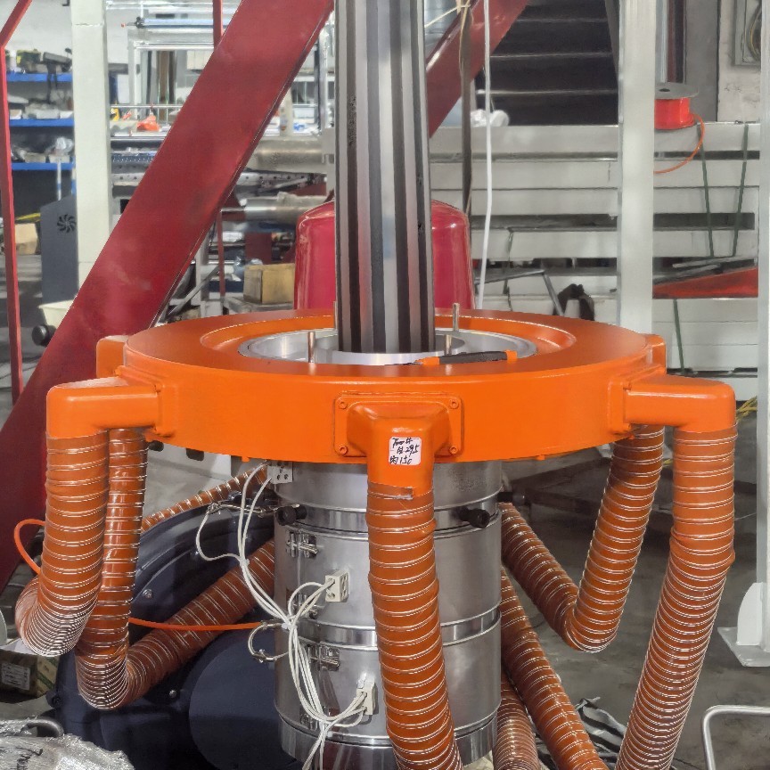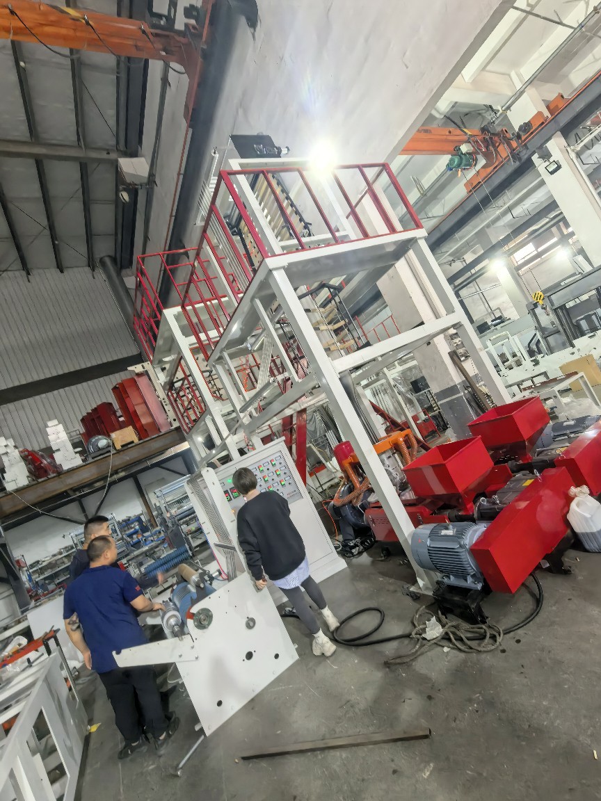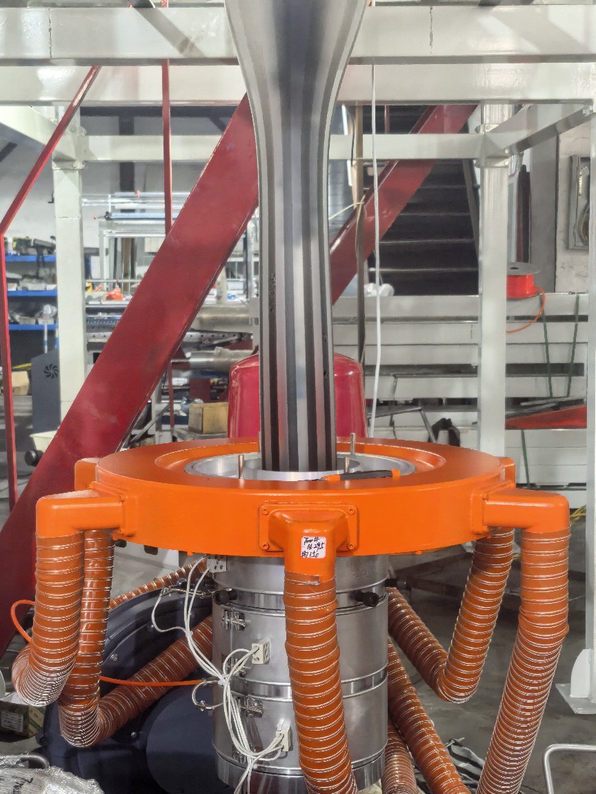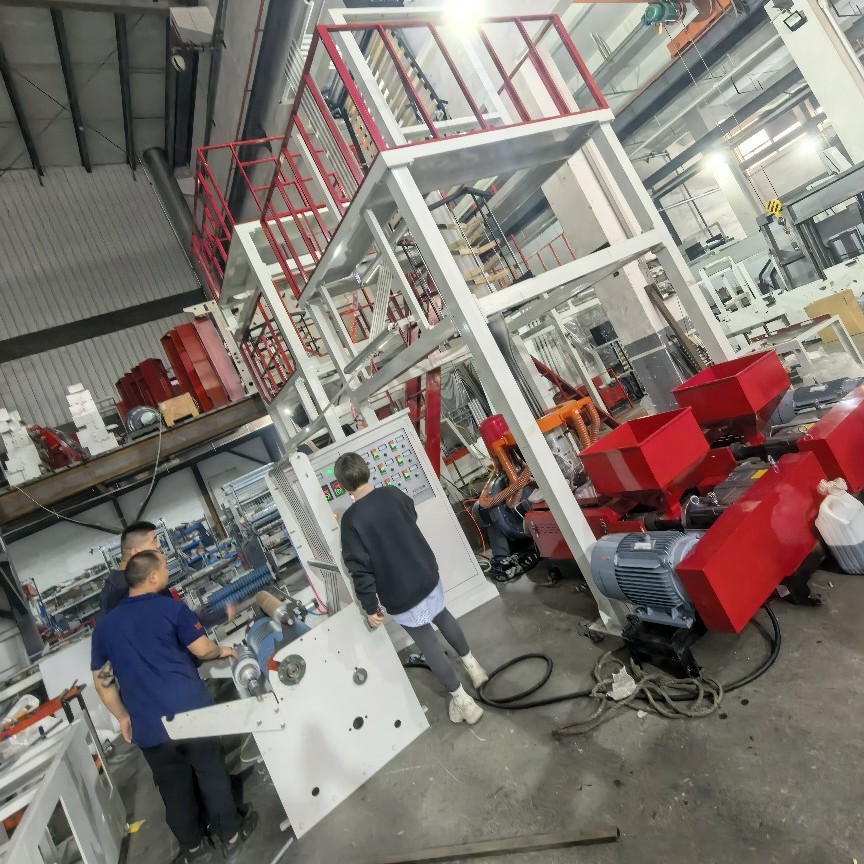 Машина для выдува пленки типа 900 с двумя шнеками для цветных полос обеспечивает формулу для выдува пленки для пакетов типа «жилет» и плоских пакетов, а также для выдува ПЭ-пленки.