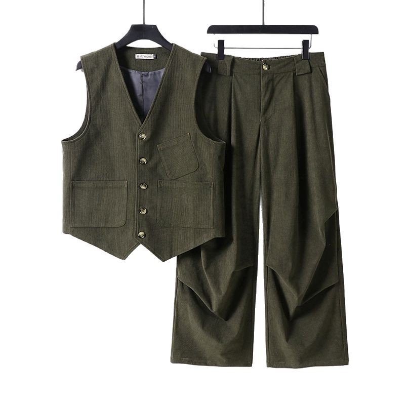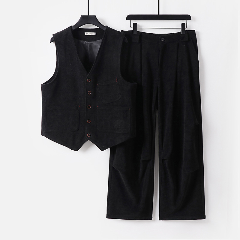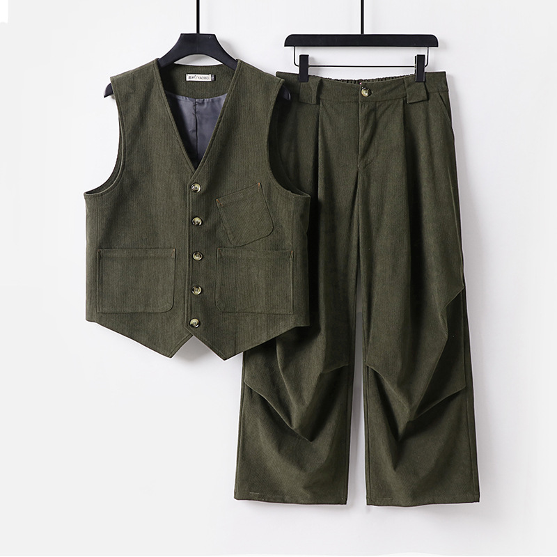 Американский рабочий костюм из вельвета: жилет и брюки, мужской, осень-зима, ретро, свободный крой, универсальный, больших размеров, комплект из двух предметов