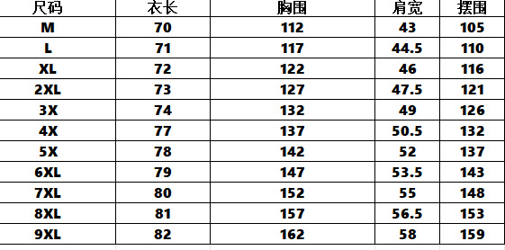 M; L; XL; 2XL; 3XL; 4XL; 5XL; 6XL; 7XL; 8XL; 9XL
