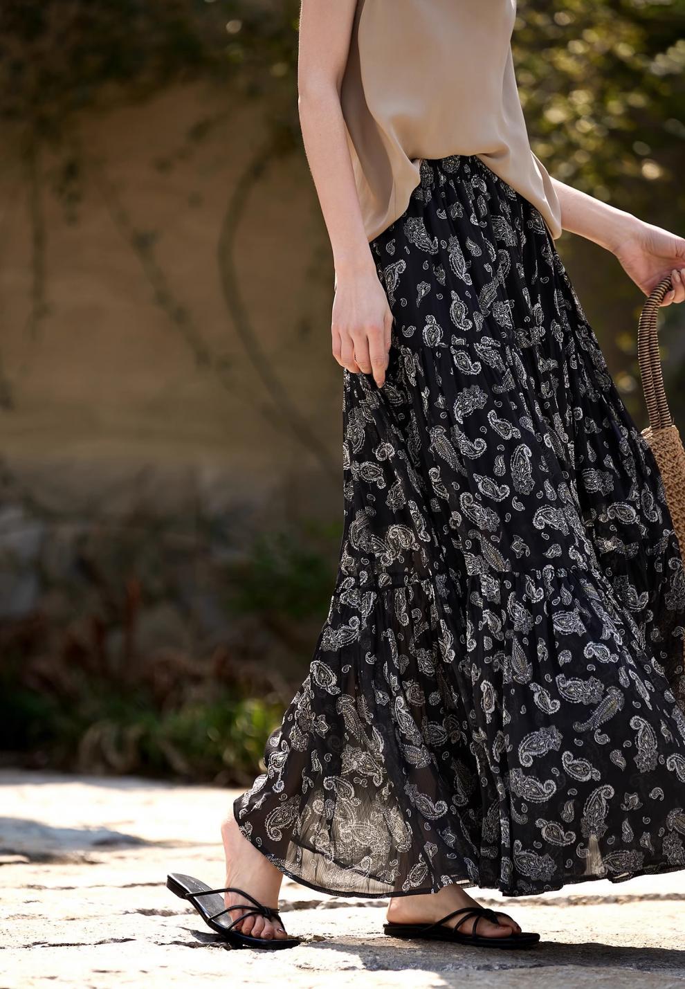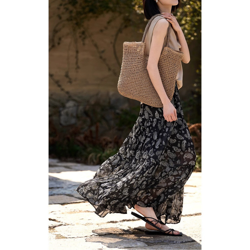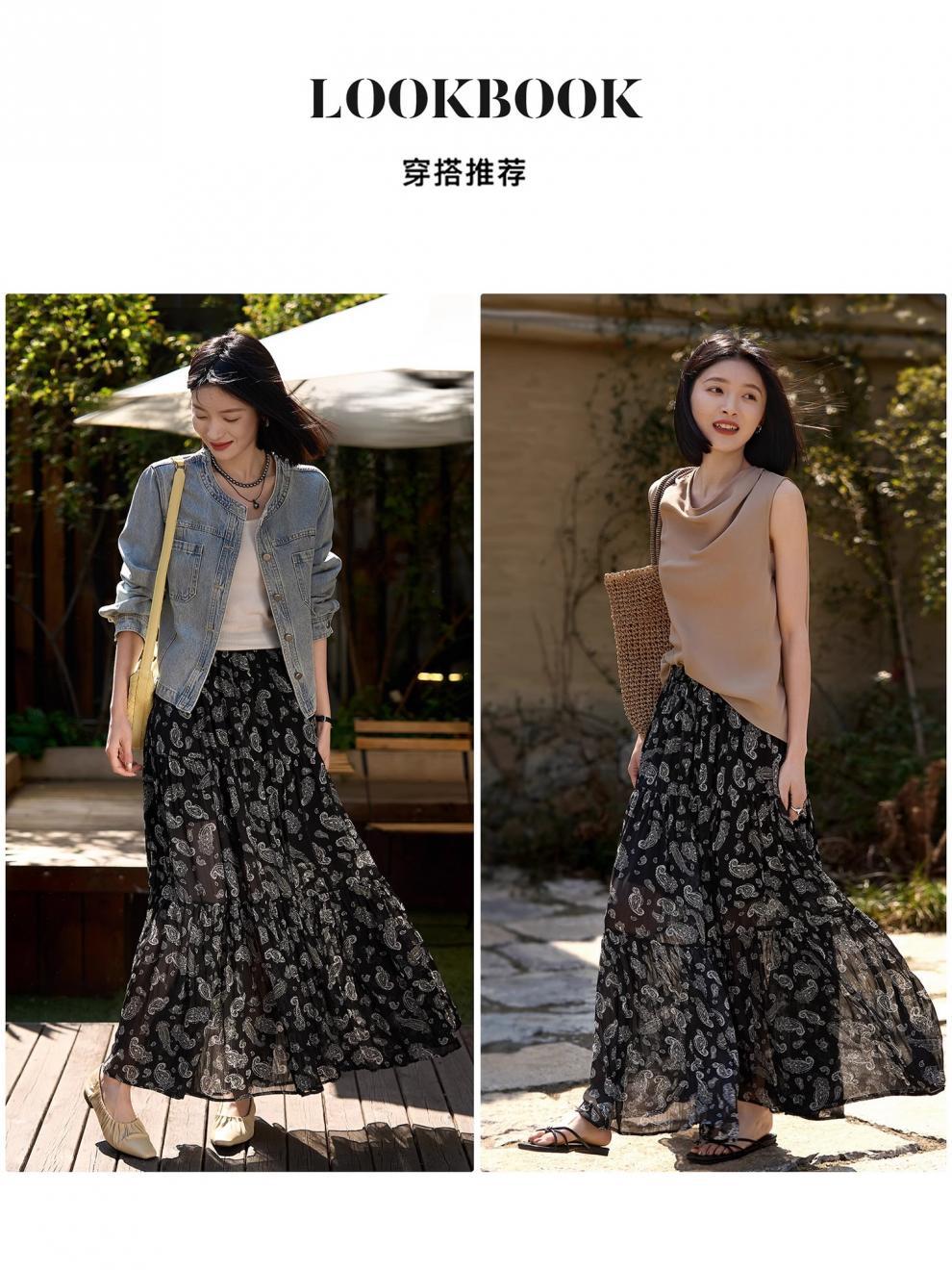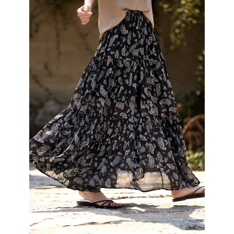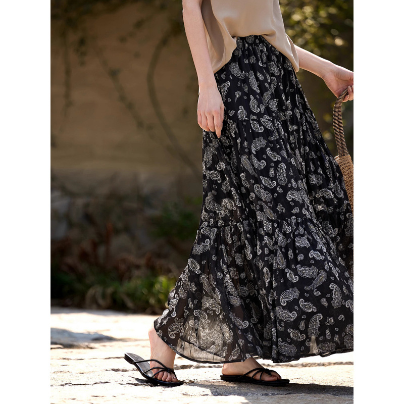 Юбка с принтом Whisper of the Seine в праздничном стиле, длинная юбка с цветочным принтом во французском стиле ретро, юбка трапециевидной формы, весенний новый стиль
