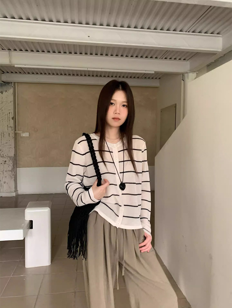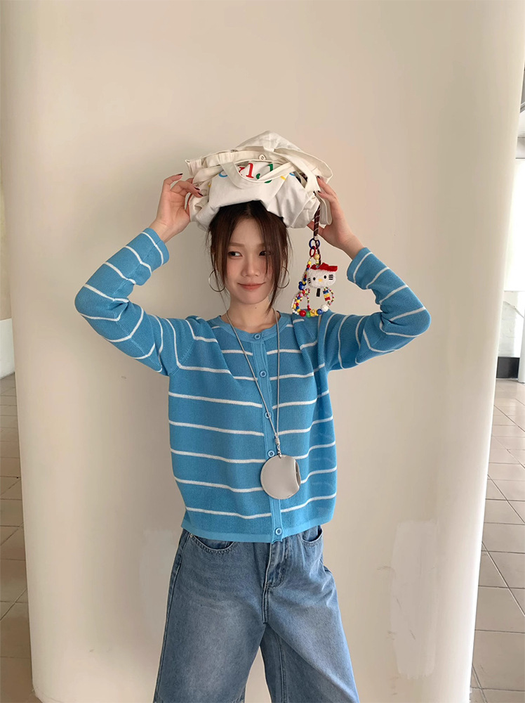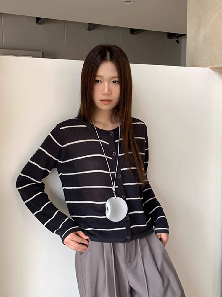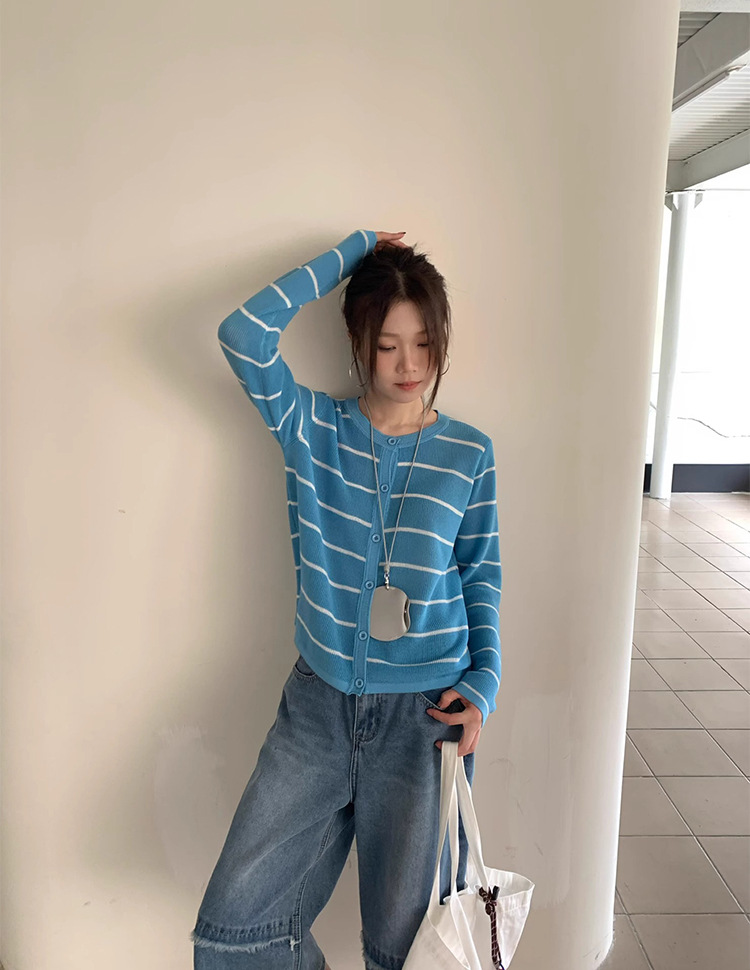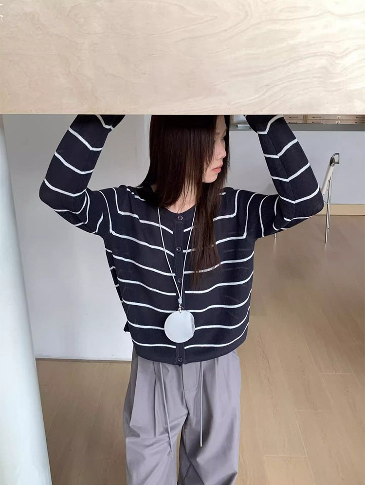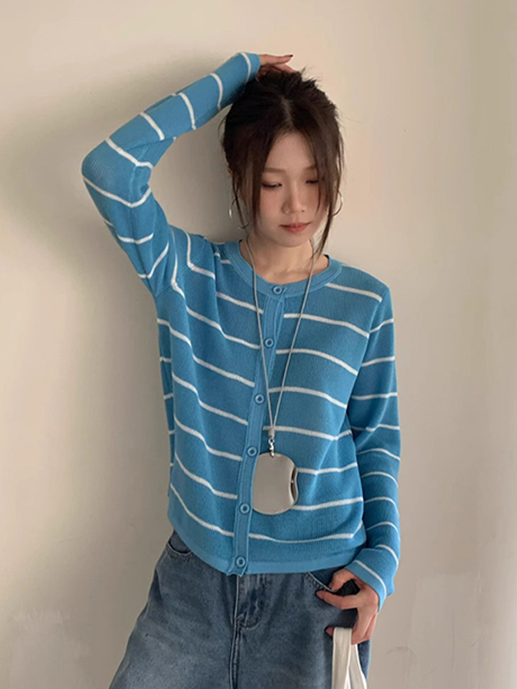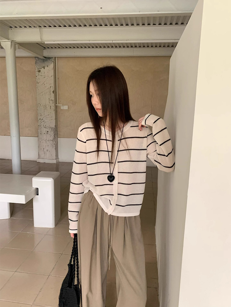 Летняя тонкая и супер приятная свободная верхняя одежда, солнцезащитный топ, слегка прозрачный полосатый вязаный кардиган в корейском стиле с длинными рукавами для женщин