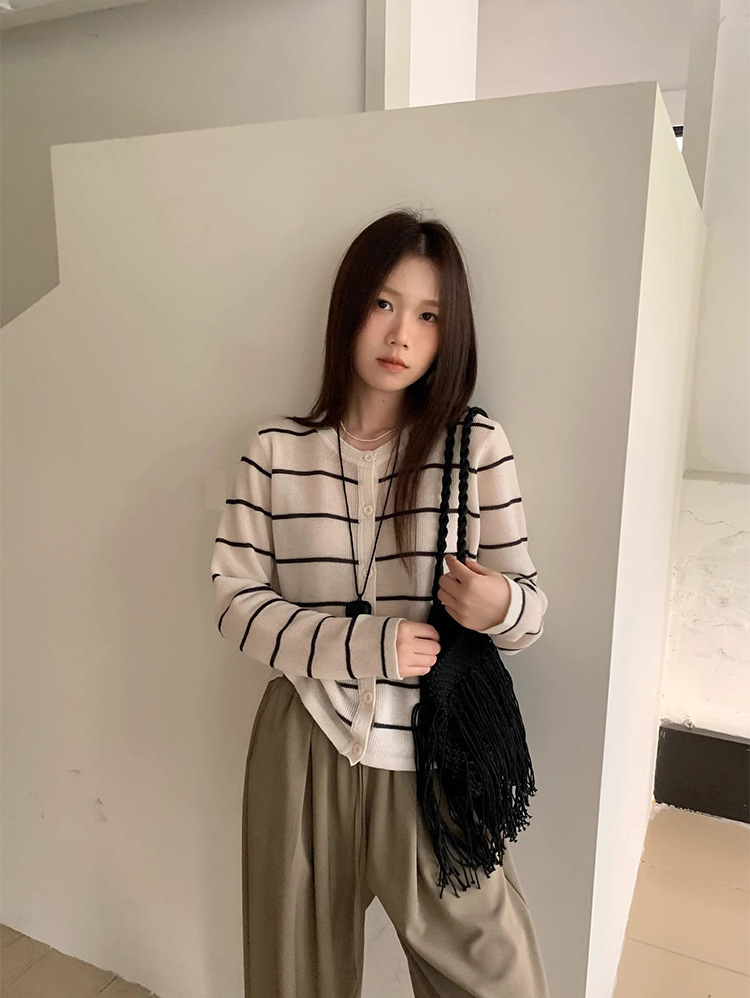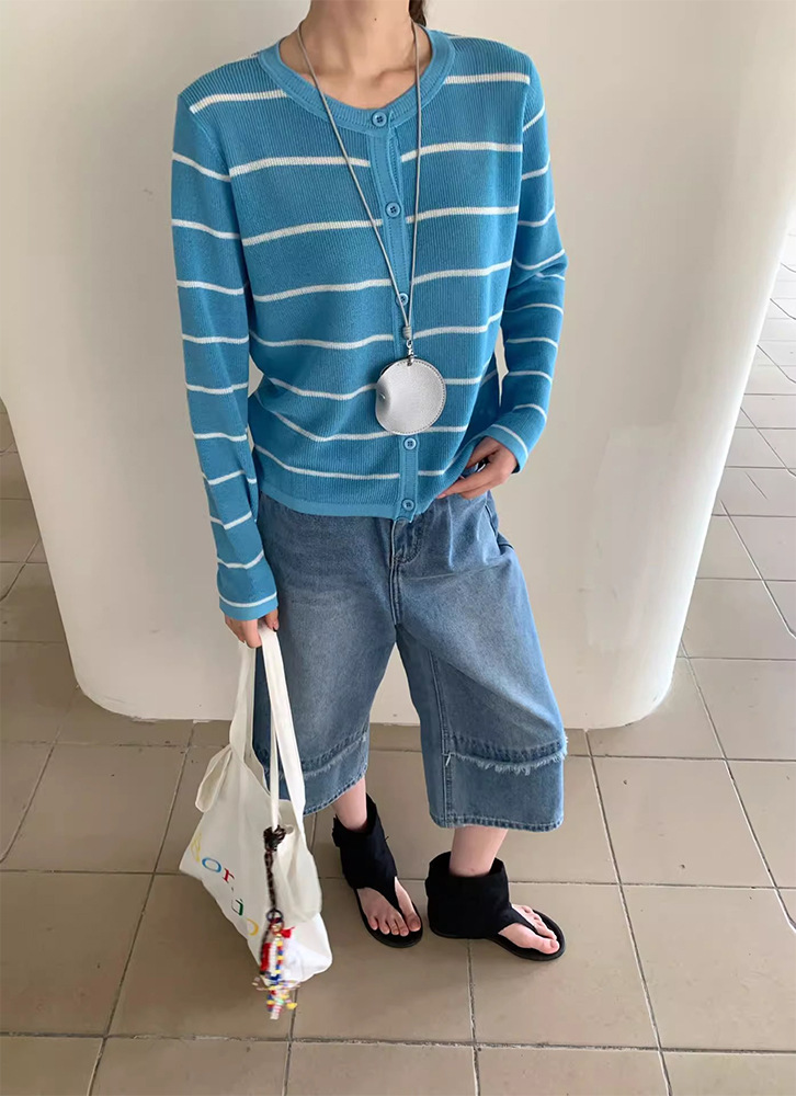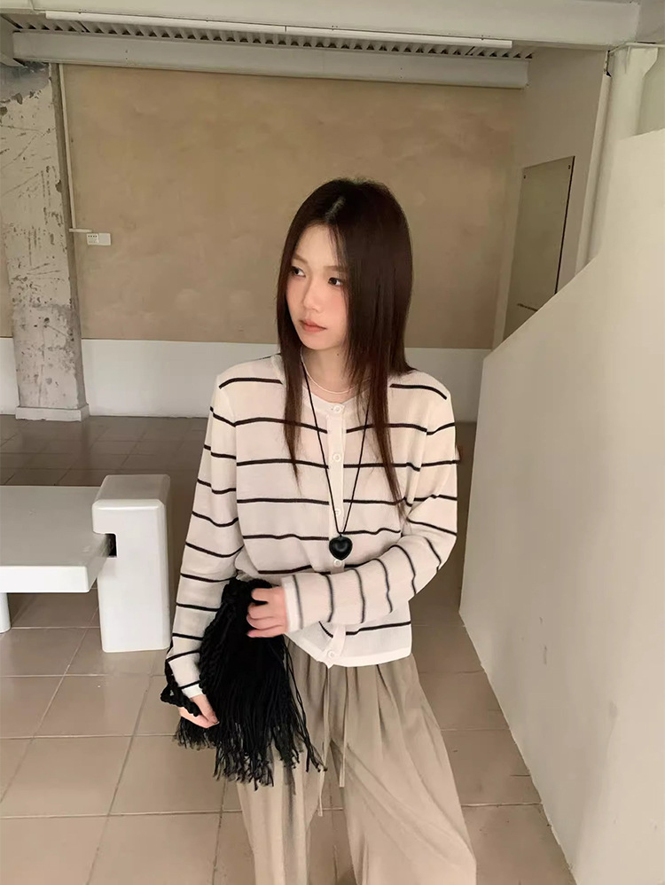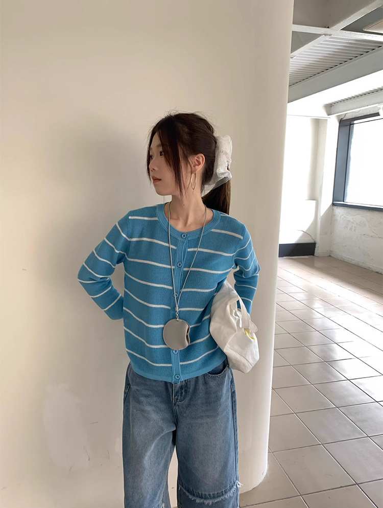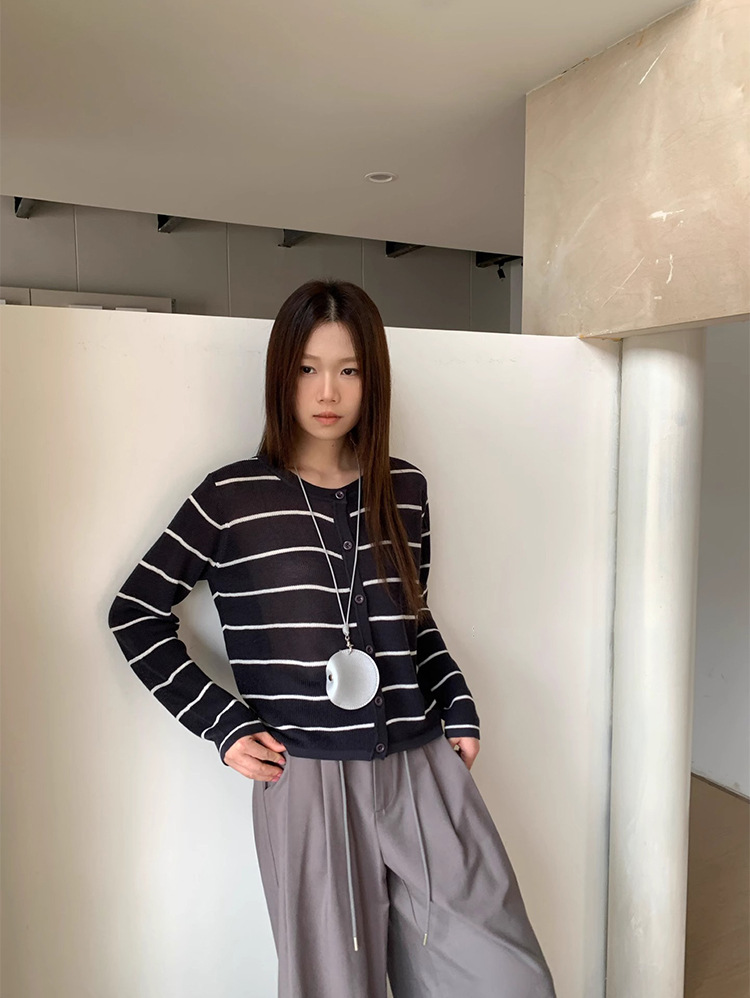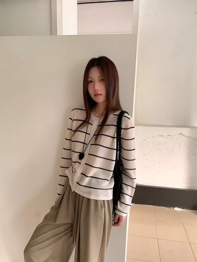Летняя тонкая и супер приятная свободная верхняя одежда, солнцезащитный топ, слегка прозрачный полосатый вязаный кардиган в корейском стиле с длинными рукавами для женщин