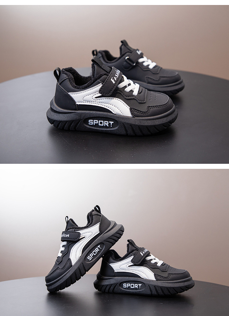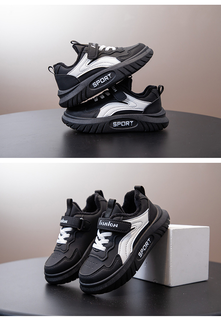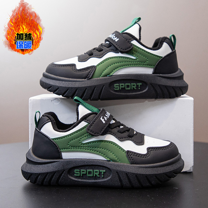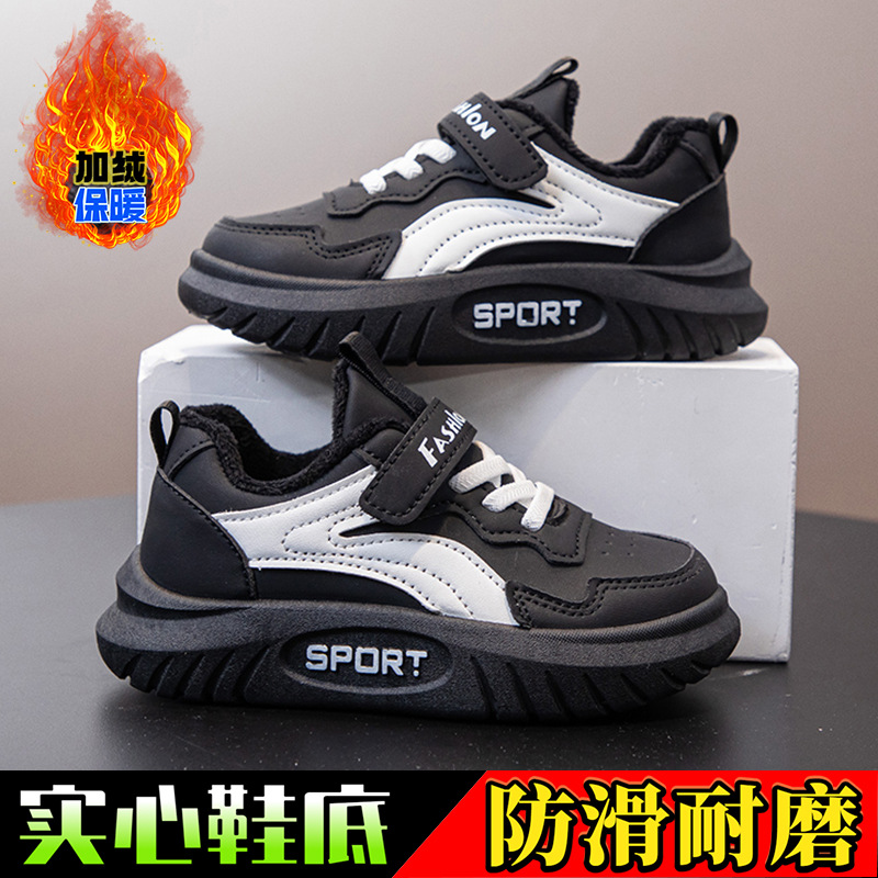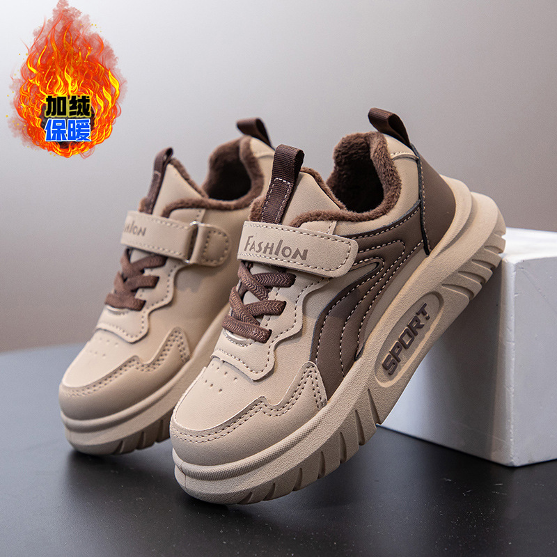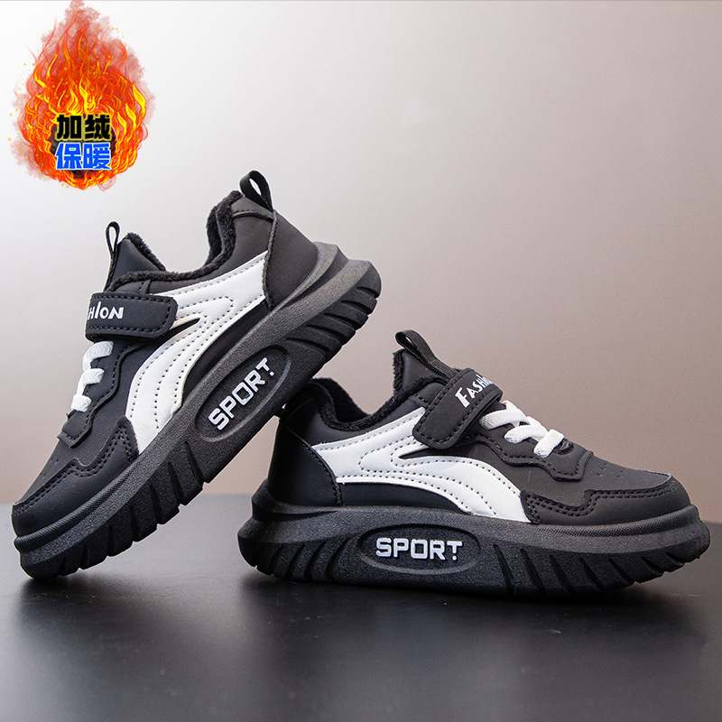 Детские кроссовки на флисовой подкладке, повседневная обувь для мальчиков, зима 2025, новая утолщенная детская обувь из двух хлопка, универсальные теплые кроссовки