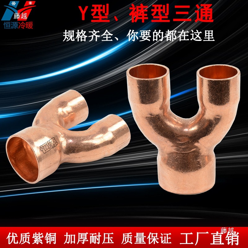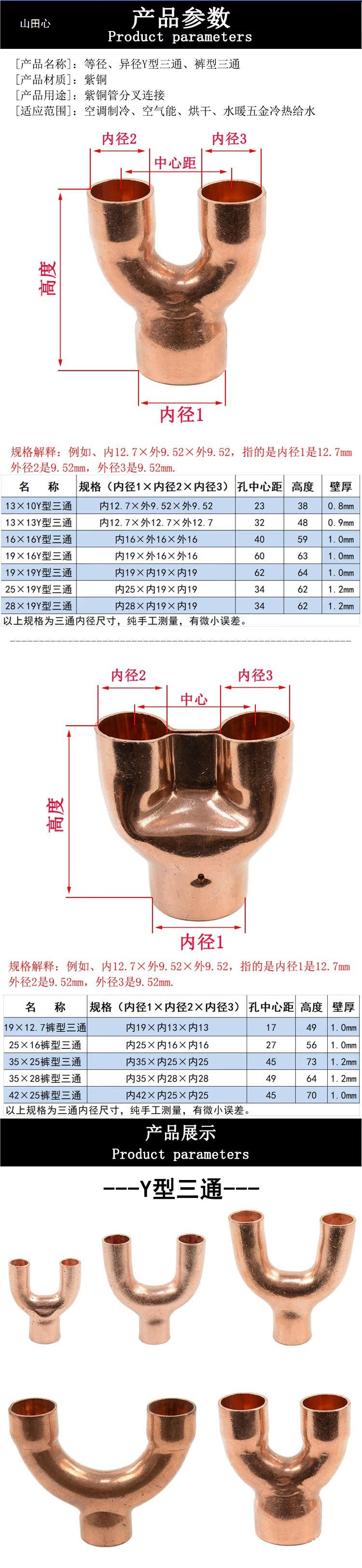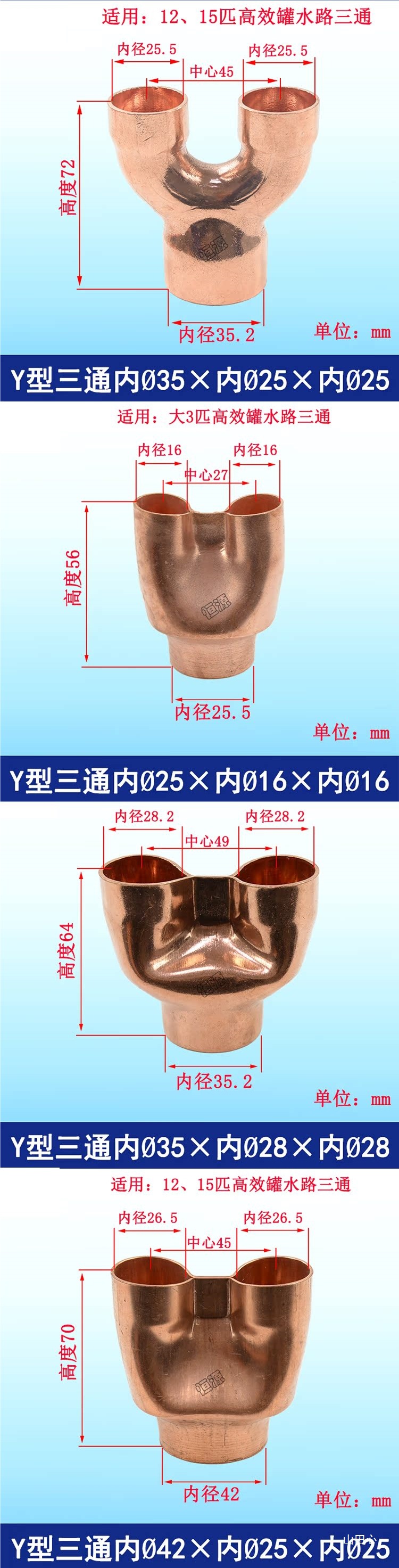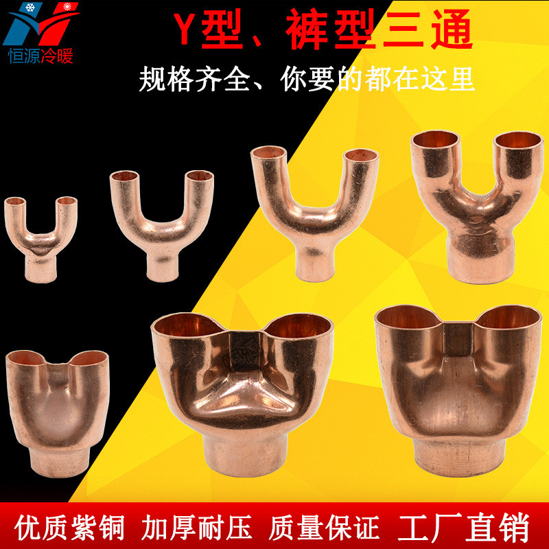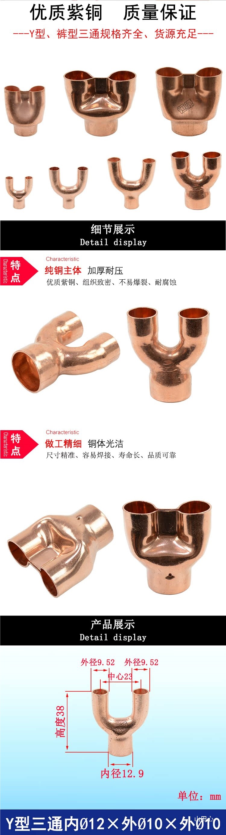 Медные трехходовые соединения Y-типа, характеристики 10-42, холодильное оборудование для холодного хранения, кондиционер, аксессуары для тепловых насосов, сварные трехходовые соединения брючного типа