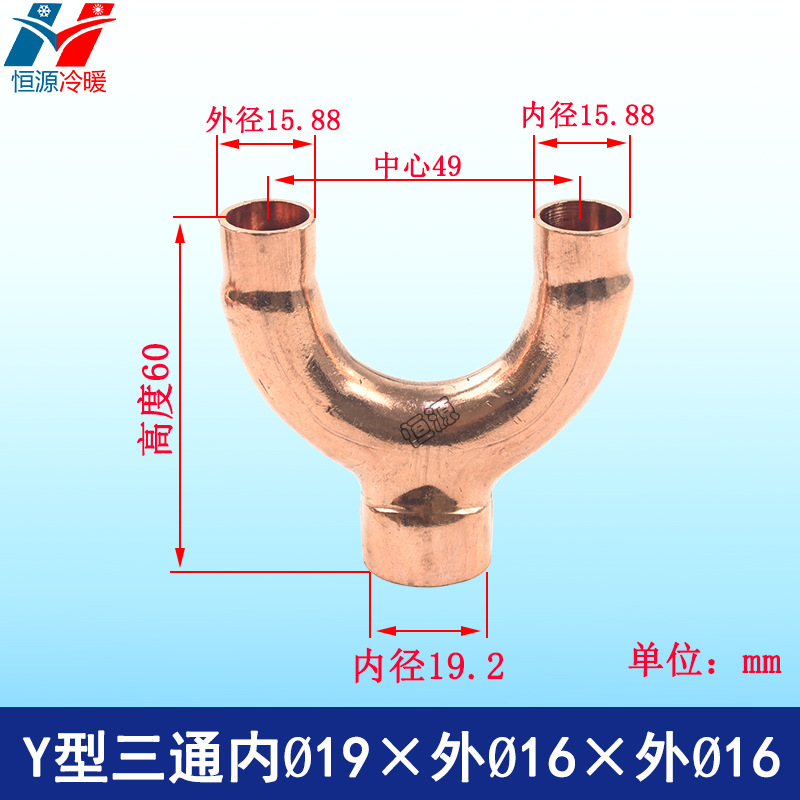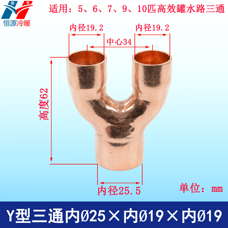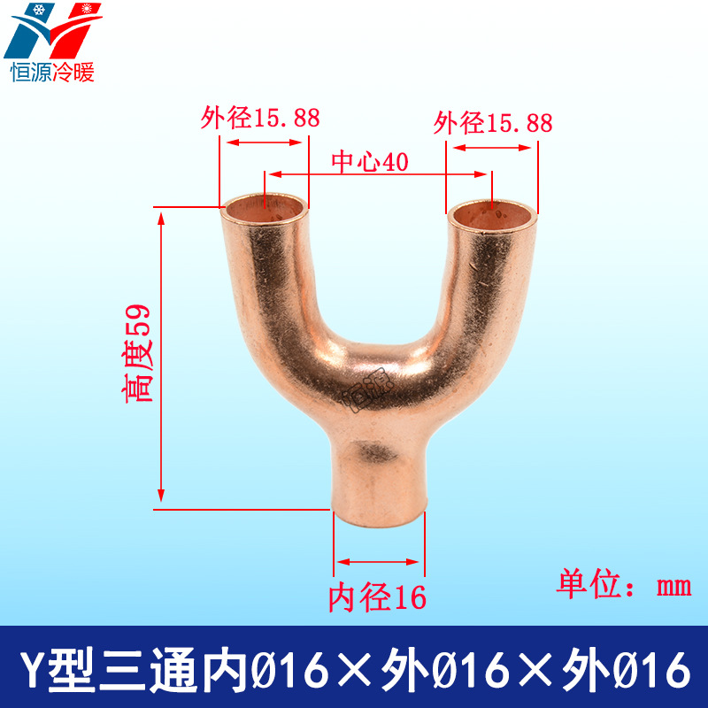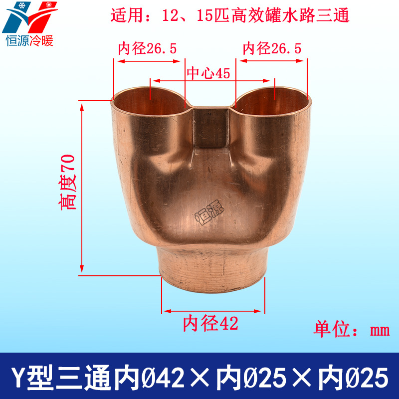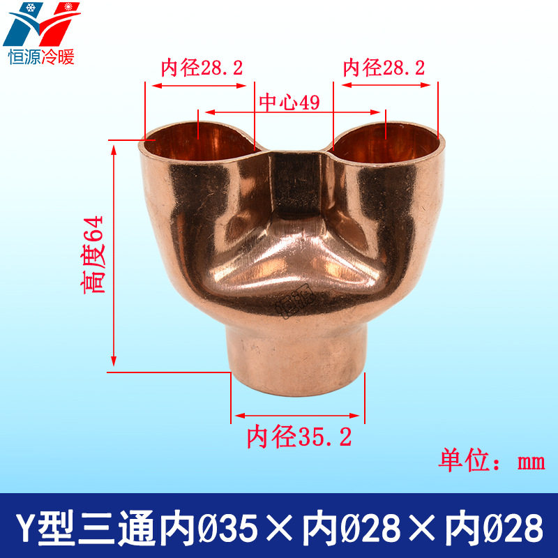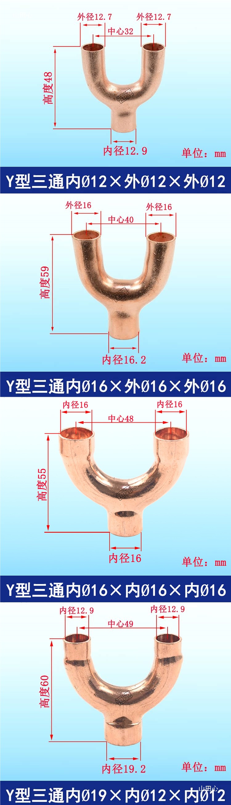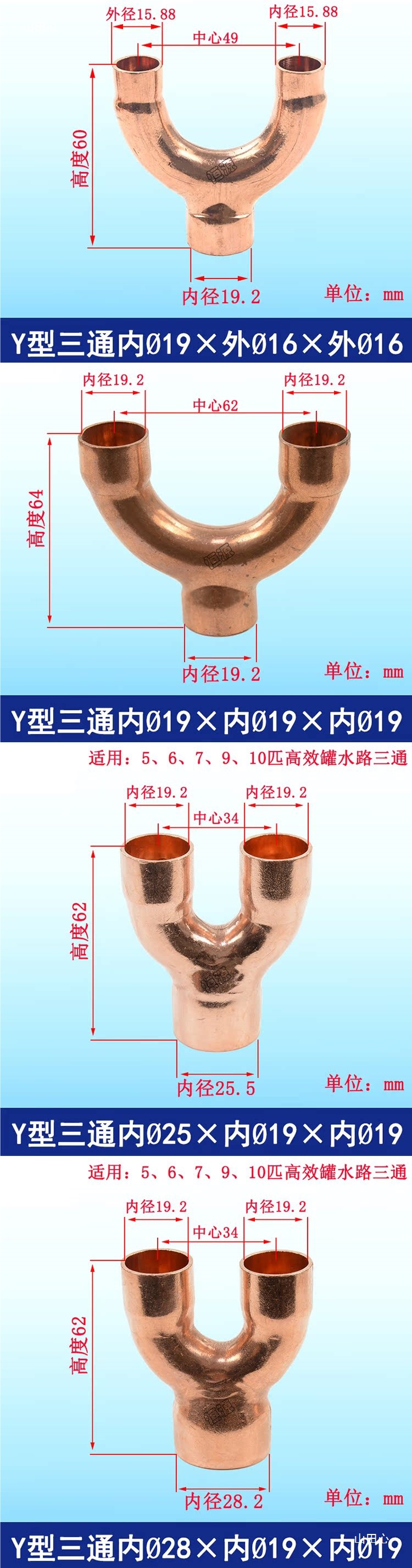 Медные трехходовые соединения Y-типа, характеристики 10-42, холодильное оборудование для холодного хранения, кондиционер, аксессуары для тепловых насосов, сварные трехходовые соединения брючного типа