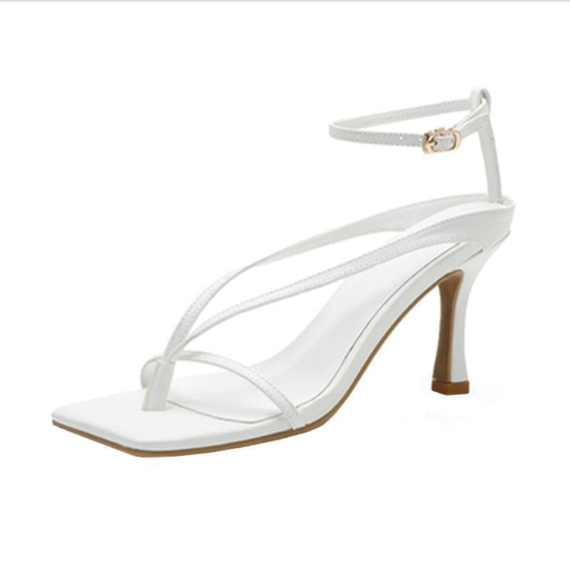 Новые летние белые босоножки на шпильке с квадратным открытым носком и ремешками, 2025 года.